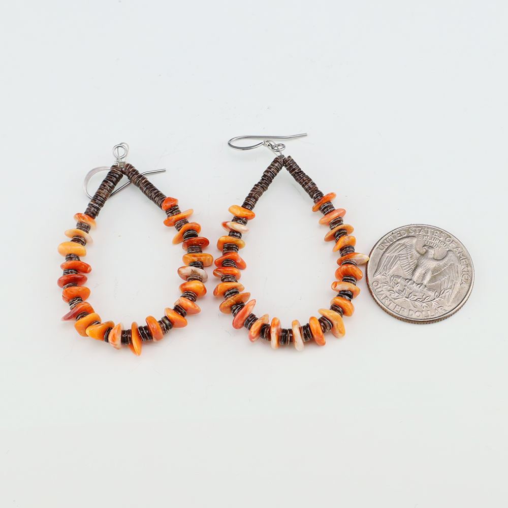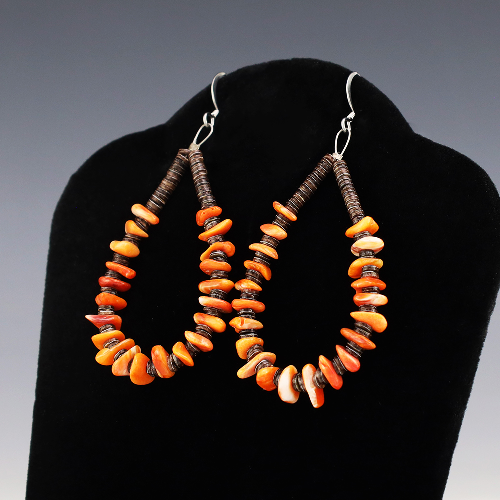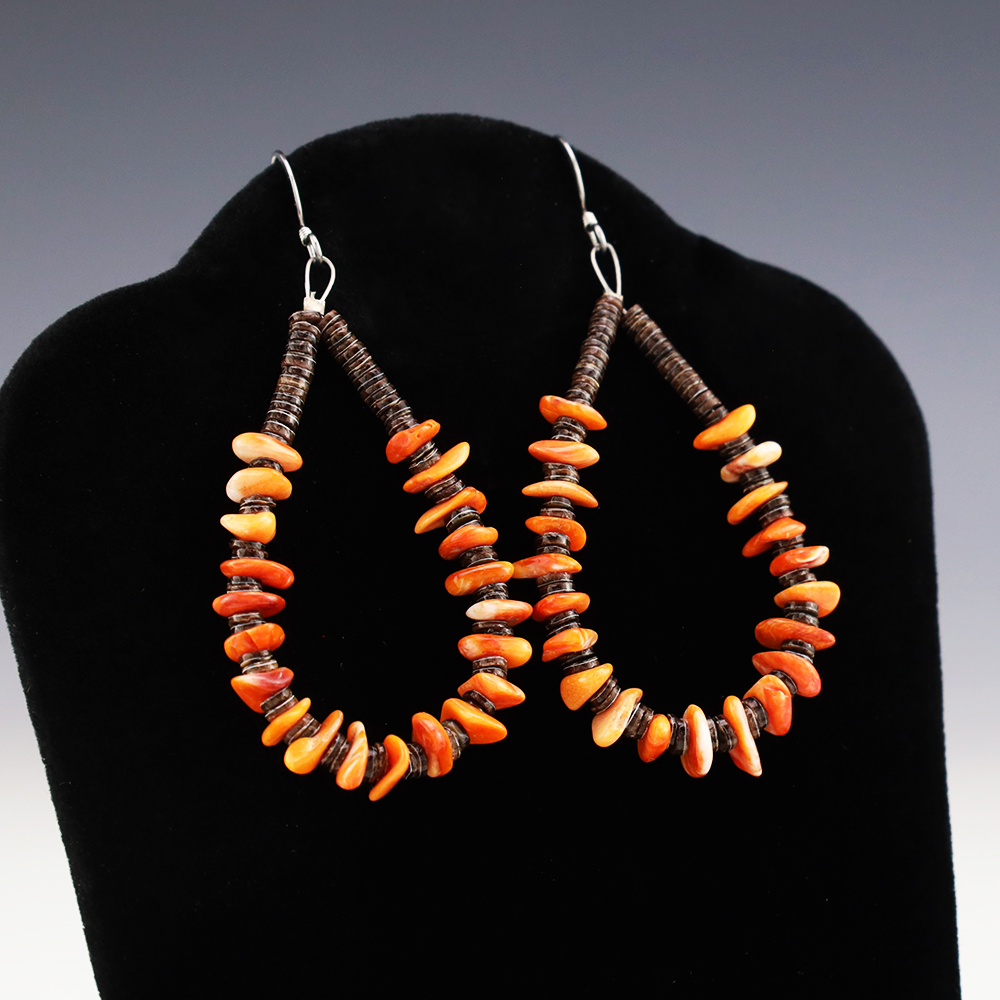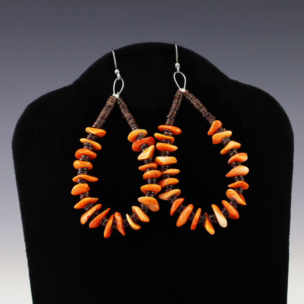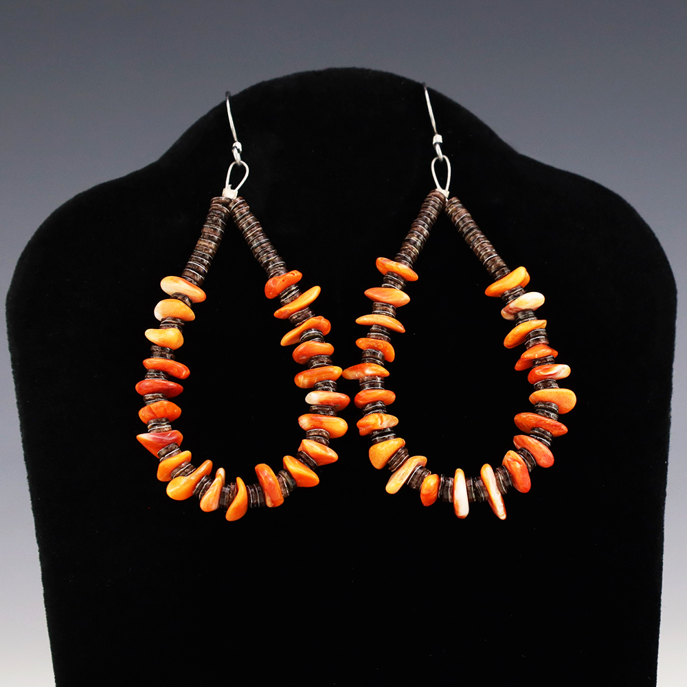 Kewa artist Jeanette Calabaza handcrafted these lovely earrings out of Spiny Oyster and Olive Shell. These earrings will look fabulous with any outfit. Weighs 6 grams.