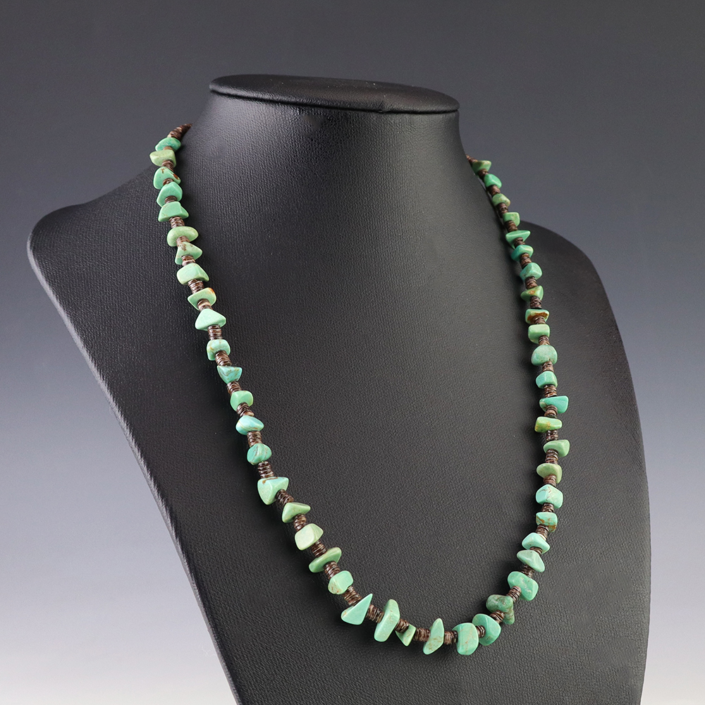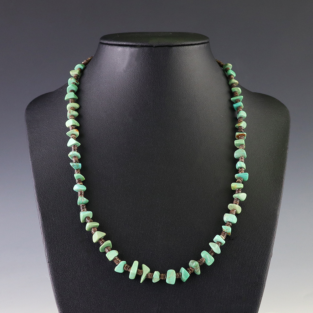 Kewa (Santo Domingo) artists are known for their heishi. The word “heishi“ means “shell” in the Keresan language. Traditionally Kewa jewelry makers created their heishi jewelry out of shell. The shell is hand cut into a flat disc. Today, other stones that Santo Domingo artists cut in this manner, are also referred to as heishi. With modern tools and innovations, artists can create different styles of beads and use different gemstones like turquoise, coral, jet, serpentine, and spiny oyster.