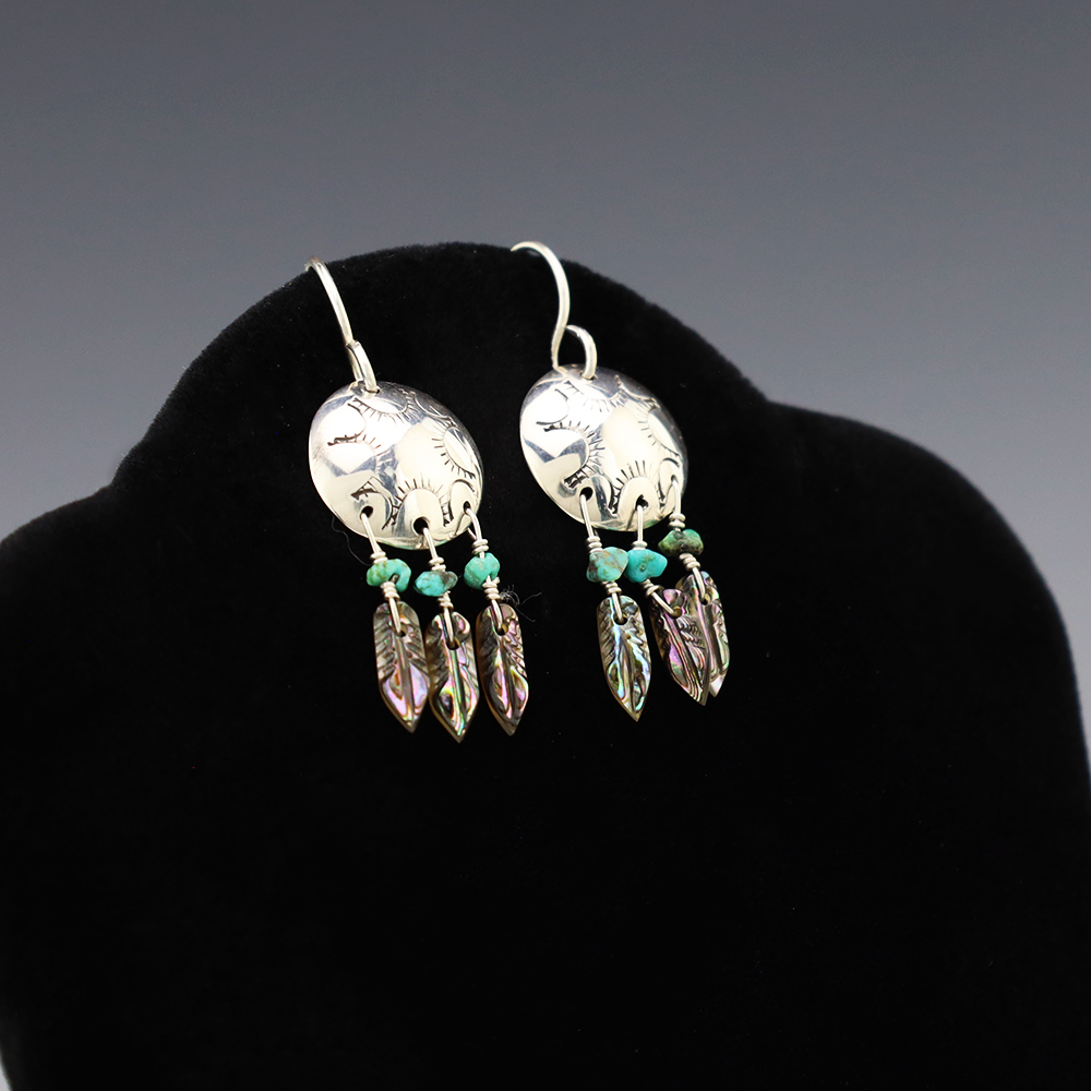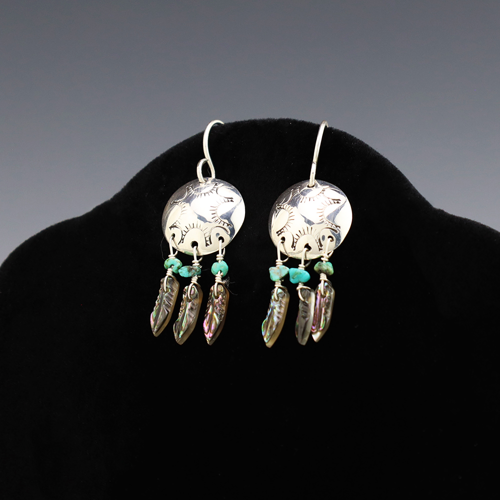 NATIVE AMERICAN ZUNI TURQUOISE EARRINGS BY NANCY & SHELDON WESTIKA