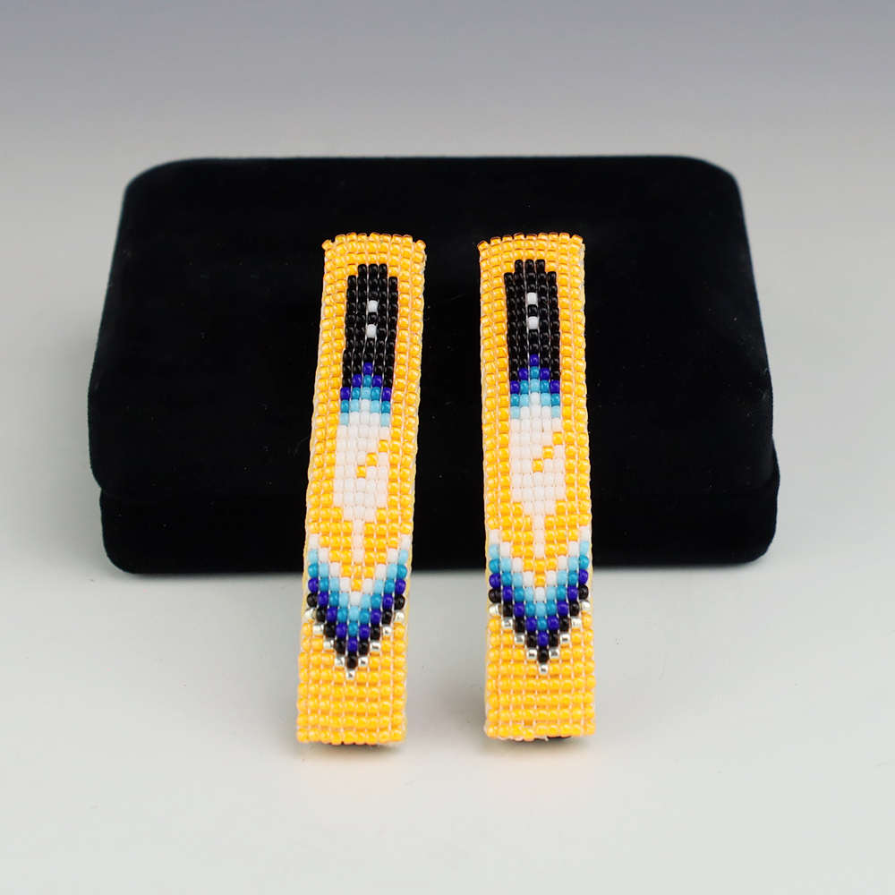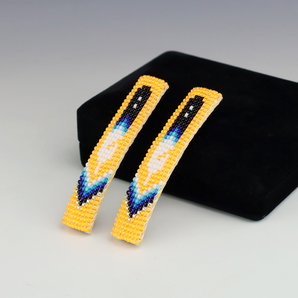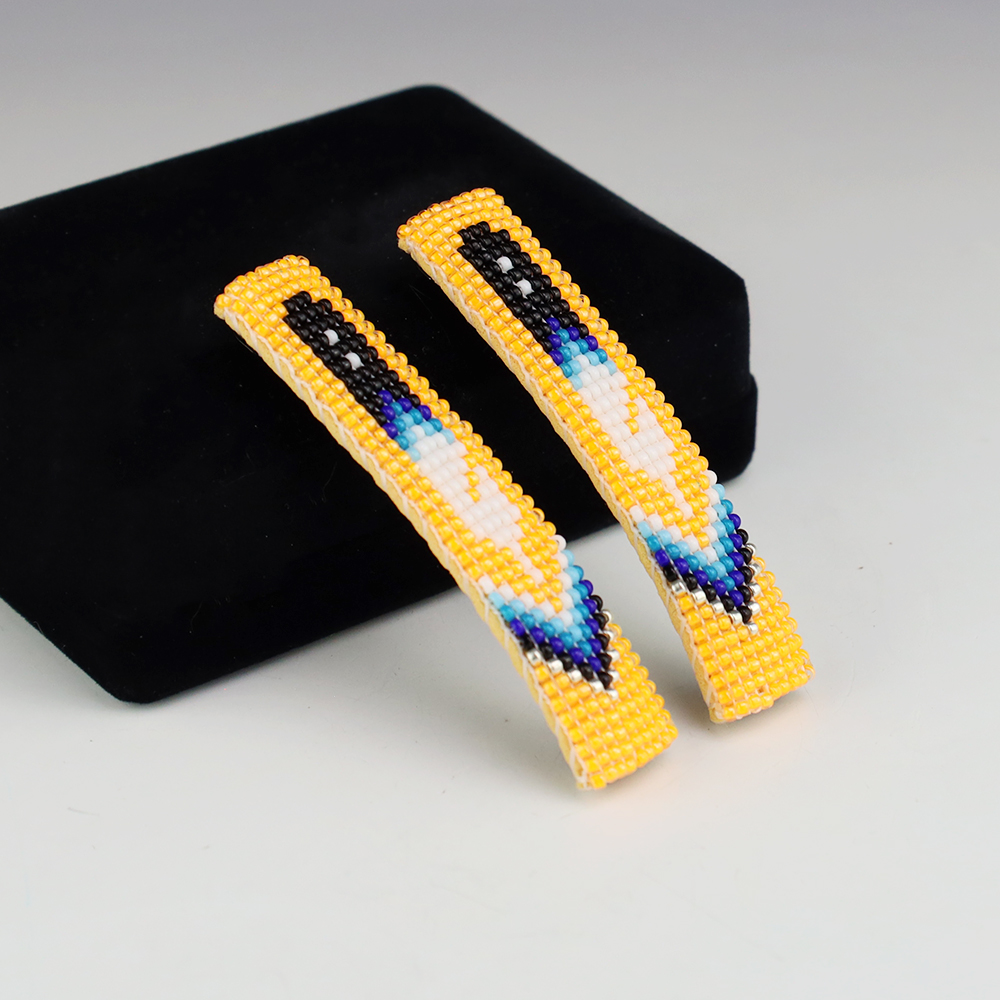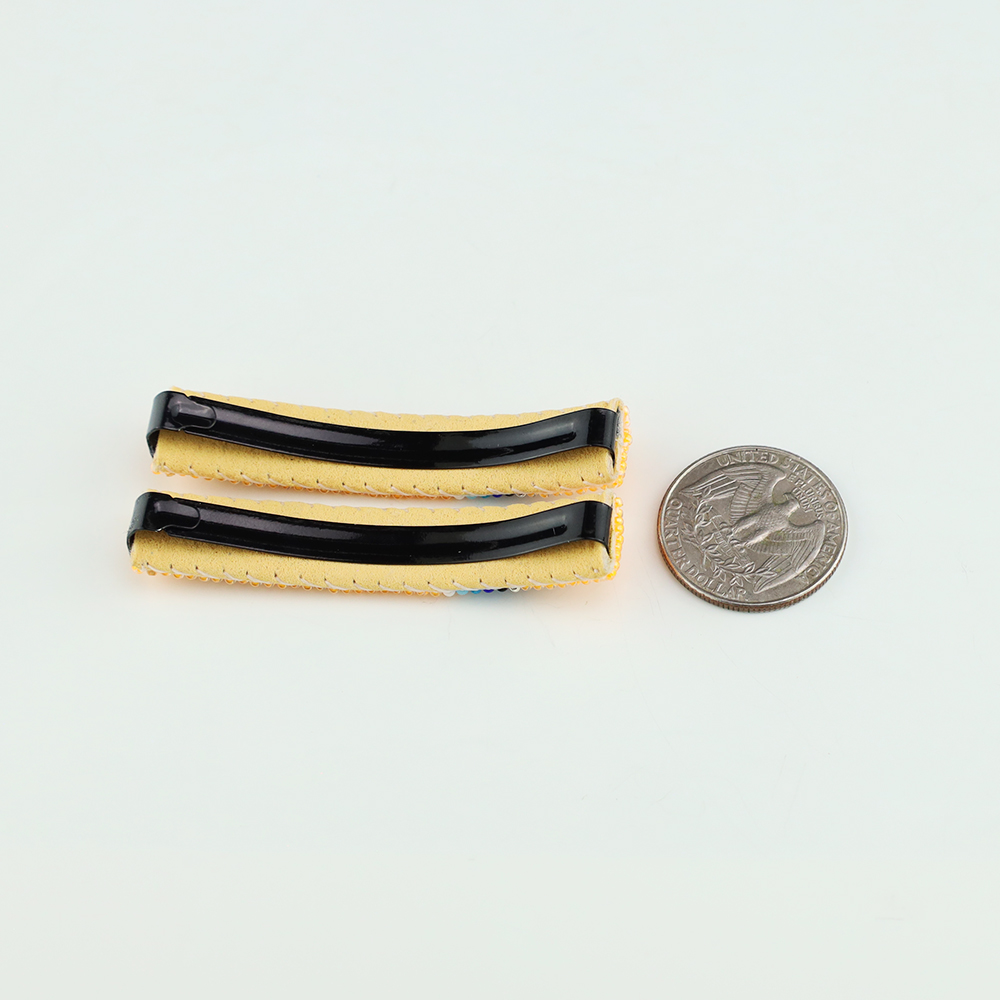 Navajo artist Judy Wilson hand beaded these lovely barrettes. Great colors that compliment the design. Judy uses tiny seed beads to create her jewelry and backs it with soft leather.