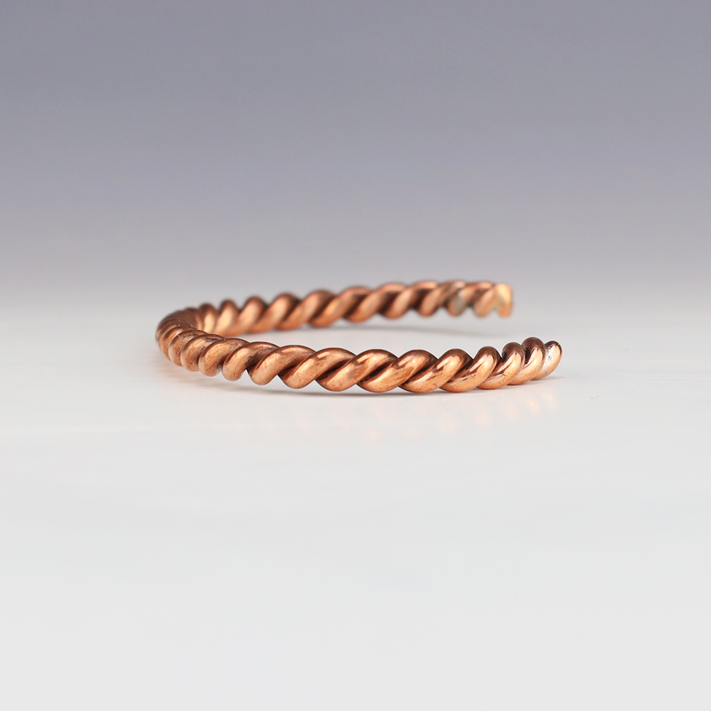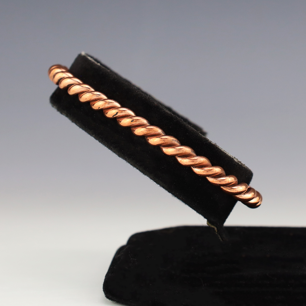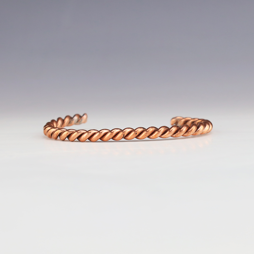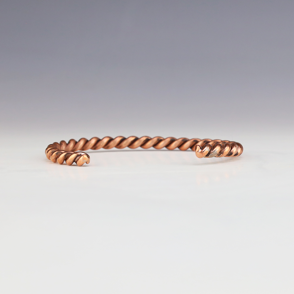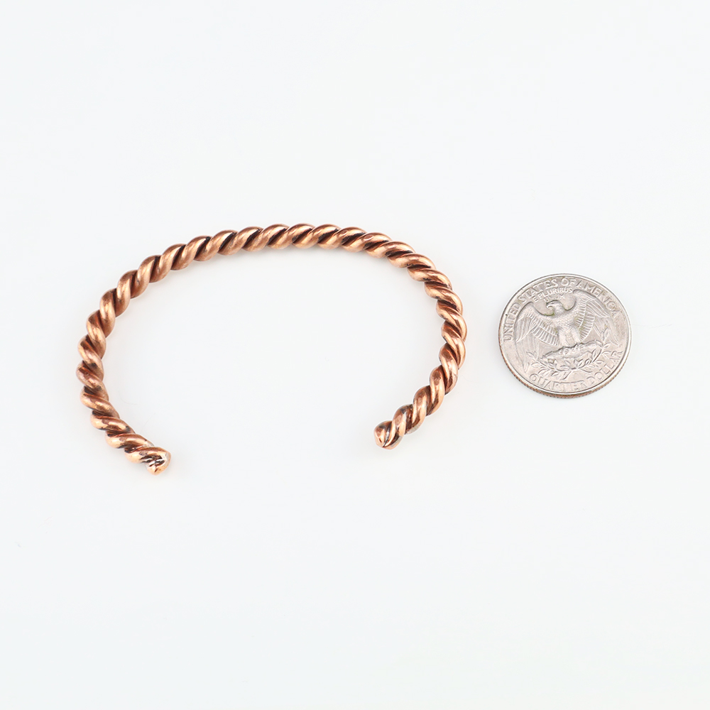 Stellar twist bracelet made out of Copper. Weighs 16 grams. The entire inner circumference is about 6 1/2”, including 1 3/8” opening. (Fits a 6 1/2″ wrist).