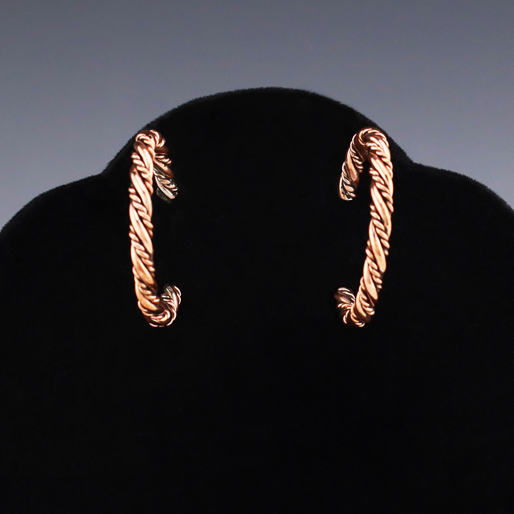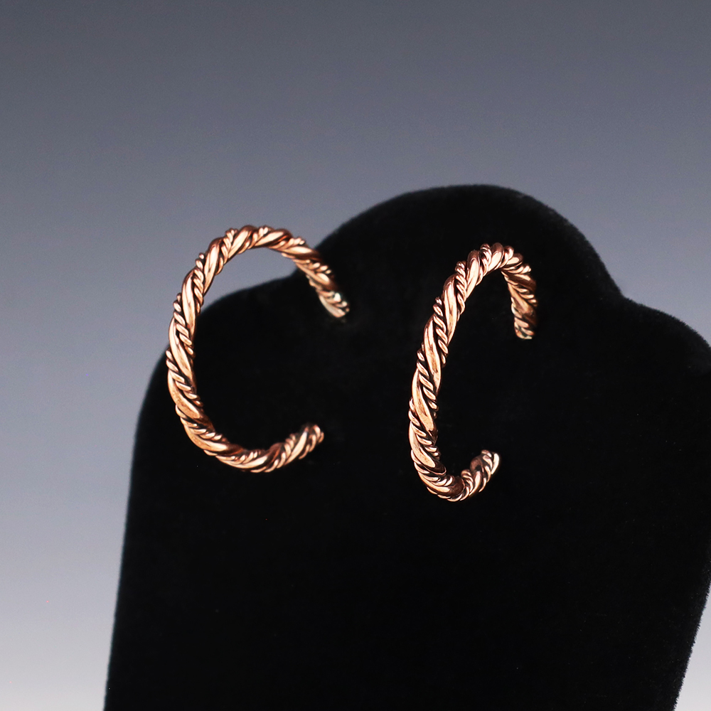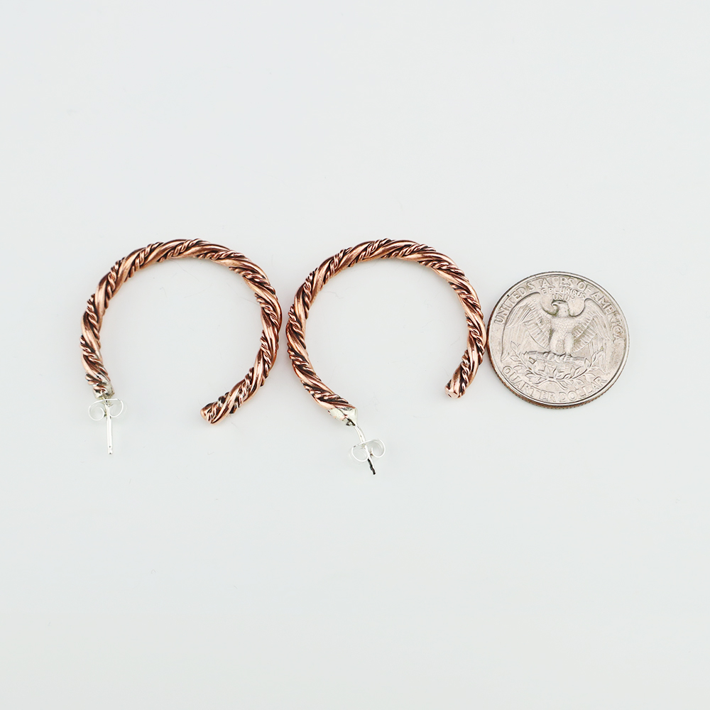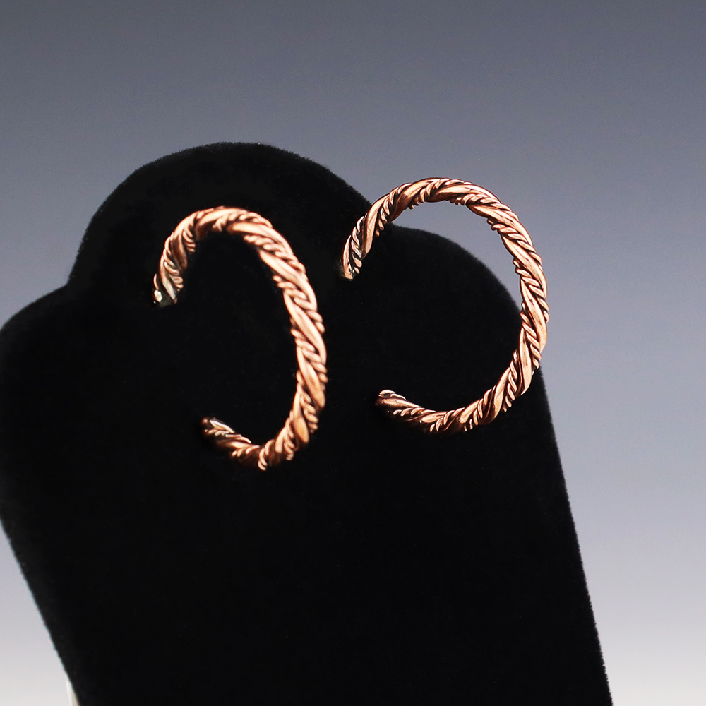Lovely hoop earrings out of copper. These earrings will become a versatile accessory in your jewelry collection. Weighs 10 grams.