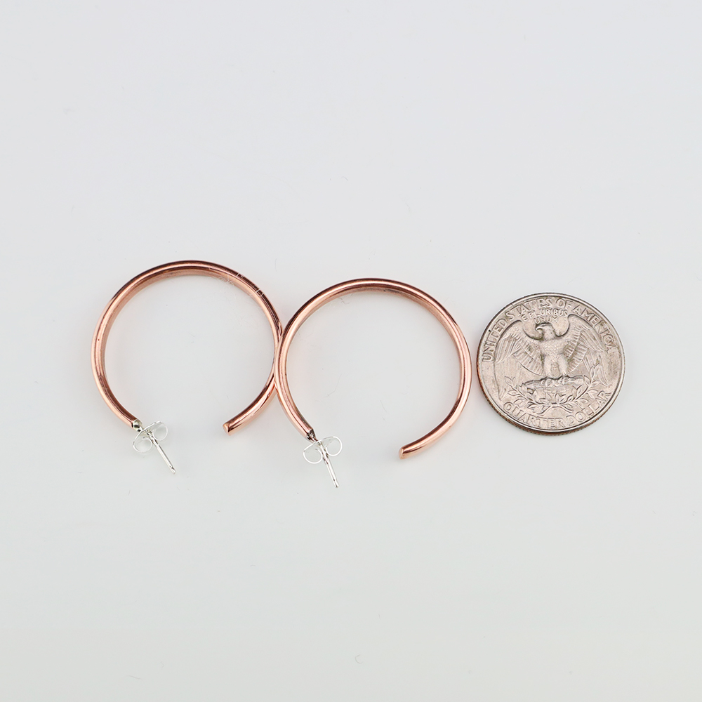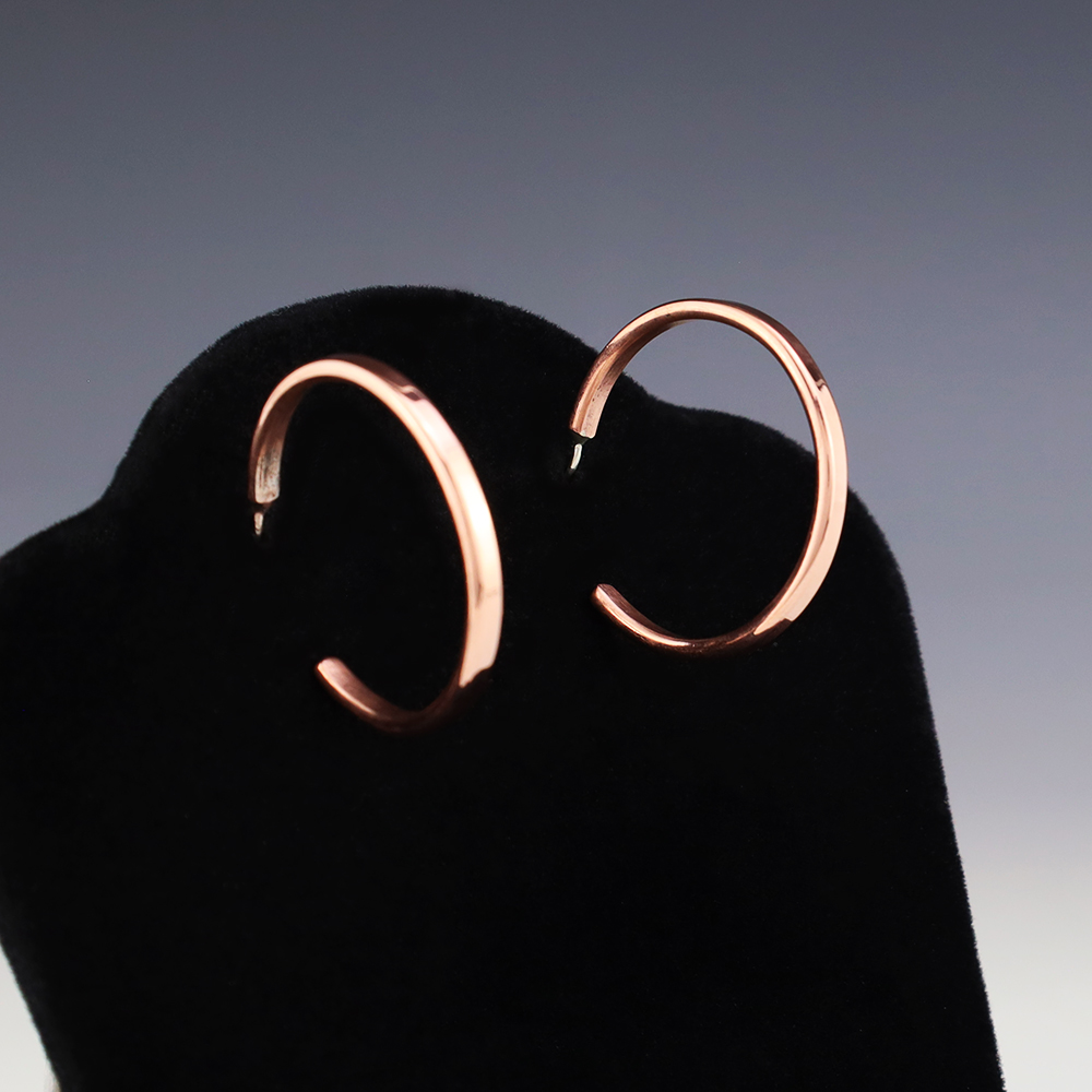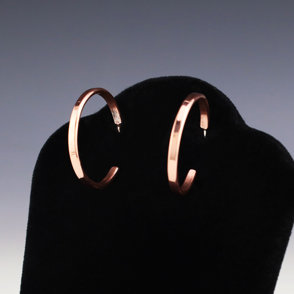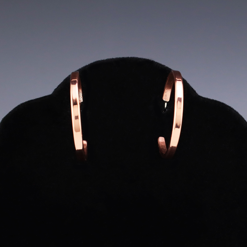 Lovely hoop earrings out of copper. These earrings will become a versatile accessory in your jewelry collection. Weighs 6 grams.