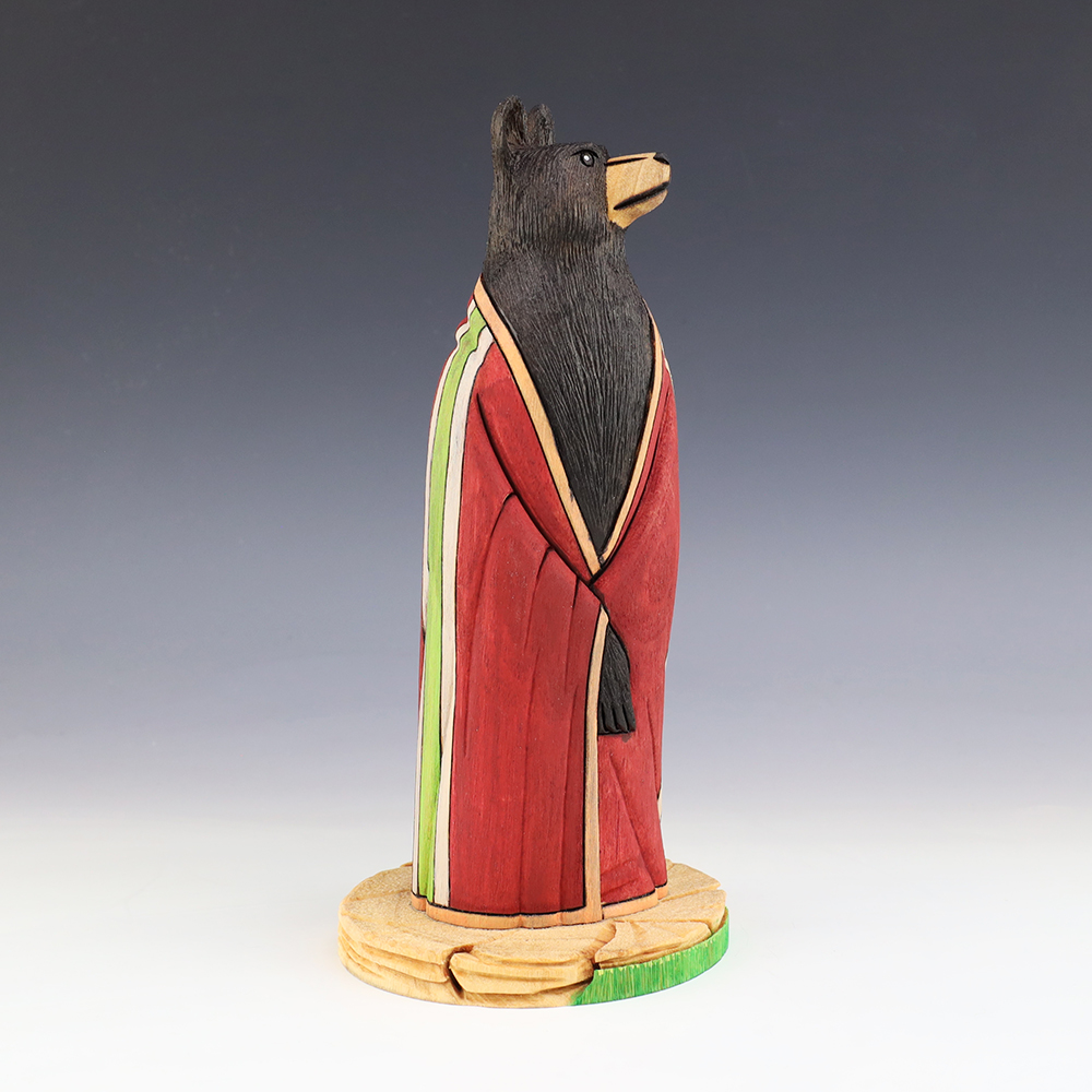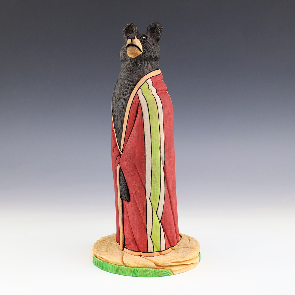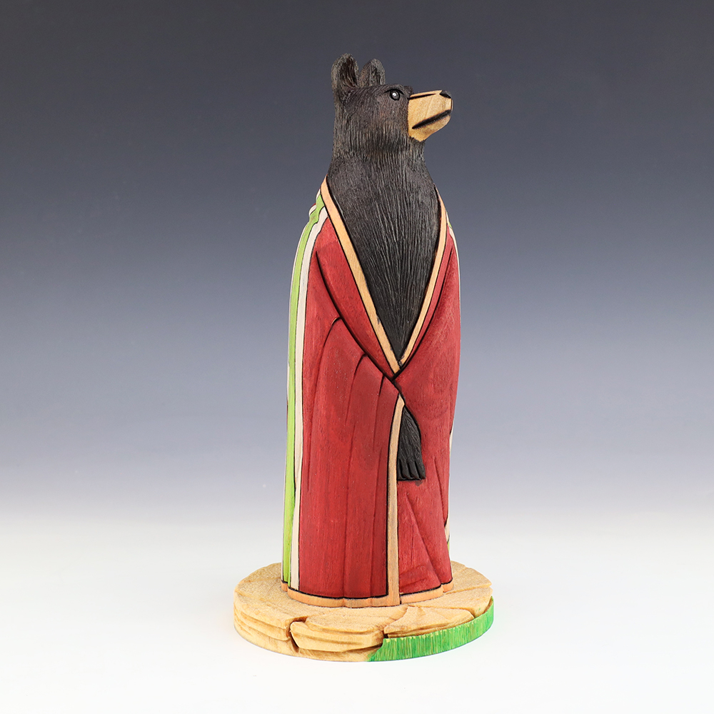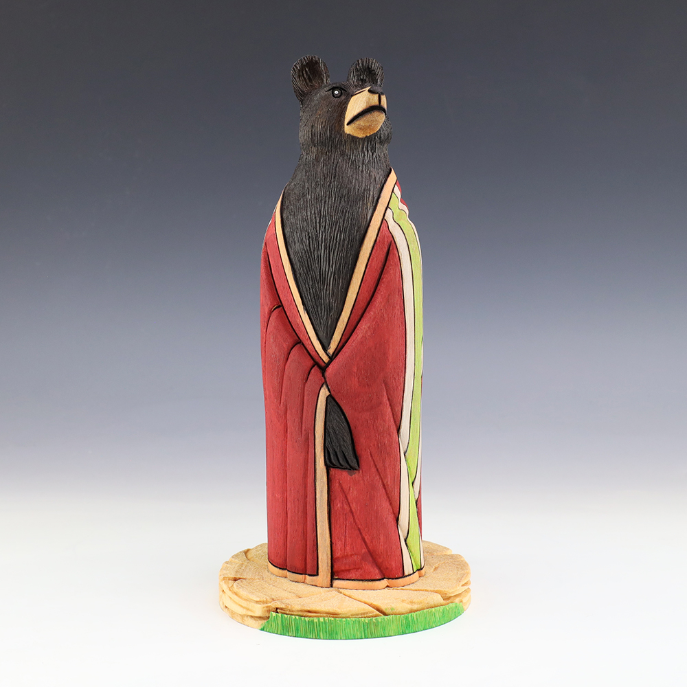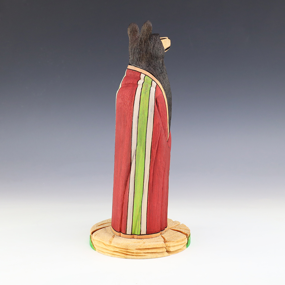 This fabulous Bear is hand crafted by Navajo folk art artists Ray and Orleen Lansing. Carved out of cottonwood with an amazing amount of detail. This bear carving would make a wonderful addition to your Native American or Navajo Folk art collection. Signed