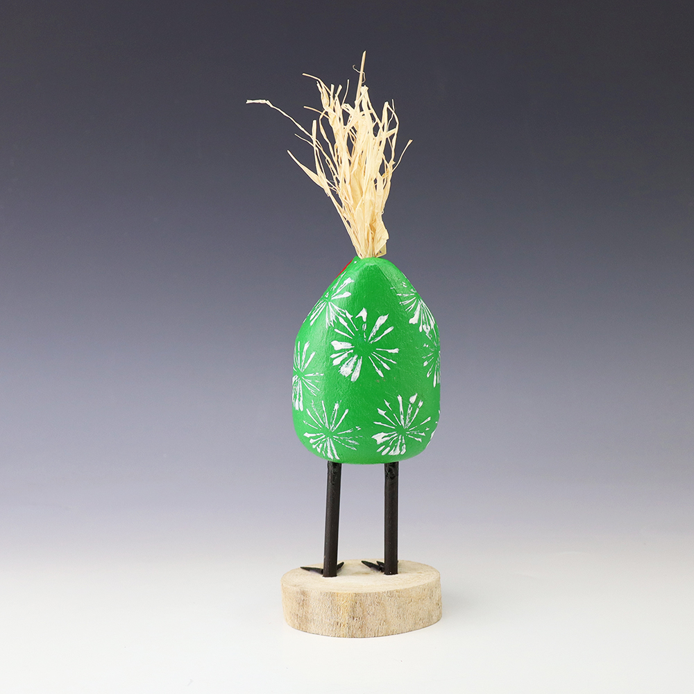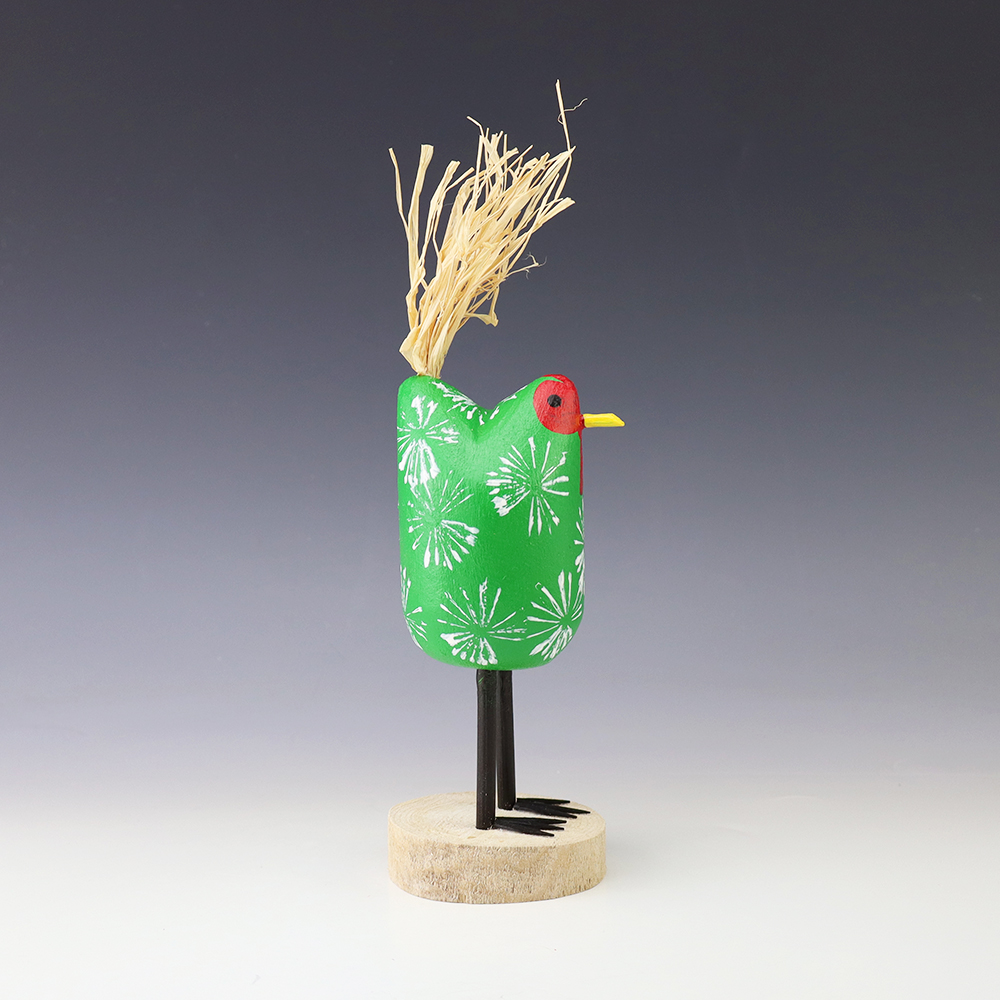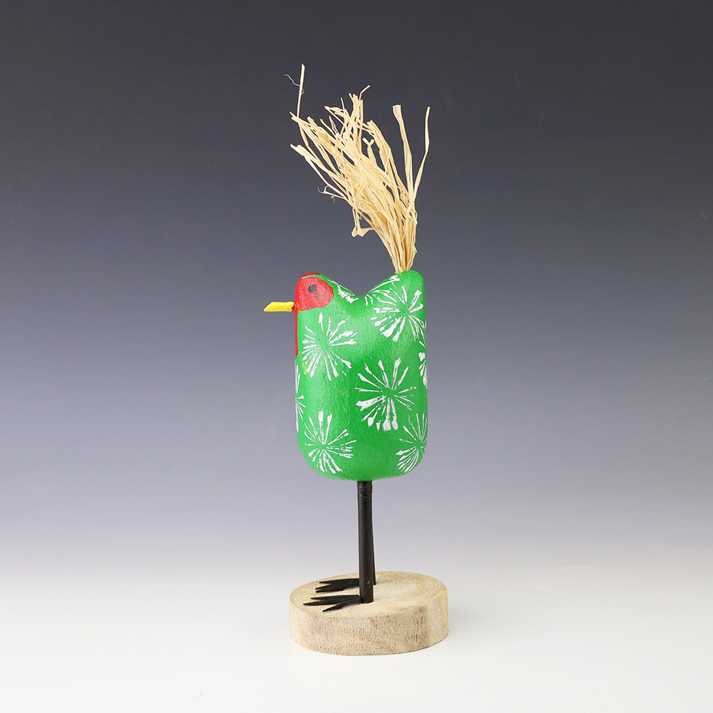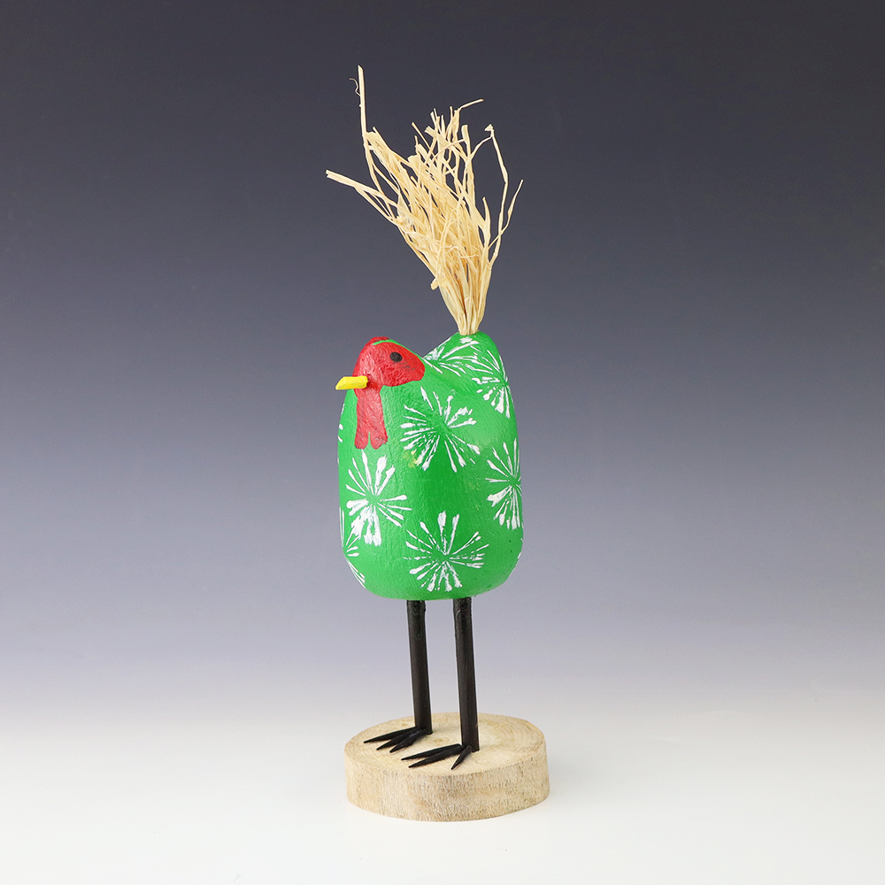 Edith John is the daughter of the late Woody Herbert who was known for his folk art Brahma bulls. Edith started carving while helping her father. Edith’s folk art chickens elicit happiness wherever they roost! Bold colors and patterns, that will brighten your Navajo folk art collection. Hand carved out of wood with a straw tail. Signed