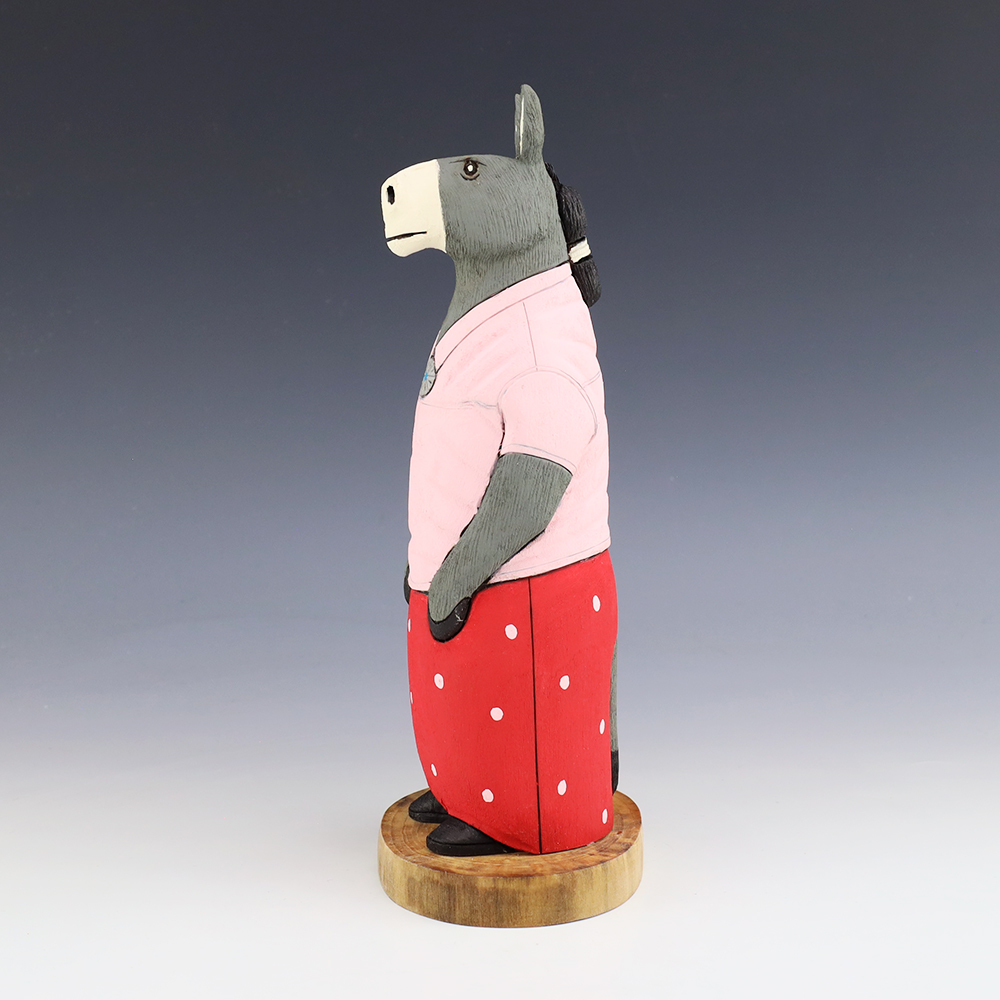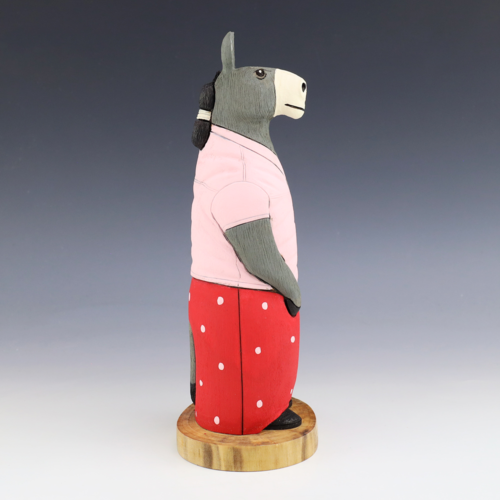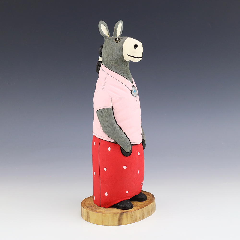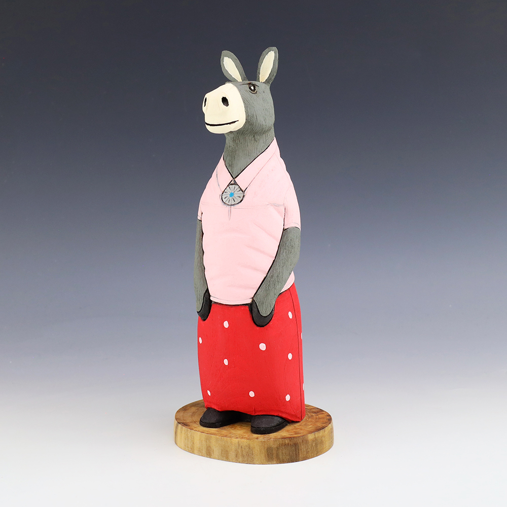 This wonderful Donkey is hand crafted by Navajo folk art artists Ray and Orleen Lansing. Carved out of wood with an amazing amount of detail. This donkey carving would make a wonderful addition to your Native American or Navajo Folk art collection. Signed