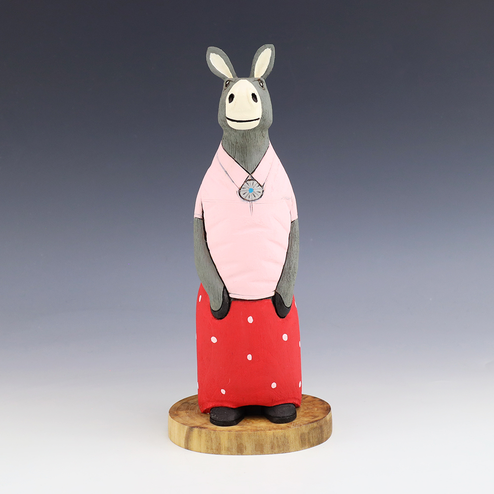 This wonderful Donkey is hand crafted by Navajo folk art artists Ray and Orleen Lansing. Carved out of wood with an amazing amount of detail. This donkey carving would make a wonderful addition to your Native American or Navajo Folk art collection. Signed