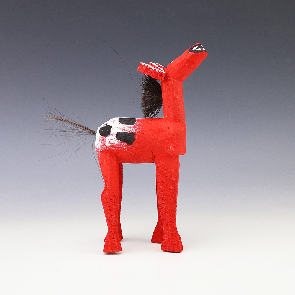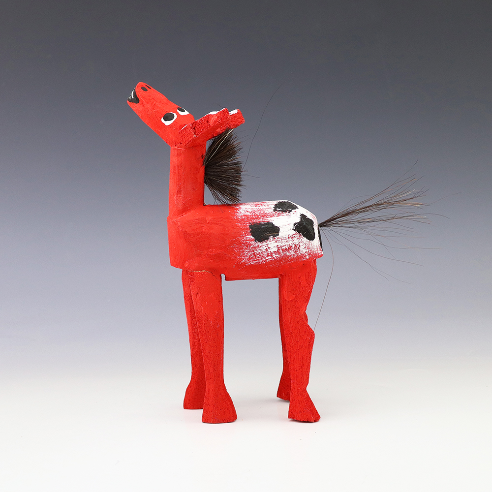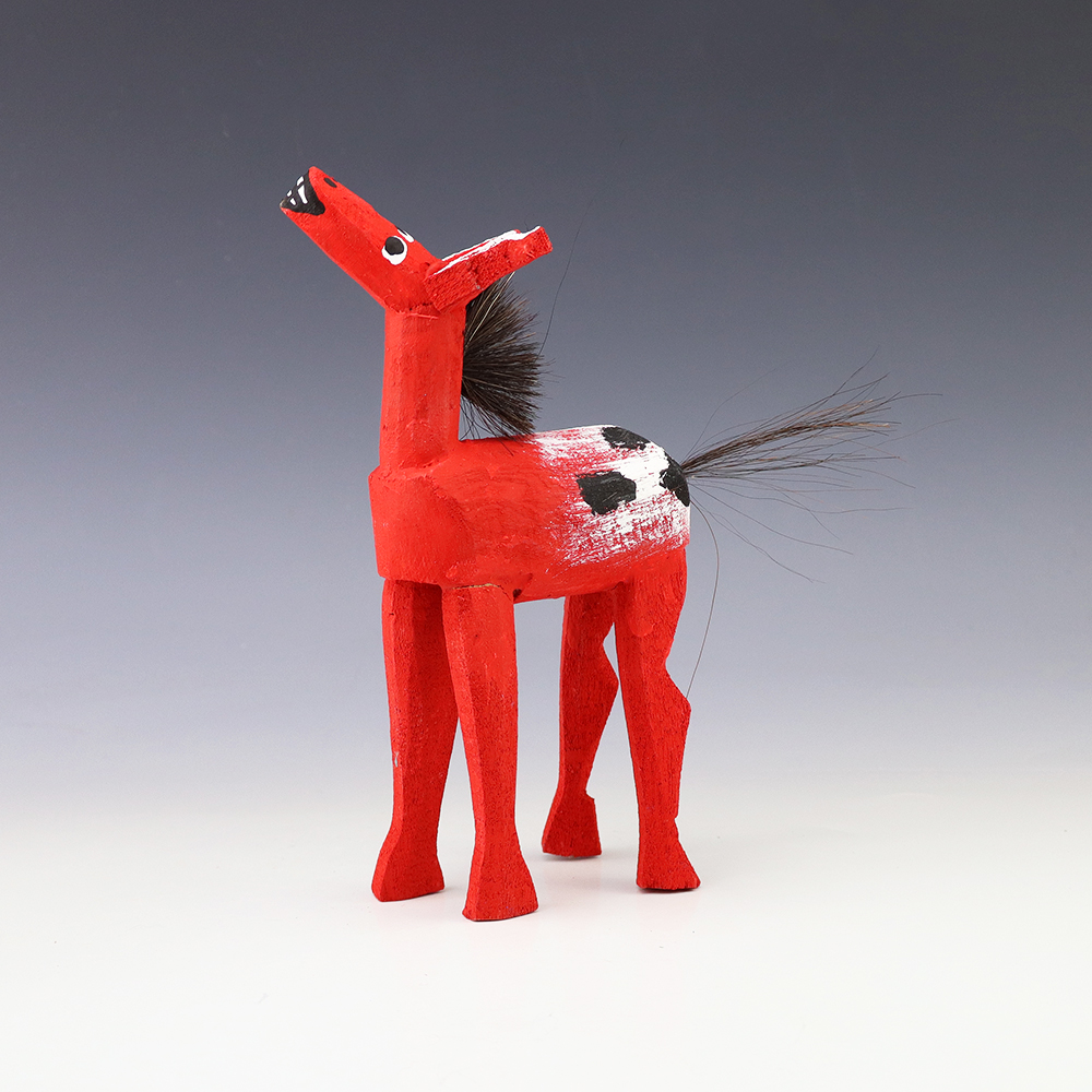 Wonderful horse that will be a great addition to your Navajo folk art or Native American art collection. Created out of wood by Navajo folk art carver, Ivetta Sherman Yazzie. Navajo folk art depicts how Navajos view their lives and culture. Farm animals are one of the commonly carved folk art pieces.