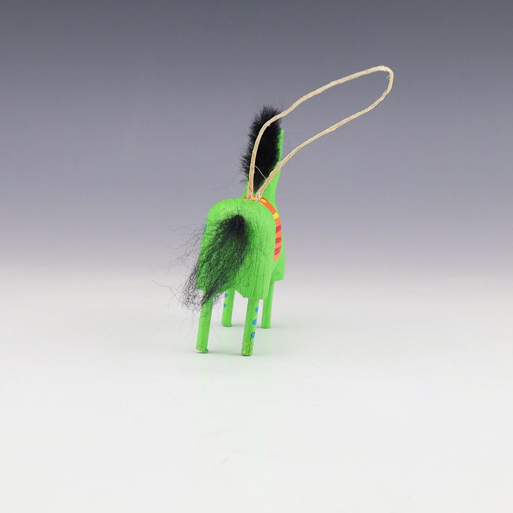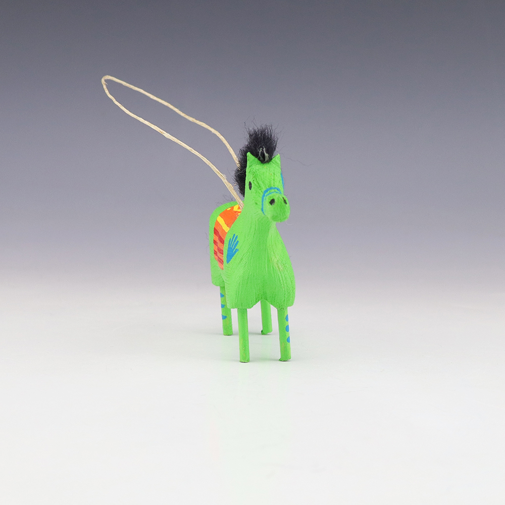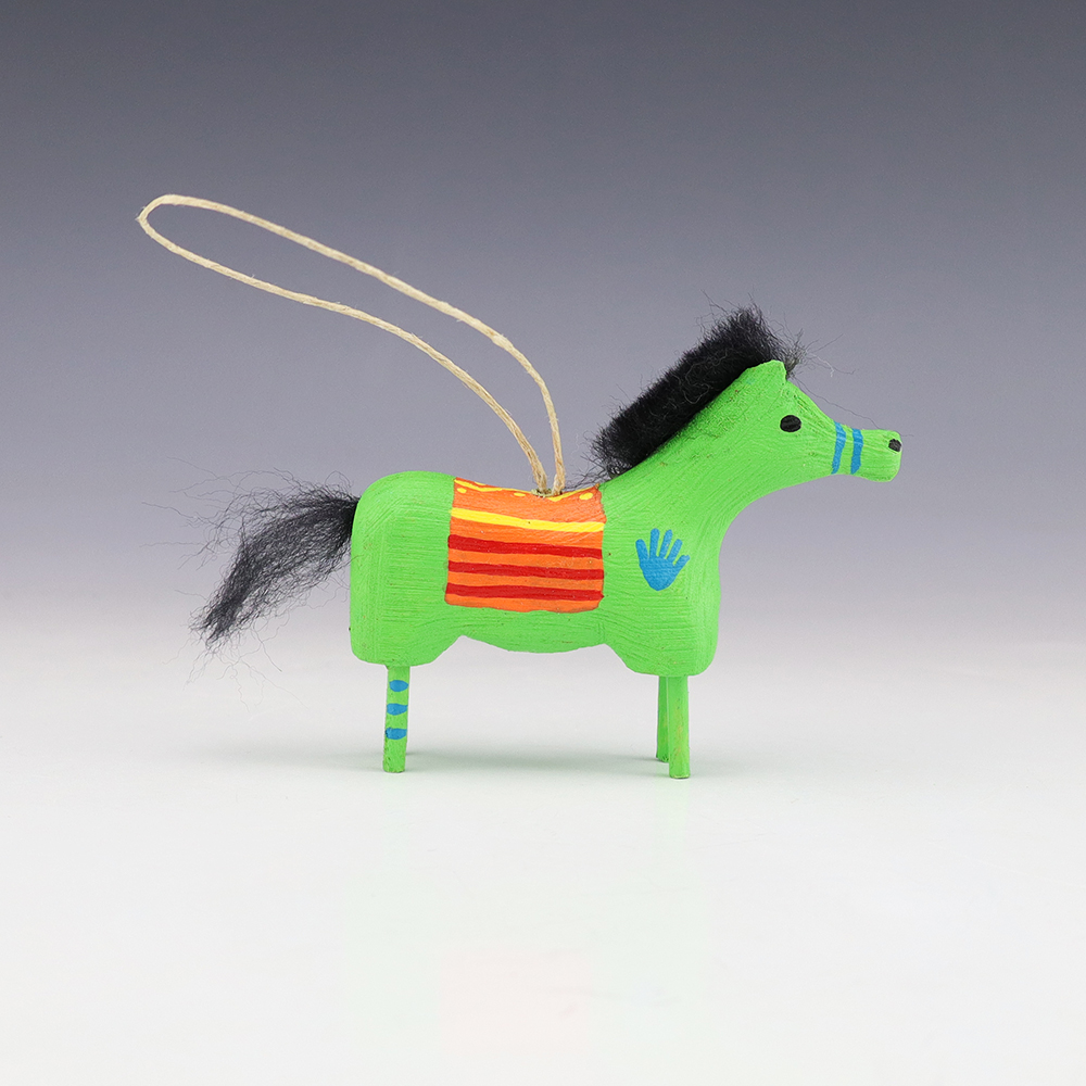 Bold colors and patterns, that will brighten your Navajo folk art collection. Hand carved out of wood with a straw tail by Navajo artist Candie John. Signed 9 3/8” tall x 2 7/8” long x 2 1/2” wide (height is to top of straw tail) Artist card included In recent...