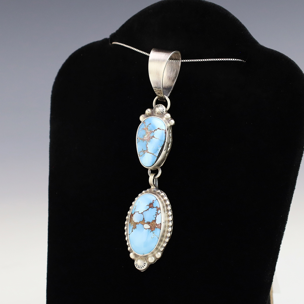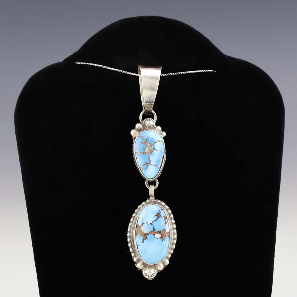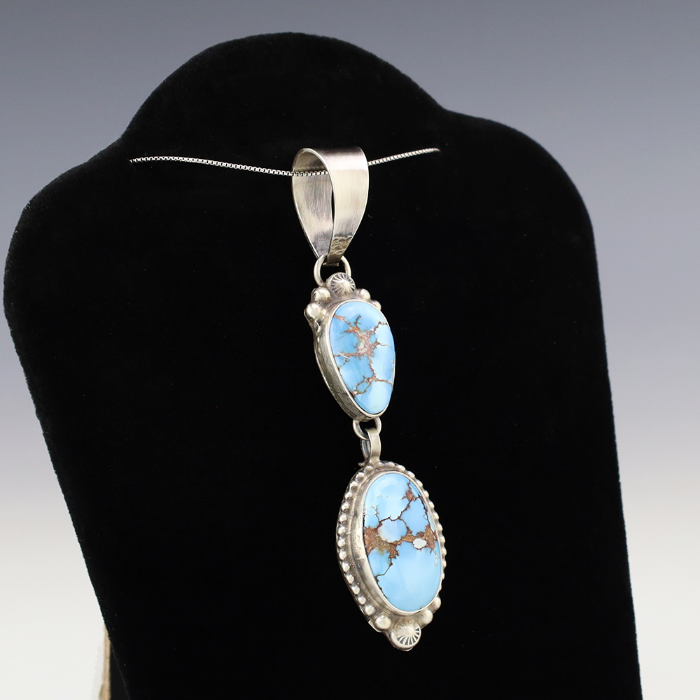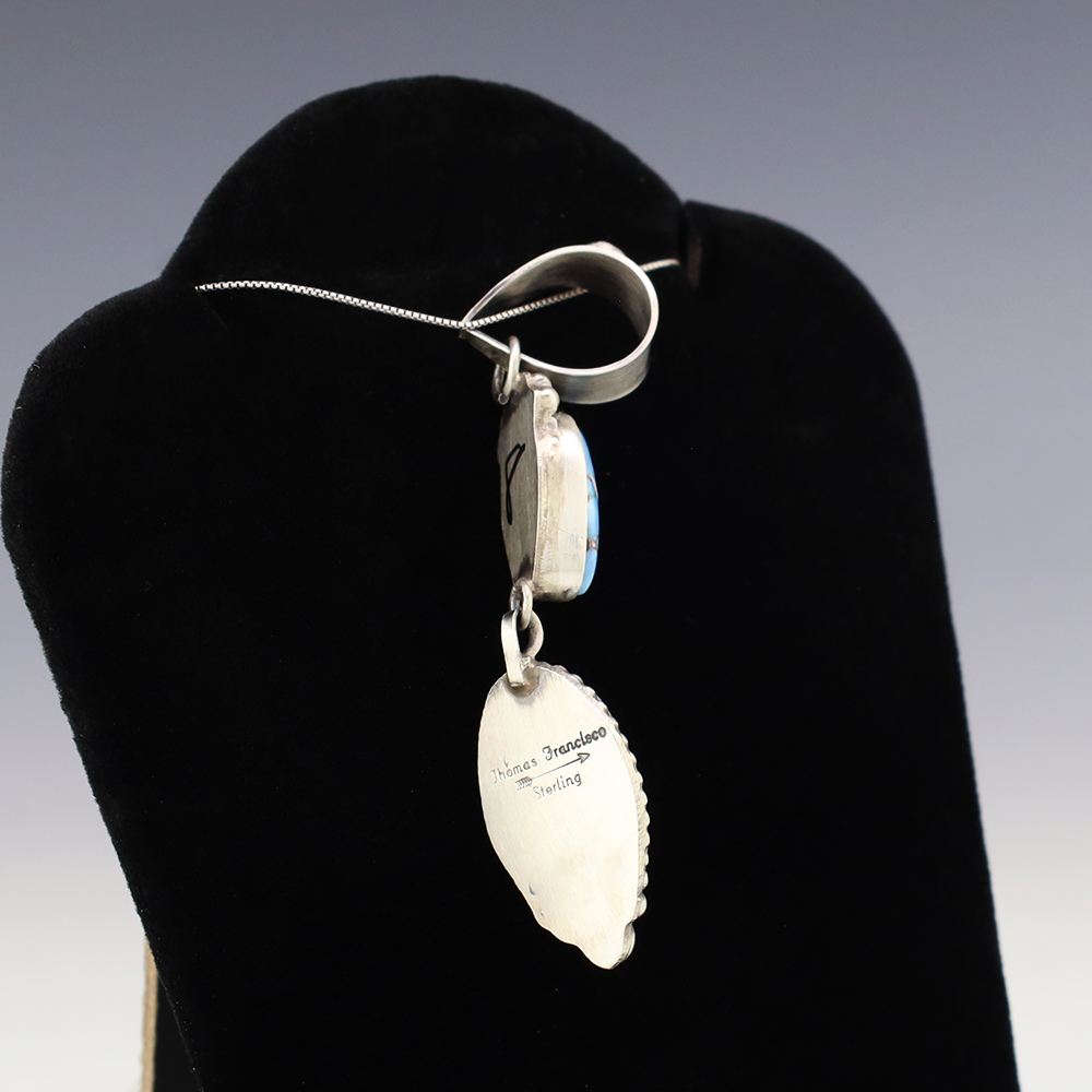 Great design! Navajo silversmith Thomas Francisco made this beautiful sterling silver and Golden Hills Turquoise pendant. A timeless beauty that you will enjoy for years to come. (Chain not included) Weighs 12 grams. Signed