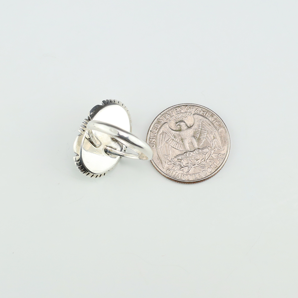 Amazing inlay work! Zuni jewelry makers, Nancy and Sheldon Westika made this stunning ring. Made out of sterling silver and inlaid with Kingman Turquoise and Jet. Zuni artists are known for their lapidary work. The Westikas have been making jewelry since the 1970’s and they are known for their fine...