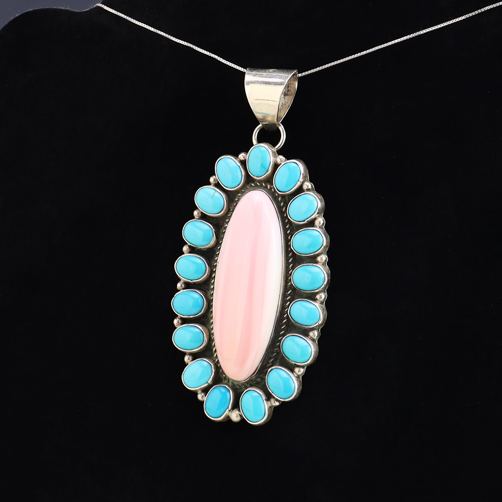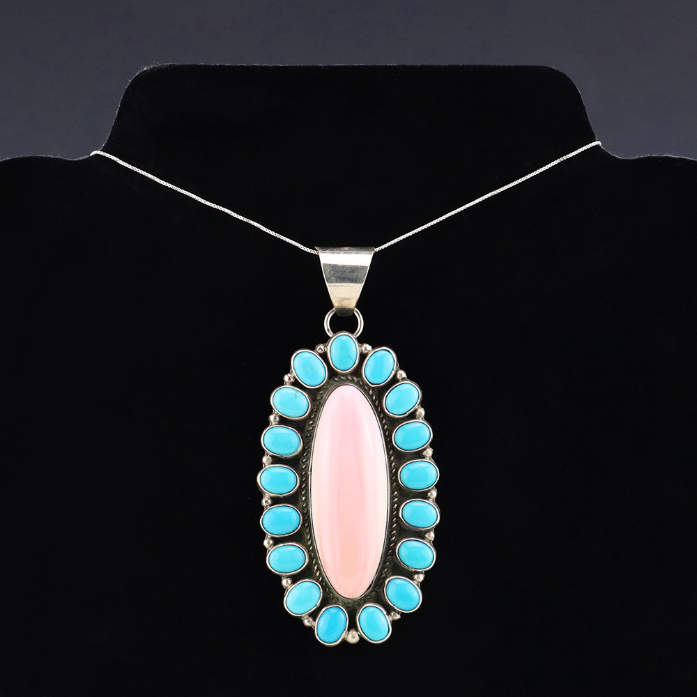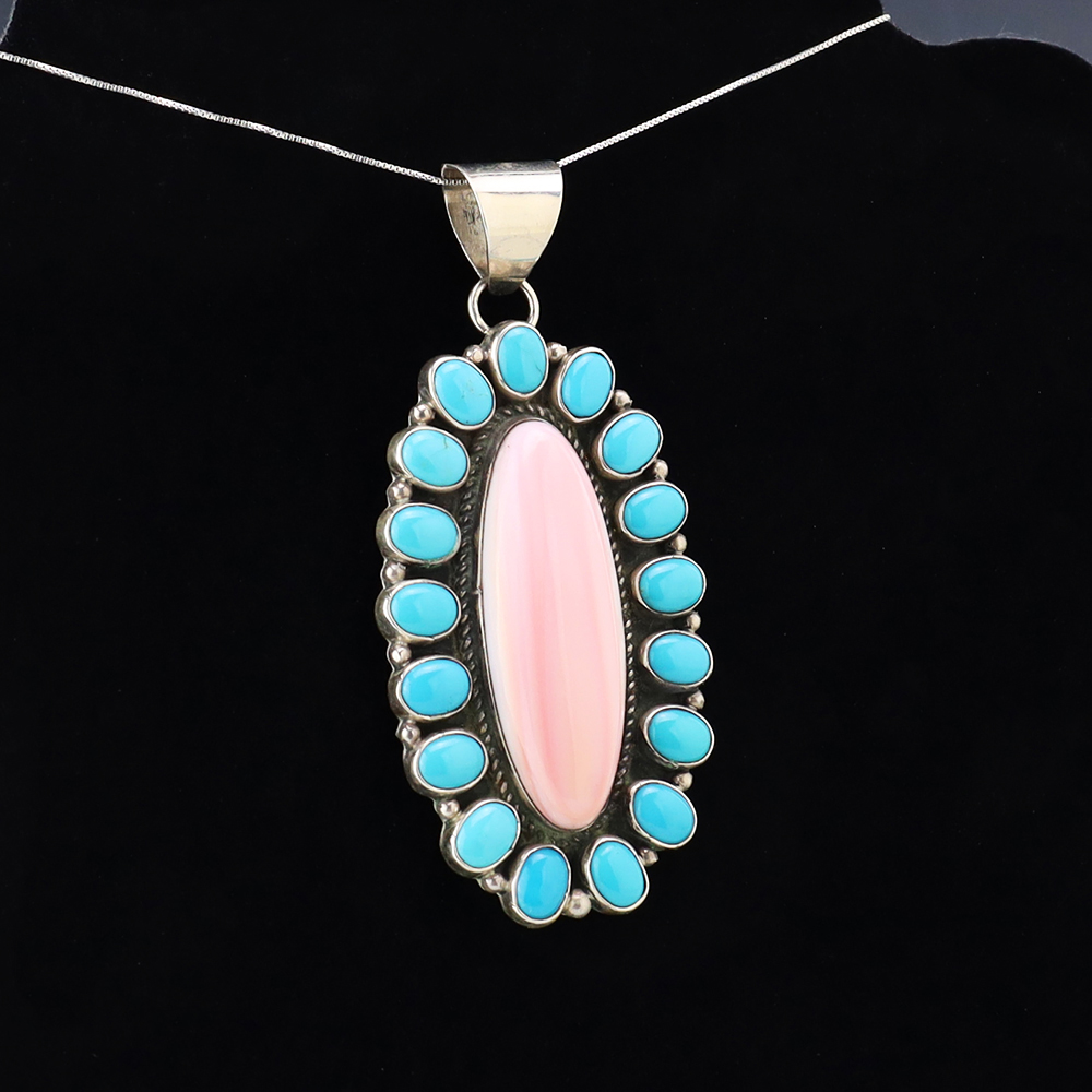The Navajos began working with silver in the 19th century, and began making things like buckles, bridles, buttons, rings, canteens, hollow beads, earrings, crescent-shaped pendants (called “najas”), bracelets, crosses, powder chargers, tobacco canteens, and conchos (for belts). Their silversmithing skills has evolved and changed throughout the years, and in about 1880 Navajo silversmiths started to set turquoise in their silver work. Traditionally, Navajo artists worked with jewelry techniques like repousee and stamp work, but today they explored in other Native American jewelry making techniques like Zuni inlay work and Hopi overlay work.