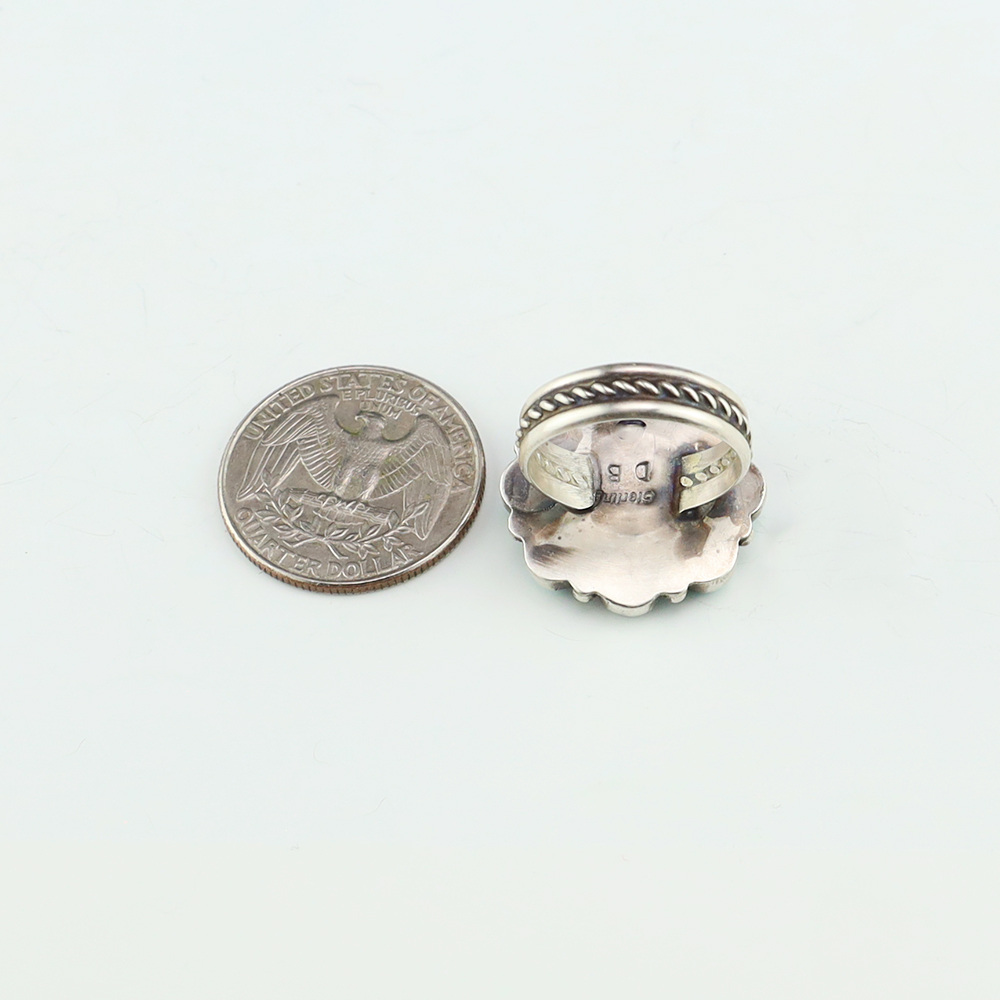 NATIVE AMERICAN TURQUOISE & JET RING BY NANCY & SHELDON WESTIKA 11 1/4