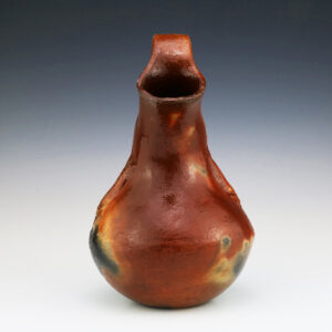 Although Navajo potters learned the art of pottery making from the Pueblo people, they have developed their own distinctive pottery style. Traditionally, Navajo pottery had little or no design. The beauty of the clay and the markings, or fire clouds, from firing, was showcased. Currently, Navajo pottery is not confined to traditional techniques and Navajo potters are experiencing new and creative approaches. Some traditionally designed, some etched or painted brightly, and some thrown in the fire with horse hair, but melted pinon pitch should be applied on Navajo pottery to give it a glossy finish.