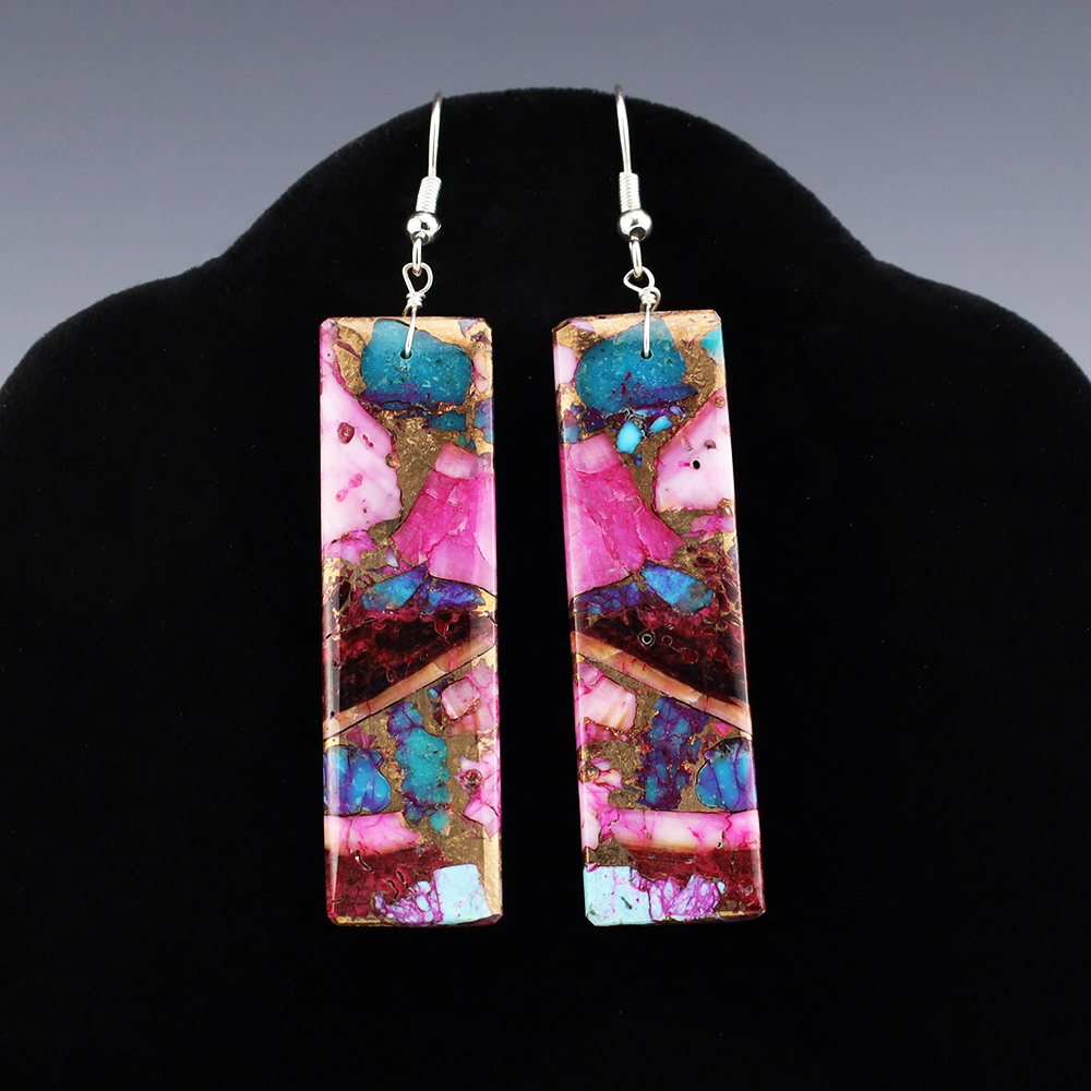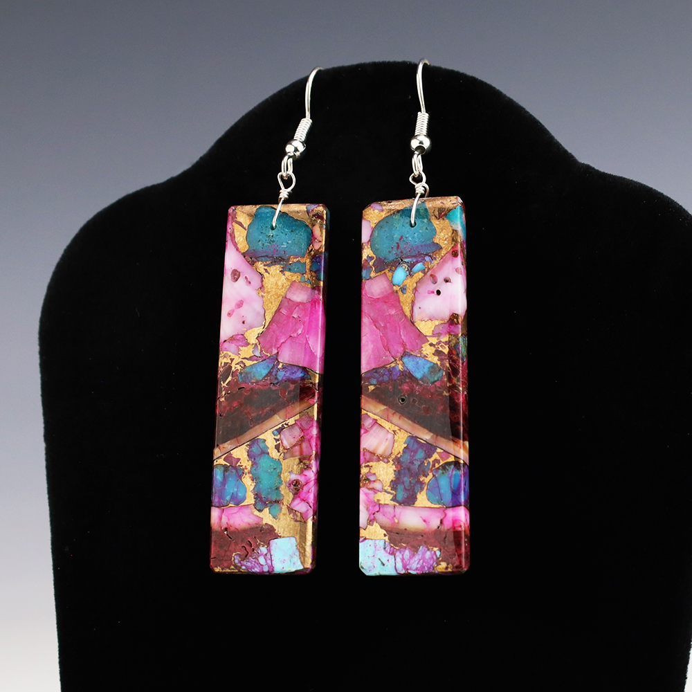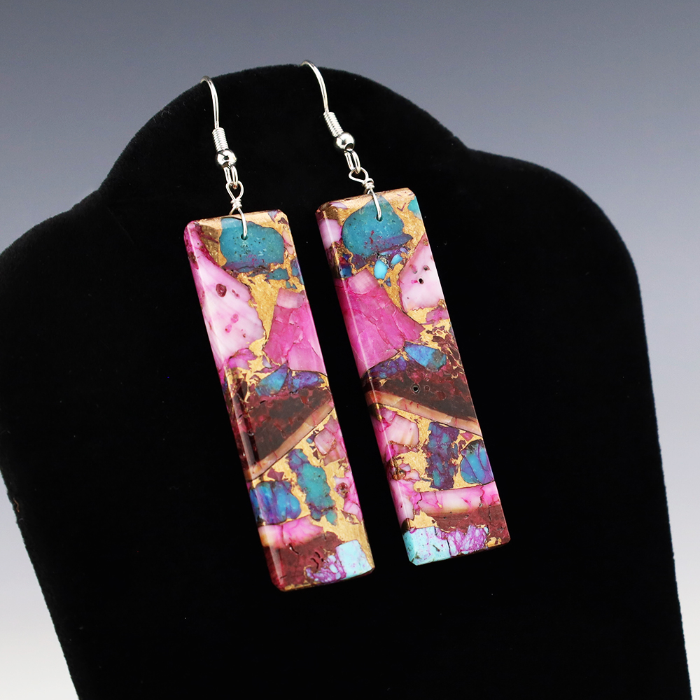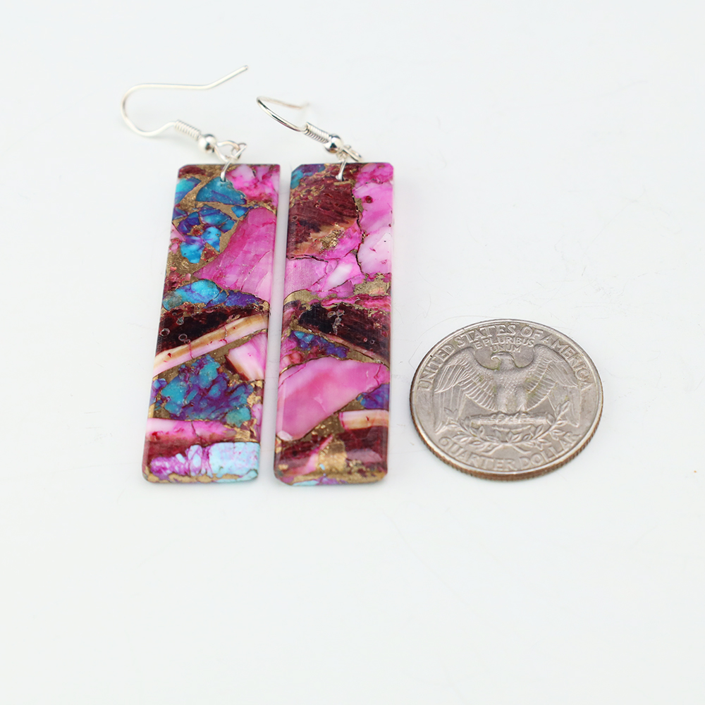 (Slab earrings are all stone and they can break when dropped on hard surfaces. We will include plastic earring backs for the wires. Please use these or pinch the ear wires closed when wearing the slab earrings)