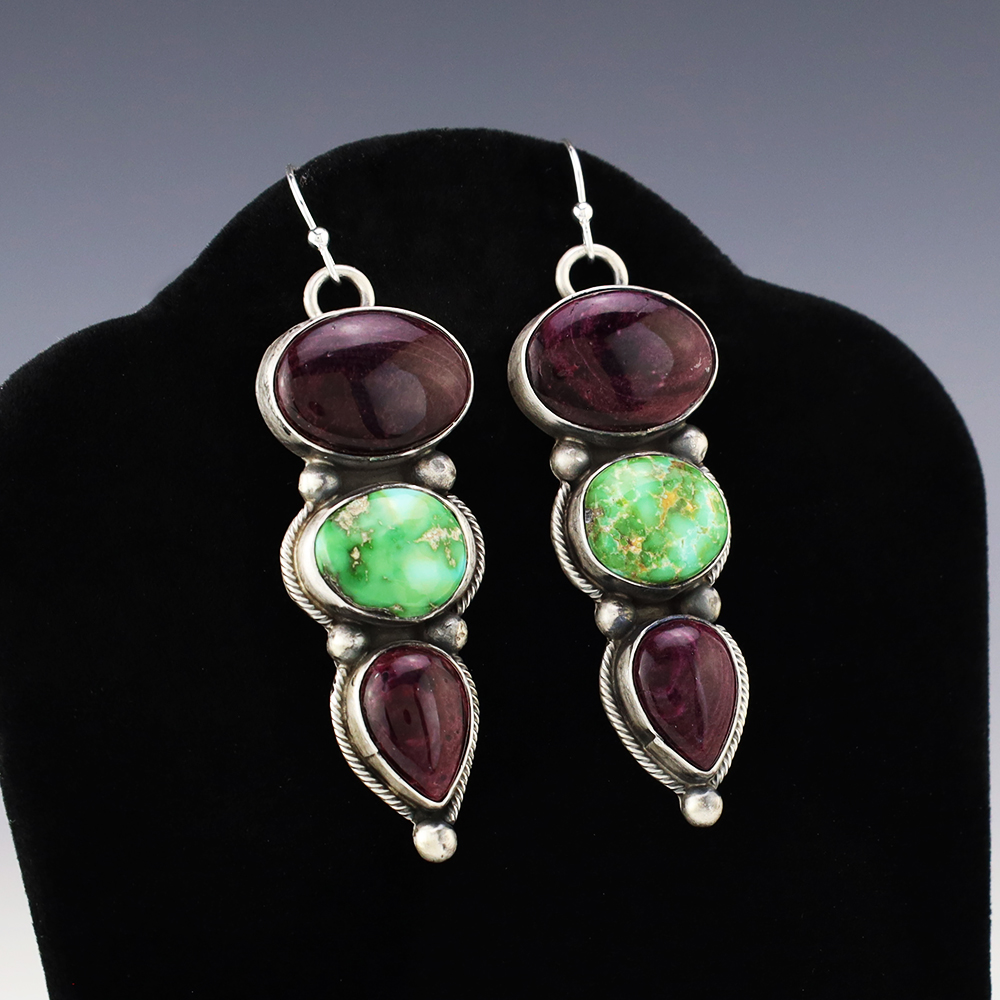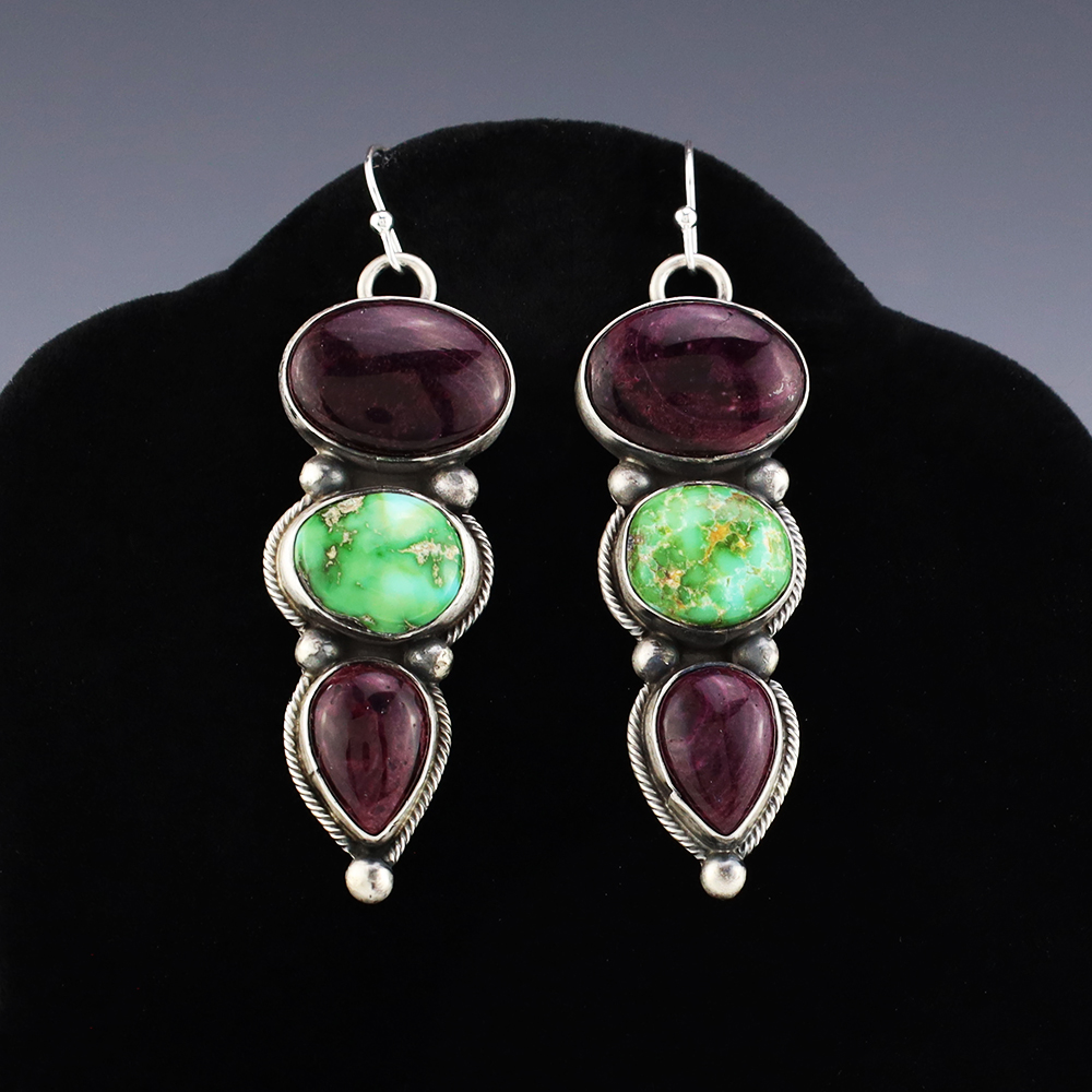 TURQUOISE & HENNA LIMESTONE EARRINGS BY NANCY AND SHELDON WESTIKA ZUNI