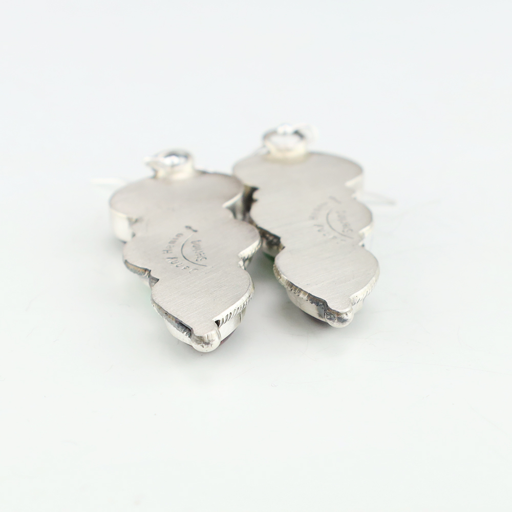 Zuni jewelry makers, Nancy and Sheldon Westika created these stunning earrings. Made out of sterling silver and inlaid with Henna Limestone and Turquoise. Zuni artists are known for their lapidary work. The Westikas have been making jewelry since the 1970’s and they are known for their fine inlay work. Weighs...