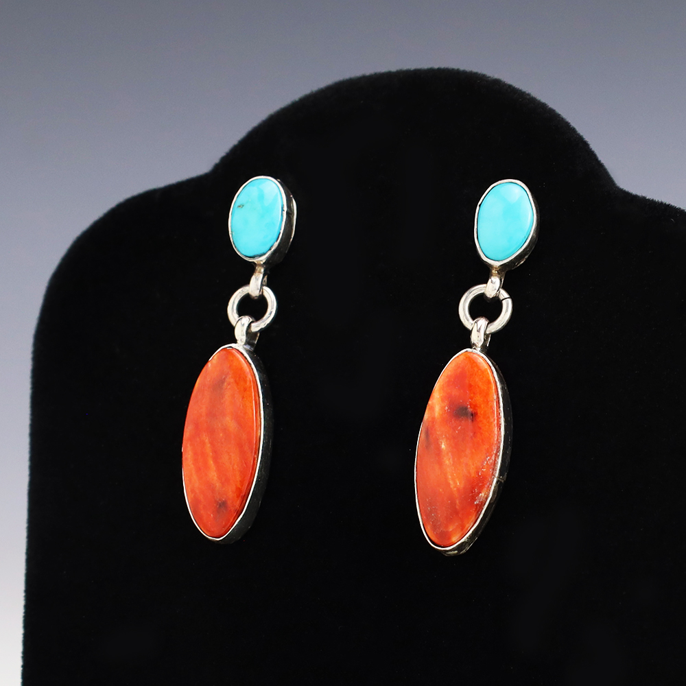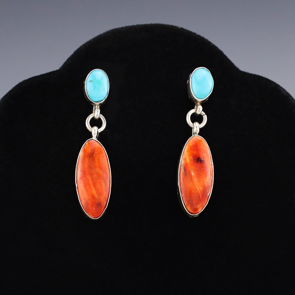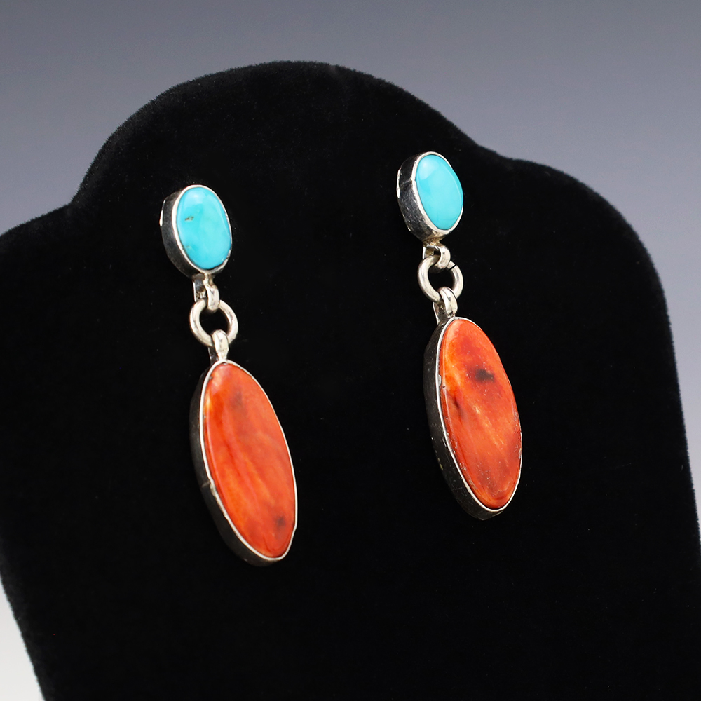 NATIVE AMERICAN ZUNI TURQUOISE EARRINGS BY NANCY & SHELDON WESTIKA