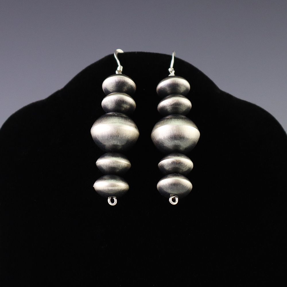 Beautiful bead earrings hand made out of sterling silver. Hand made by Navajo silversmith Tonisha Haley. These fabulous earrings will become a versatile accessory in your jewelry collection. Weighs 12 grams. Signed