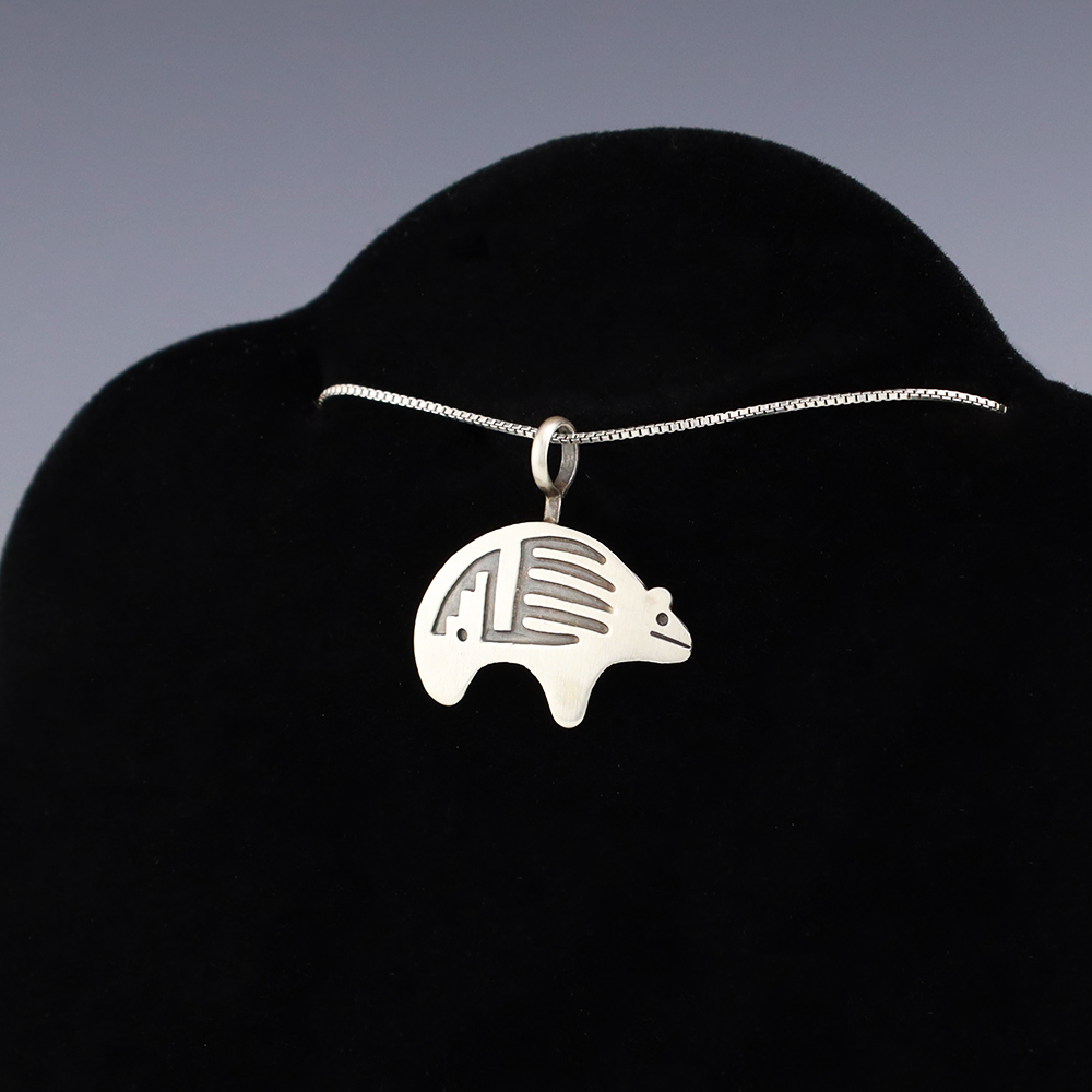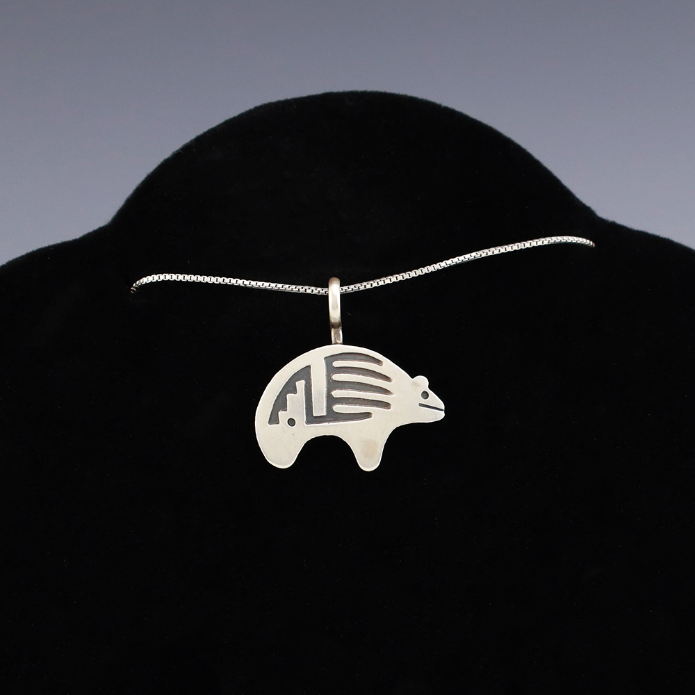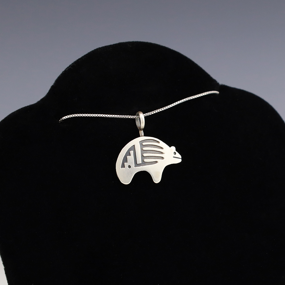 Navajo silversmith Robert Gene created this marvelous pendant through the overlay technique. (Chain not included) Weighs 2 grams. Signed