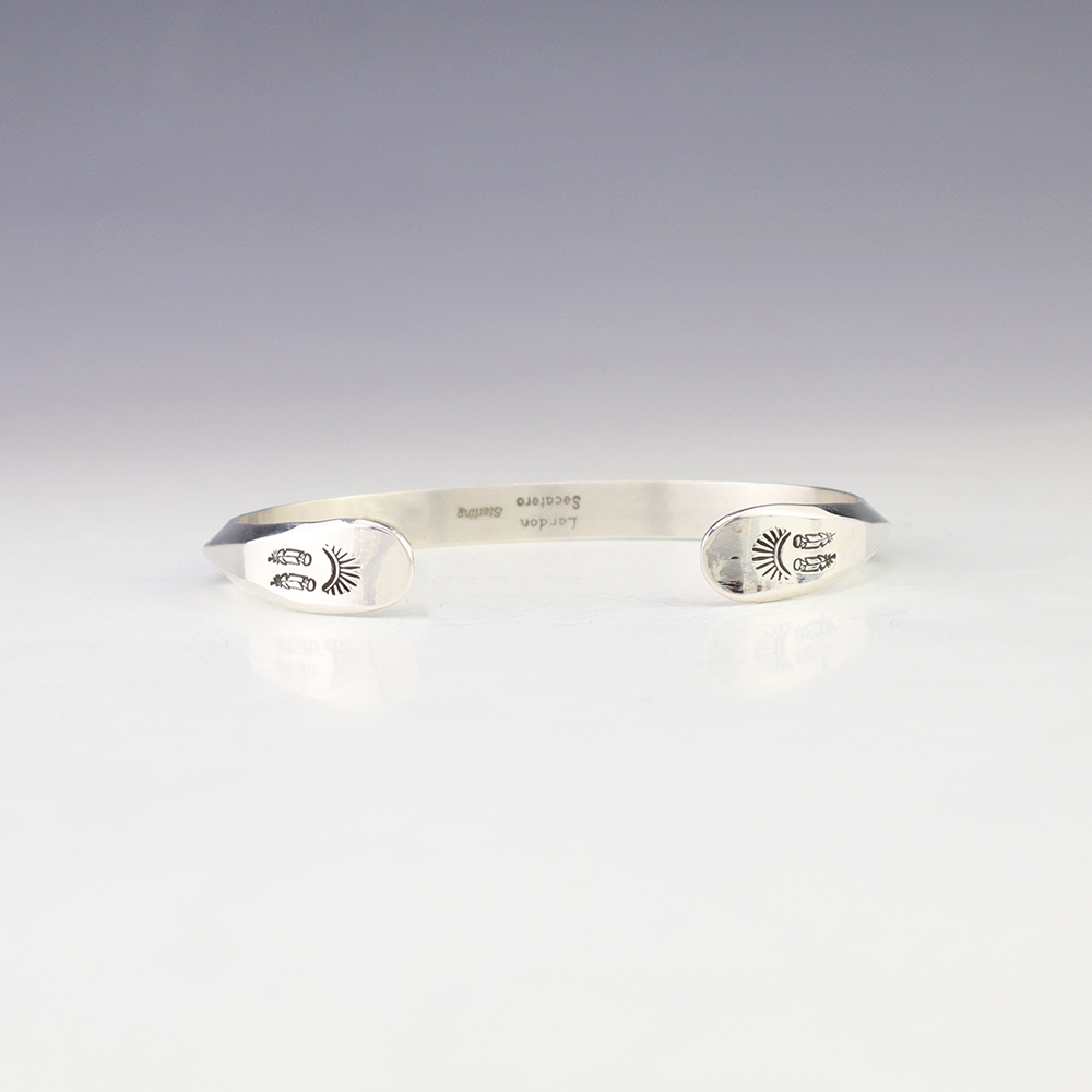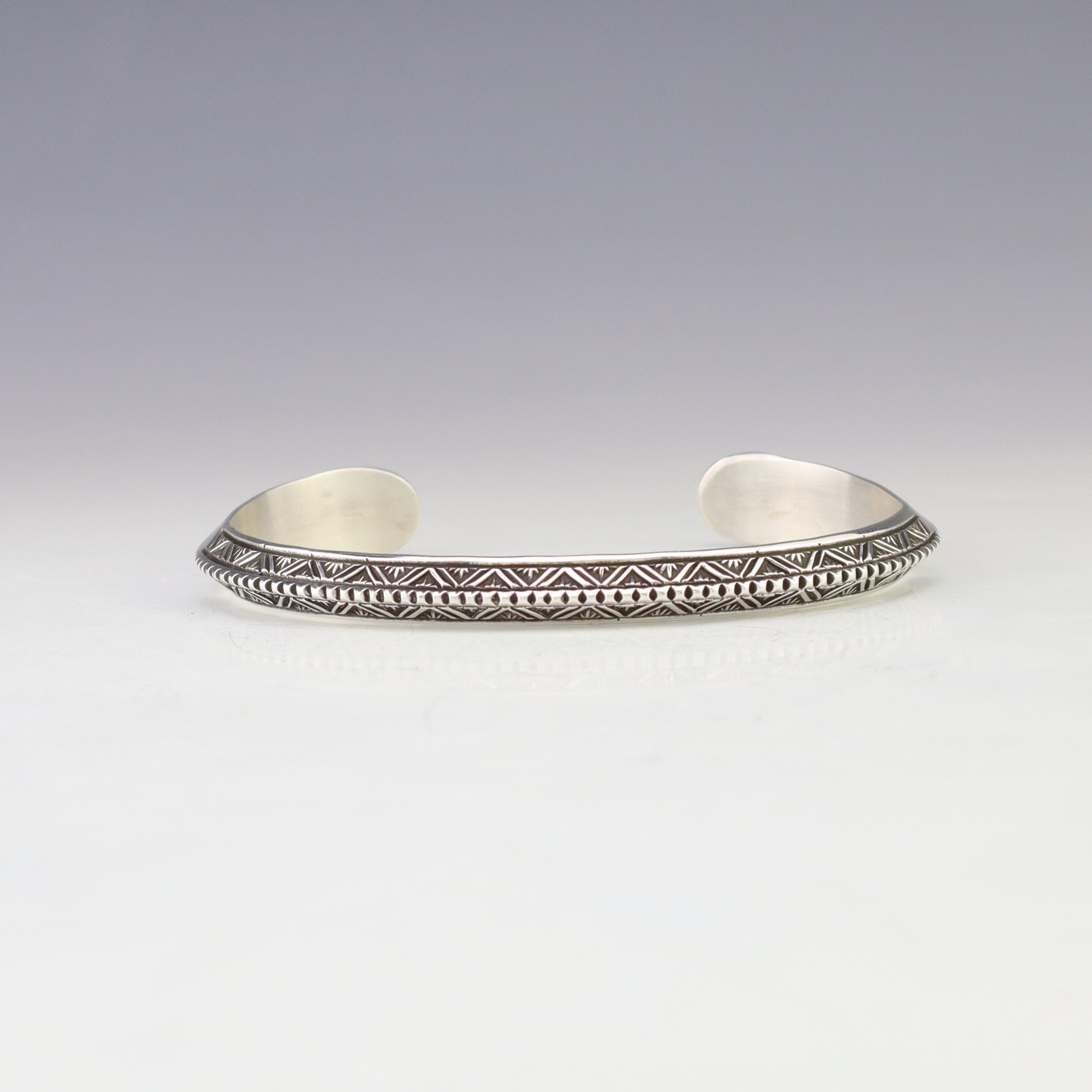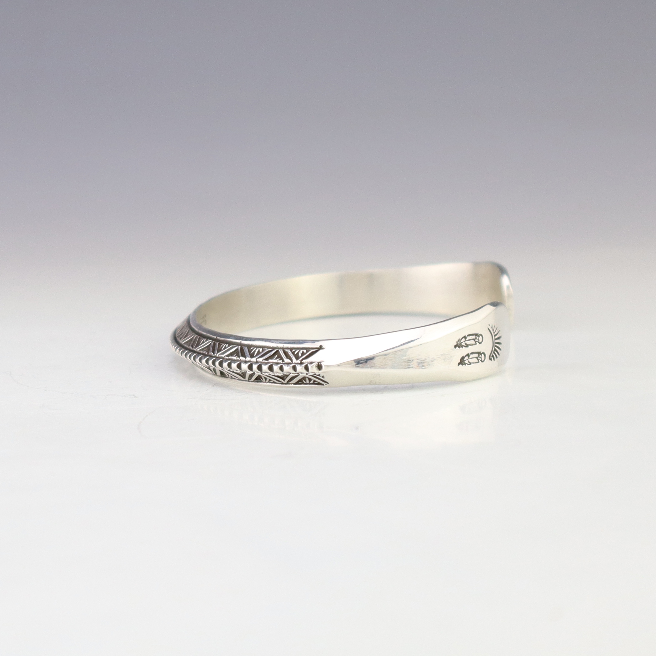 The Navajos began working with silver in the 19th century, and began making things like buckles, bridles, buttons, rings, canteens, hollow beads, earrings, crescent-shaped pendants (called “najas”), bracelets, crosses, powder chargers, tobacco canteens, and conchos (for belts). Their silversmithing skills has evolved and changed throughout the years, and in about 1880 Navajo silversmiths started to set turquoise in their silver work. Traditionally, Navajo artists worked with jewelry techniques like repousee and stamp work, but today they explored in other Native American jewelry making techniques like Zuni inlay work and Hopi overlay work