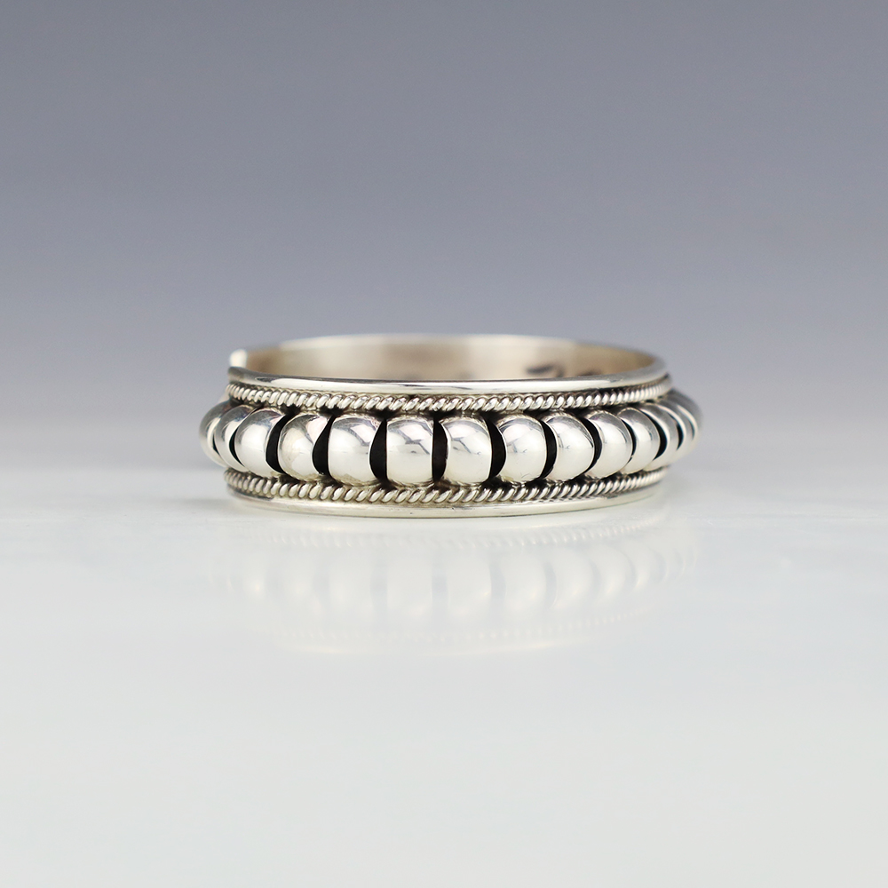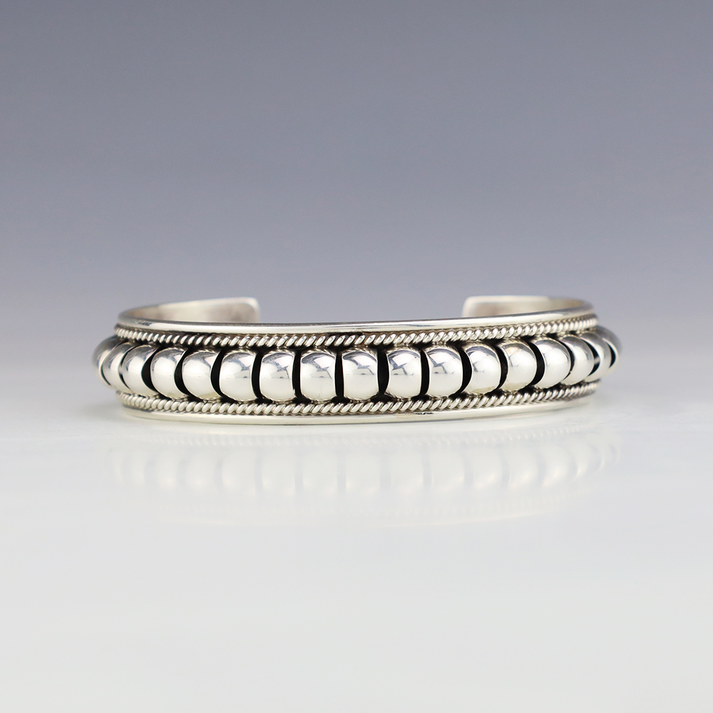 The Navajos began working with silver in the 19th century, and began making things like buckles, bridles, buttons, rings, canteens, hollow beads, earrings, crescent-shaped pendants (called “najas”), bracelets, crosses, powder chargers, tobacco canteens, and conchos (for belts). Their silversmithing skills has evolved and changed throughout the years, and in about 1880 Navajo silversmiths started to set turquoise in their silver work. Traditionally, Navajo artists worked with jewelry techniques like repousee and stamp work, but today they explored in other Native American jewelry making techniques like Zuni inlay work and Hopi overlay work