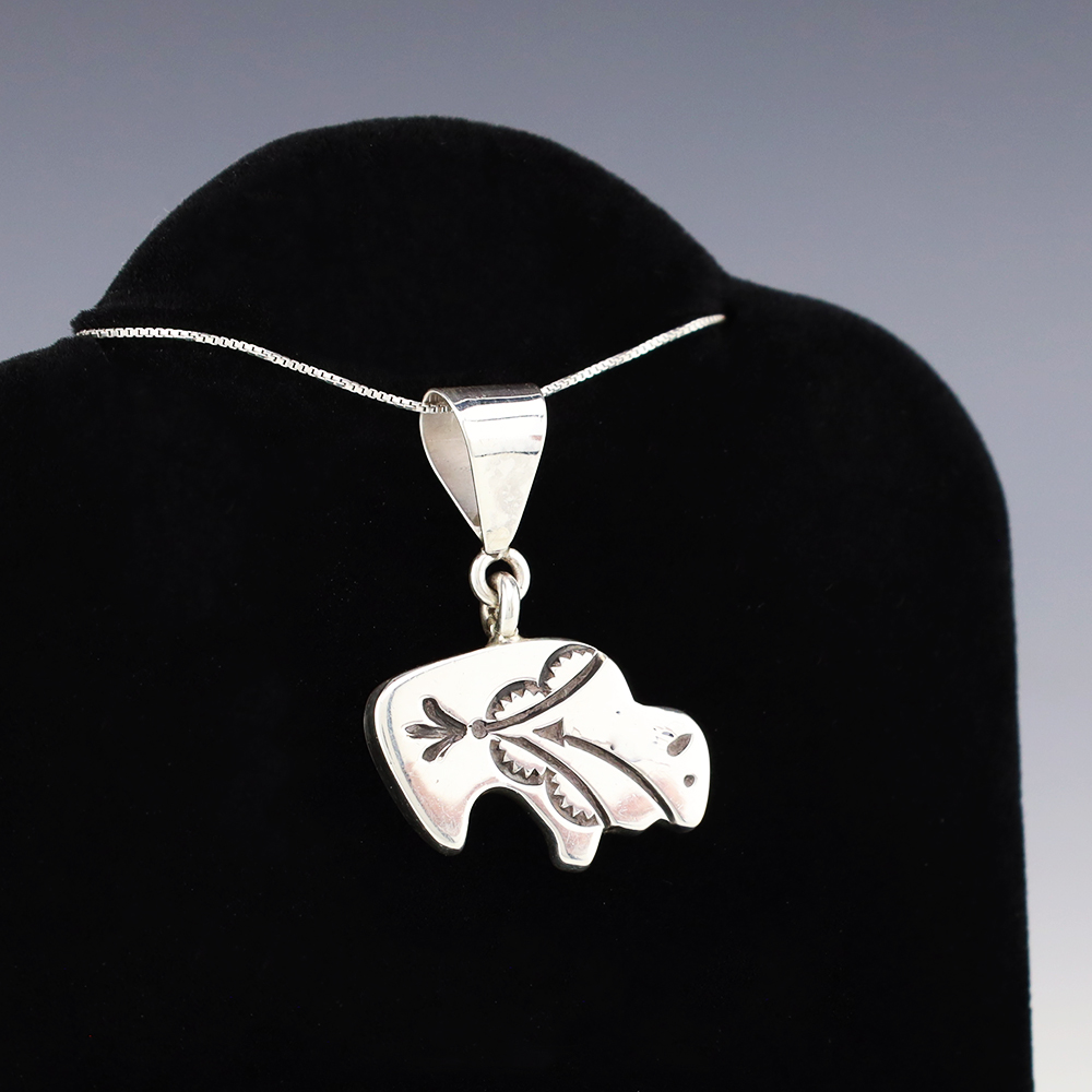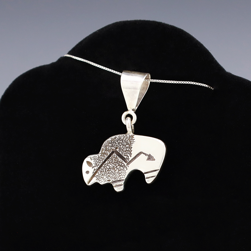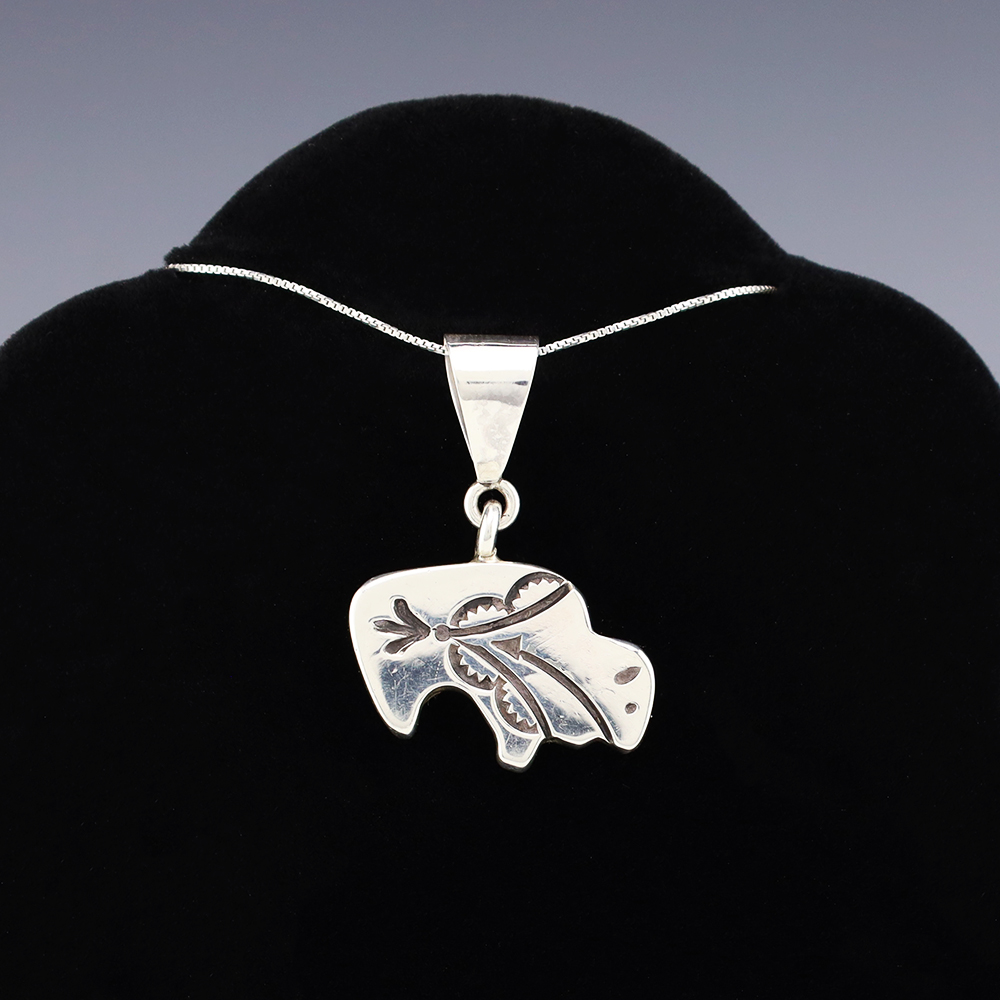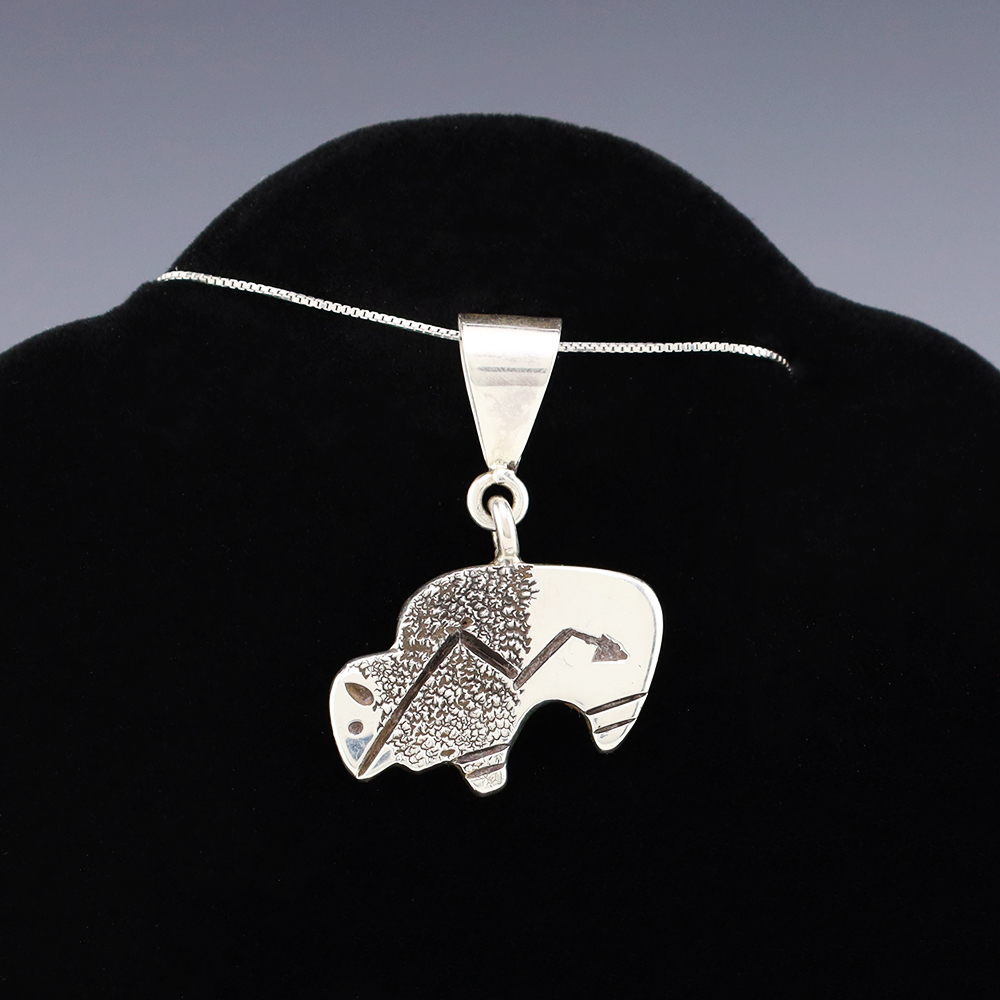 Stellar Buffalo pendant made out of sterling silver by Norman Woody. (Chain not included) A timeless beauty that you will enjoy for years to come. Weighs 12 grams. Signed