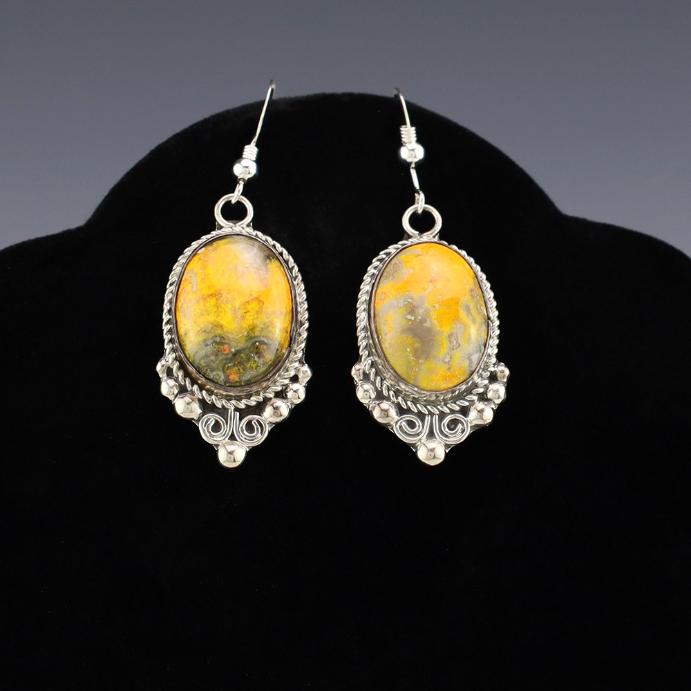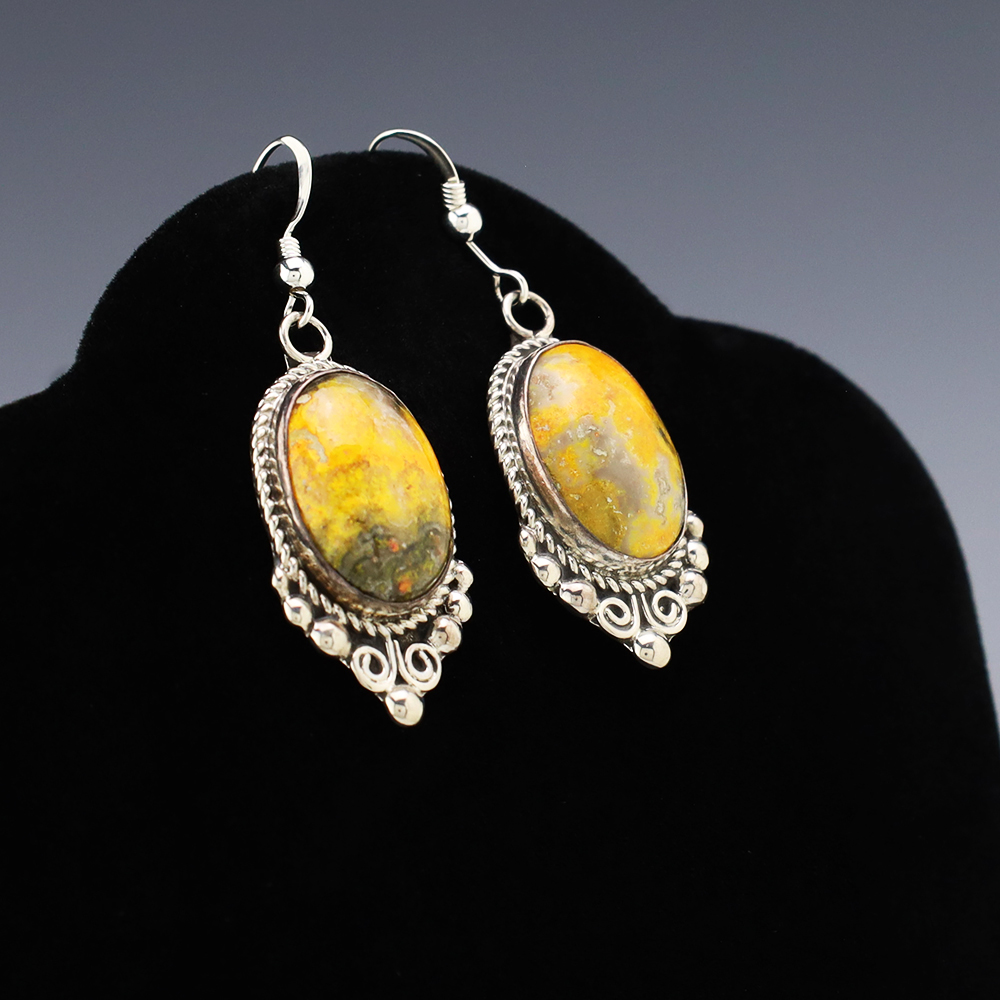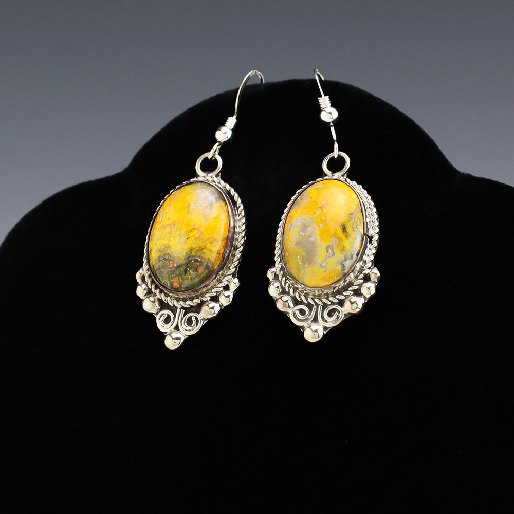 Beautiful earrings hand made out of sterling silver and Bumblebee Jasper. These wonderful earrings will become a versatile accessory in your jewelry collection. Weighs 10 grams. Signed