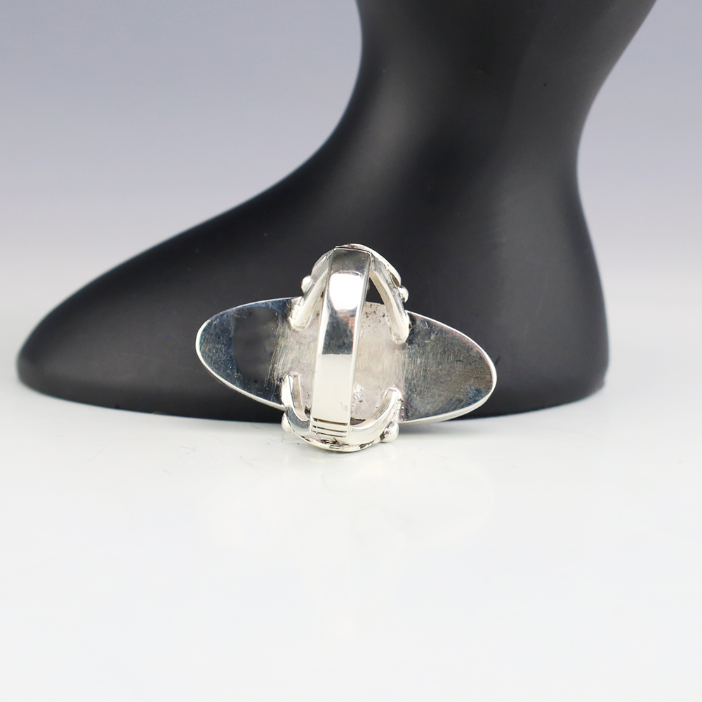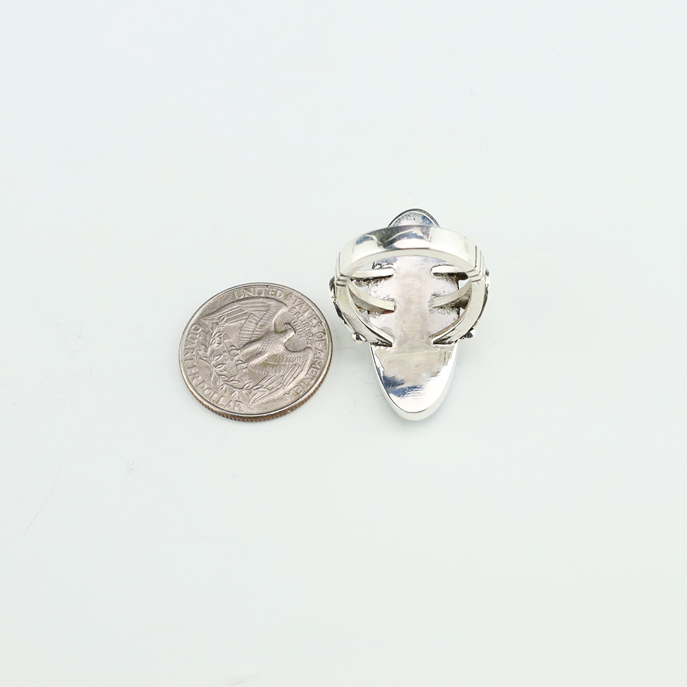 Amazing inlay work! Zuni jewelry makers, Nancy and Sheldon Westika made this stunning ring. Made out of sterling silver and inlaid with Kingman Turquoise and Jet. Zuni artists are known for their lapidary work. The Westikas have been making jewelry since the 1970’s and they are known for their fine...