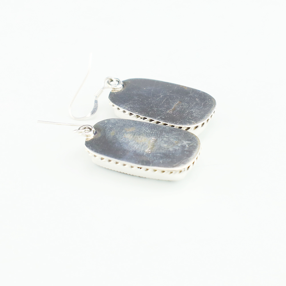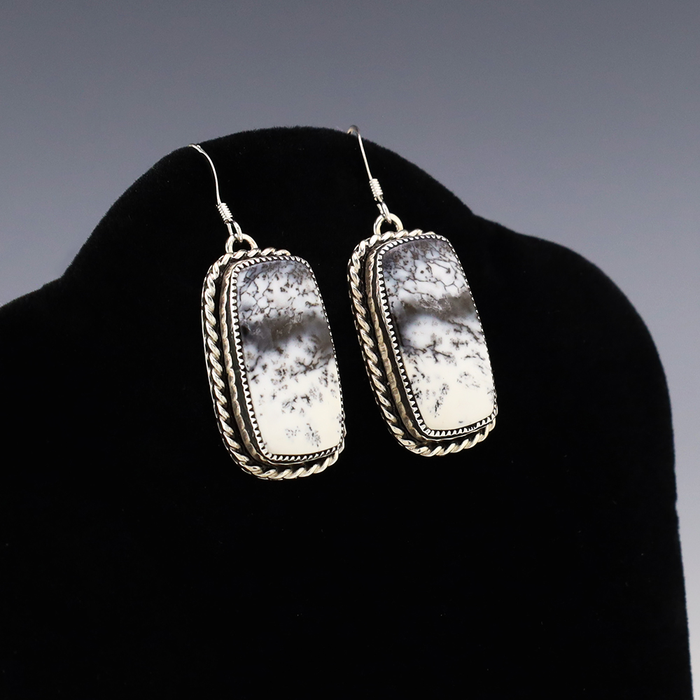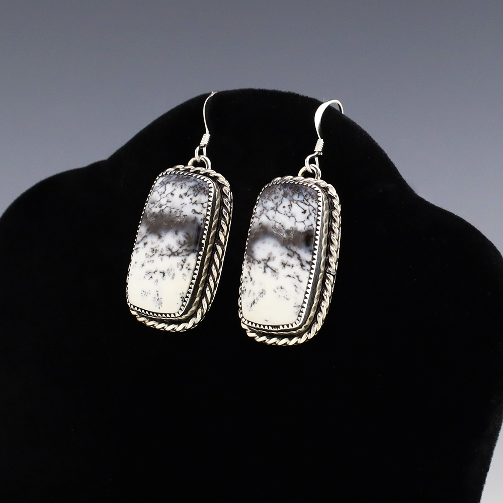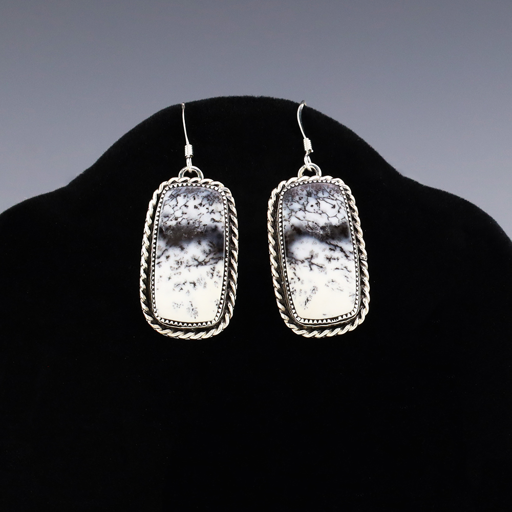 Beautiful earrings hand made out of sterling silver and Dendritic Opal. These wonderful earrings will become a versatile accessory in your jewelry collection. Weighs 12 grams.