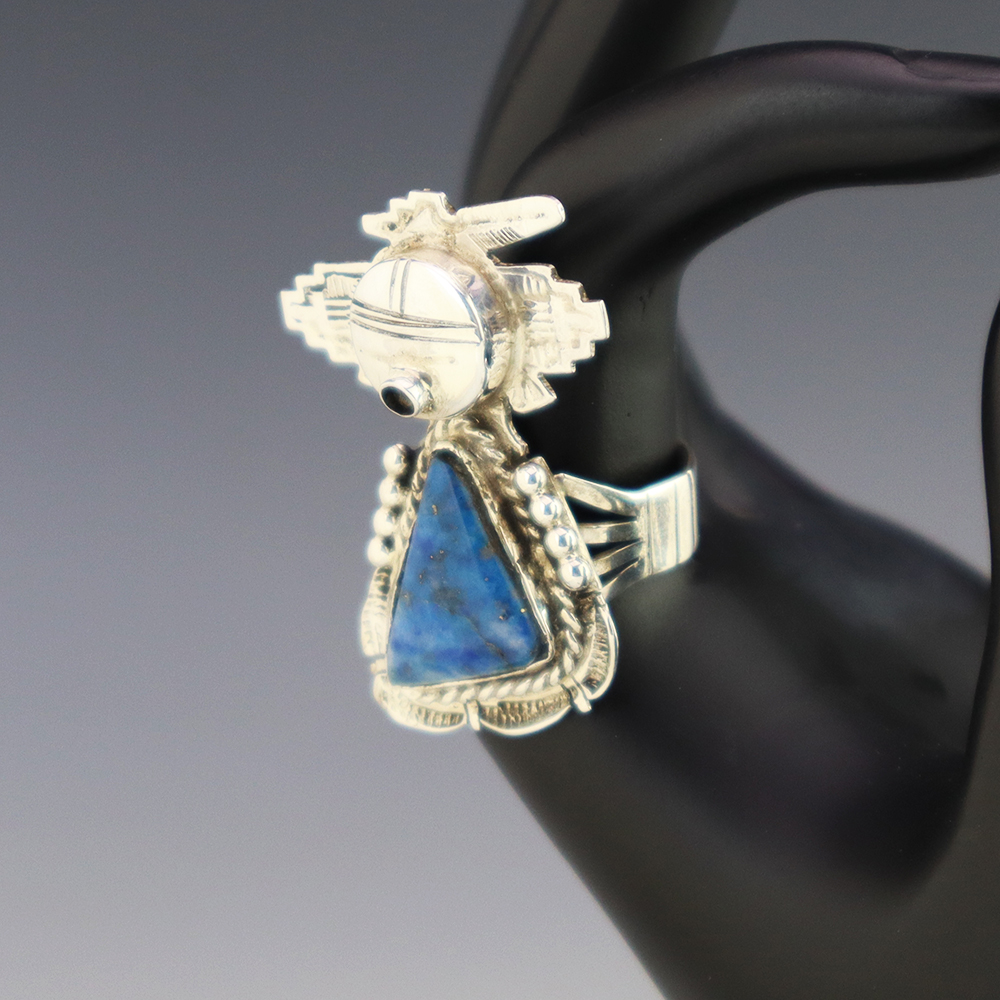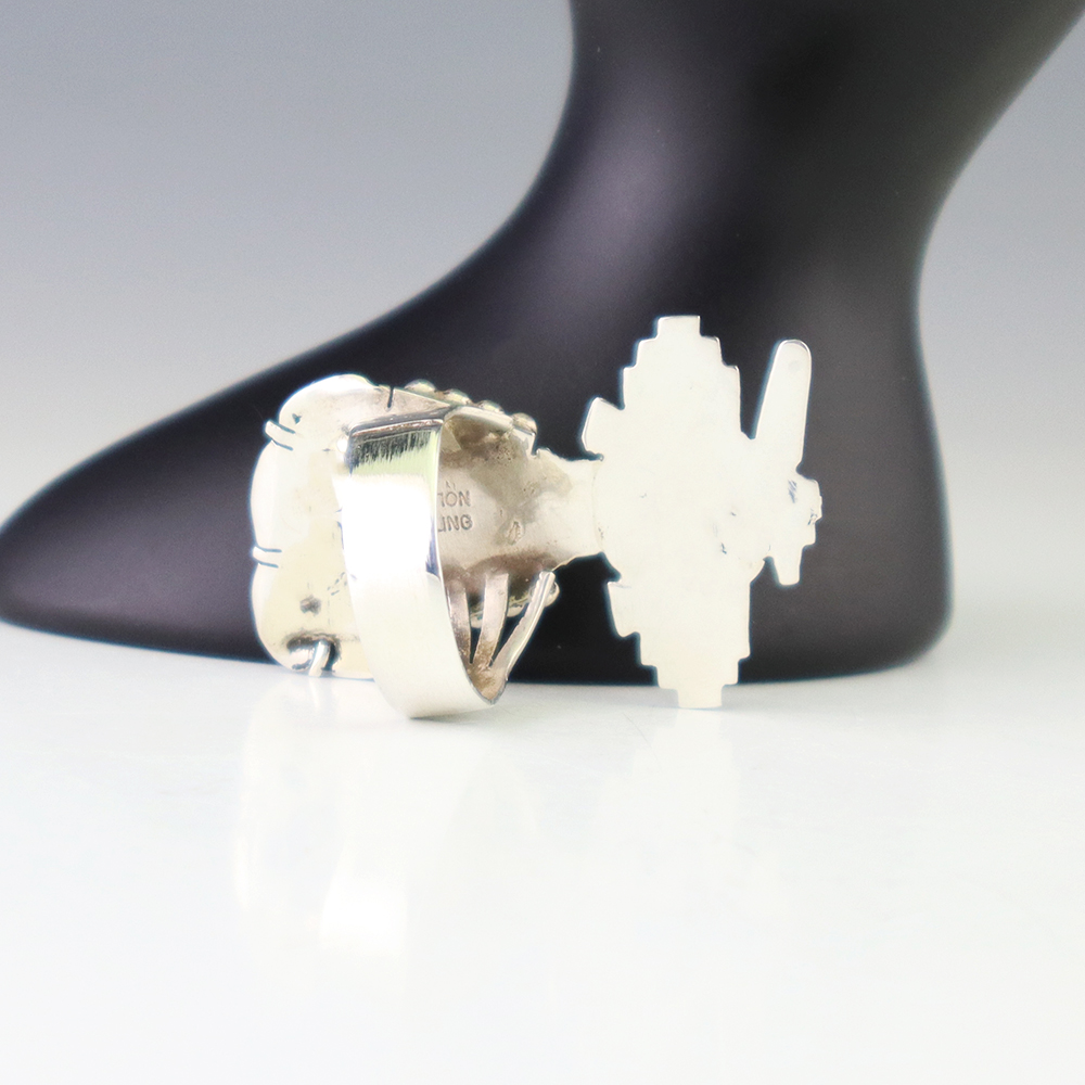 Zuni jewelry makers, Nancy and Sheldon Westika hand crafted this magnificent ring. Made out of sterling silver and inlaid with Kingman Turquoise and Jet. Zuni artists are known for their lapidary work. The Westikas have been making jewelry since the 1970’s and they are known for their fine inlay work. ...