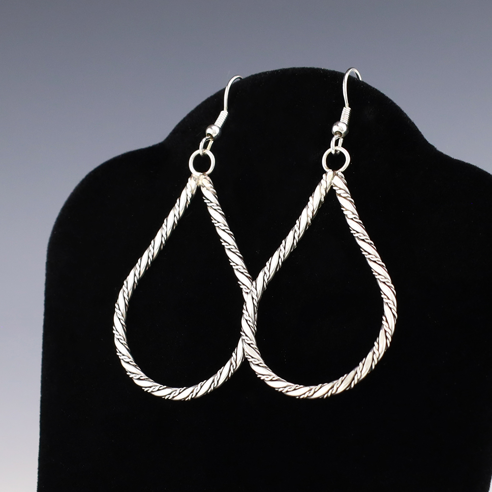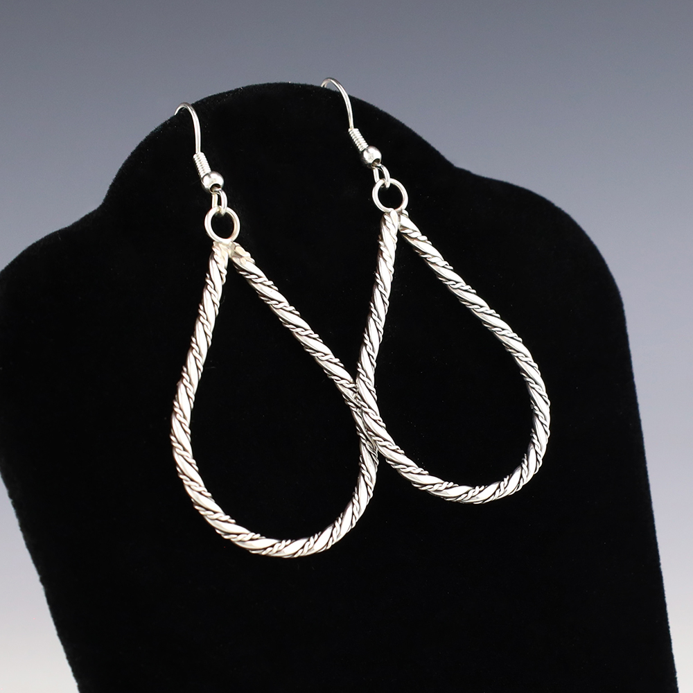 Lovely earrings hand made out of sterling silver. Hand made by Navajo silversmith Caroline Tsosie. These fabulous earrings will become a versatile accessory in your jewelry collection. Weighs 6 grams.