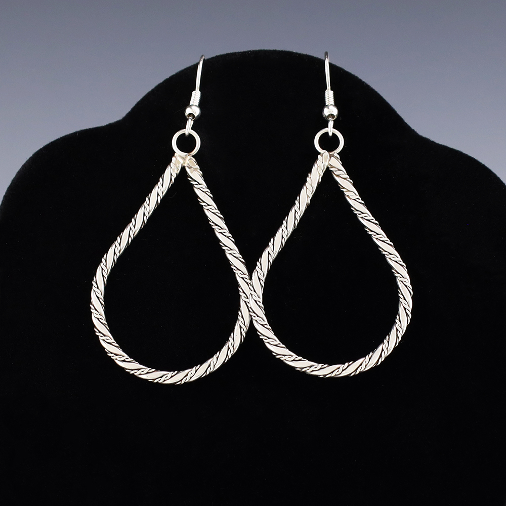 Lovely earrings hand made out of sterling silver. Hand made by Navajo silversmith Caroline Tsosie. These fabulous earrings will become a versatile accessory in your jewelry collection. Weighs 6 grams.
