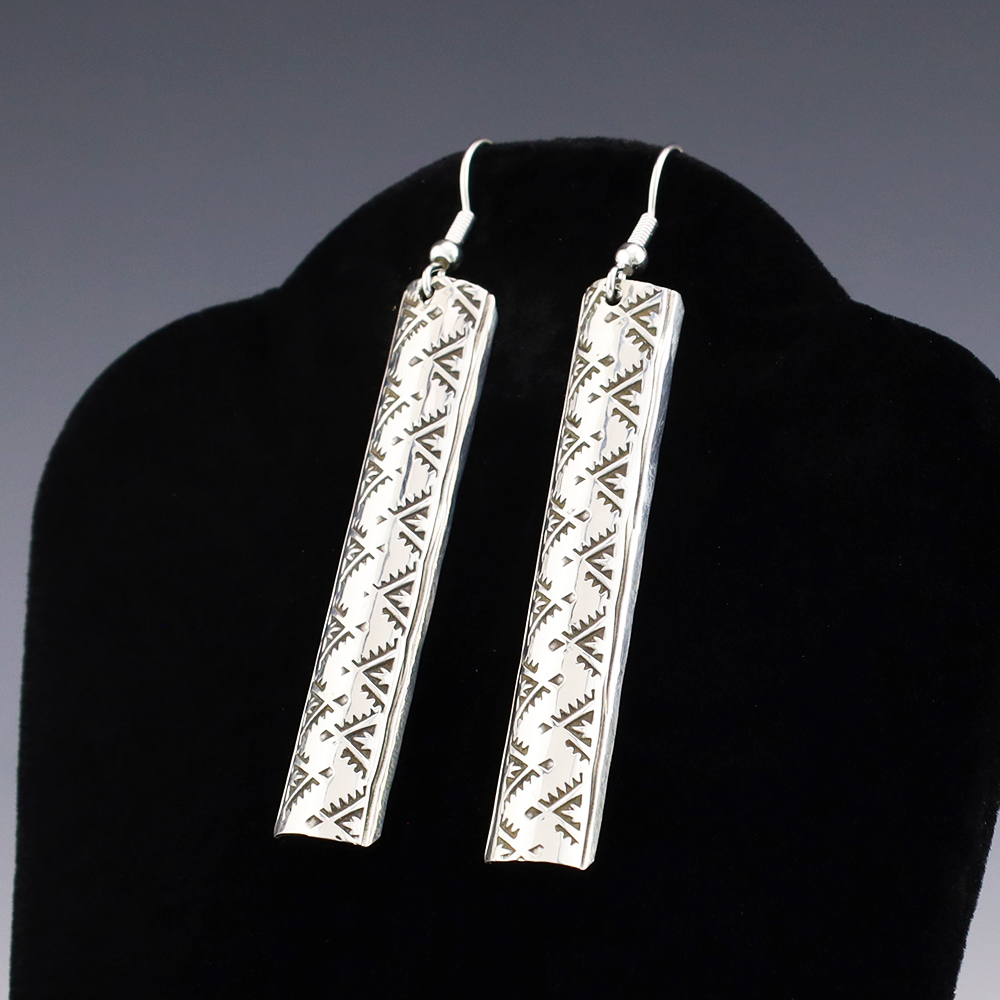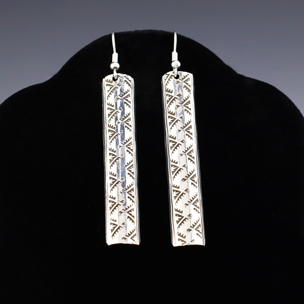 Beautiful earrings hand made out of sterling silver. Hand made by Navajo silversmith Nova Ashley. These fabulous earrings will become a versatile accessory in your jewelry collection. Weighs 6 grams. Signed