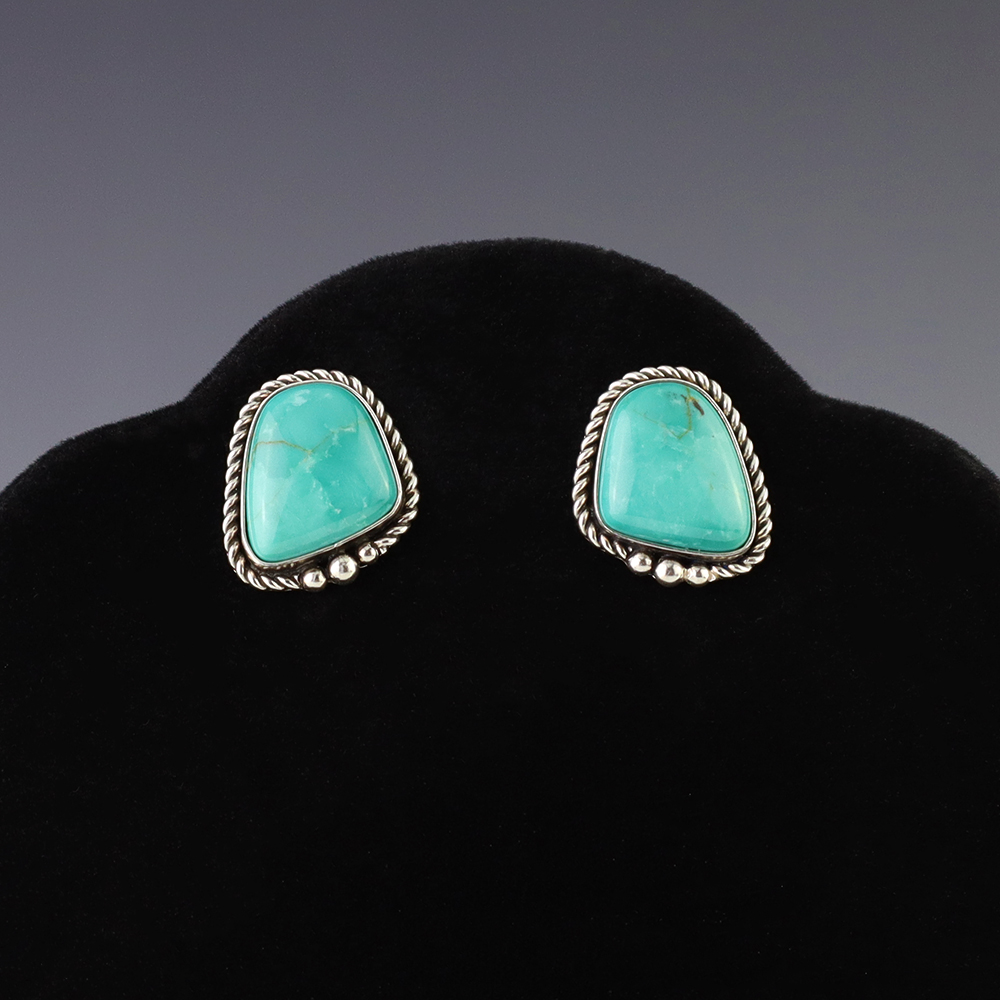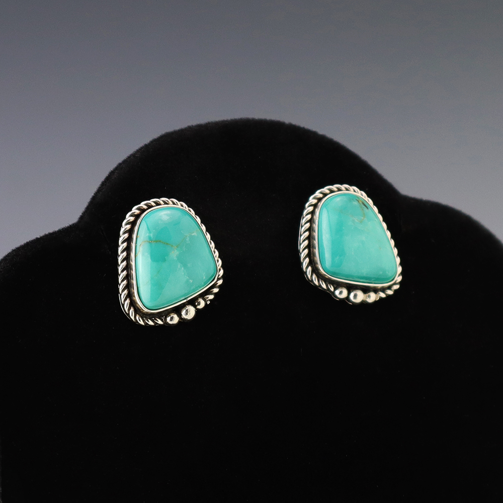 TURQUOISE & HENNA LIMESTONE EARRINGS BY NANCY AND SHELDON WESTIKA ZUNI