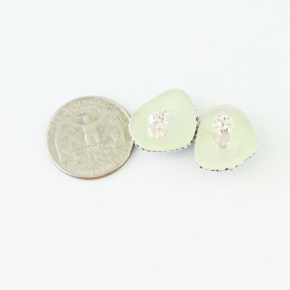 Zuni jewelry makers, Nancy and Sheldon Westika created these stunning earrings. Made out of sterling silver and inlaid with Henna Limestone and Turquoise. Zuni artists are known for their lapidary work. The Westikas have been making jewelry since the 1970’s and they are known for their fine inlay work. Weighs...
