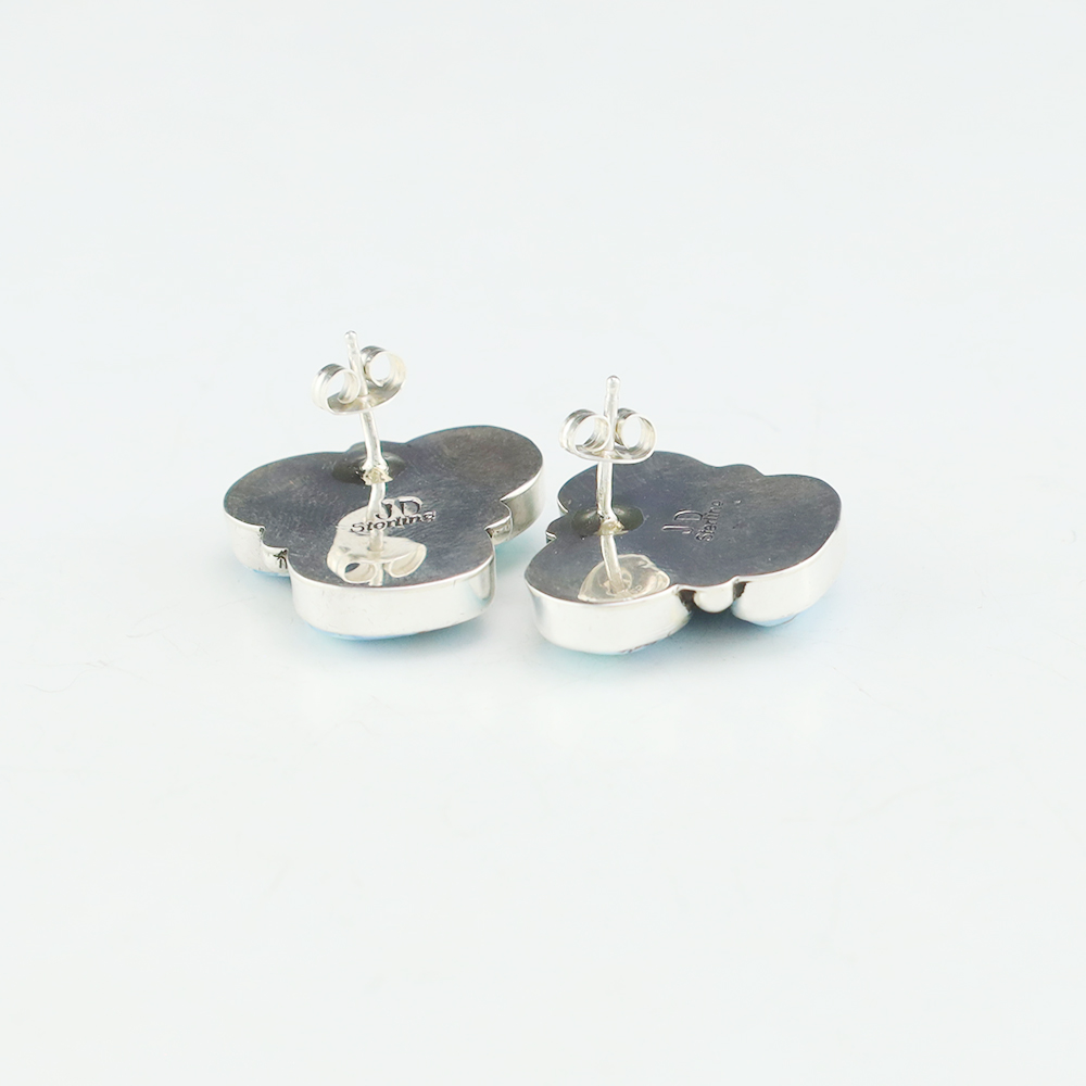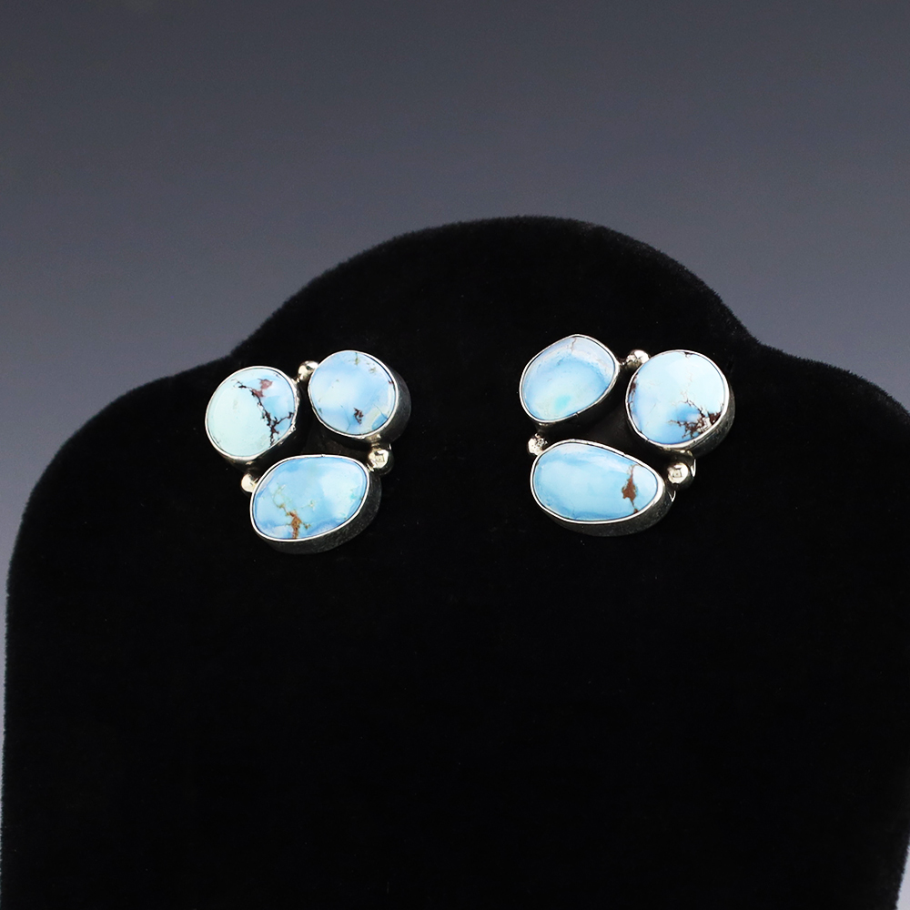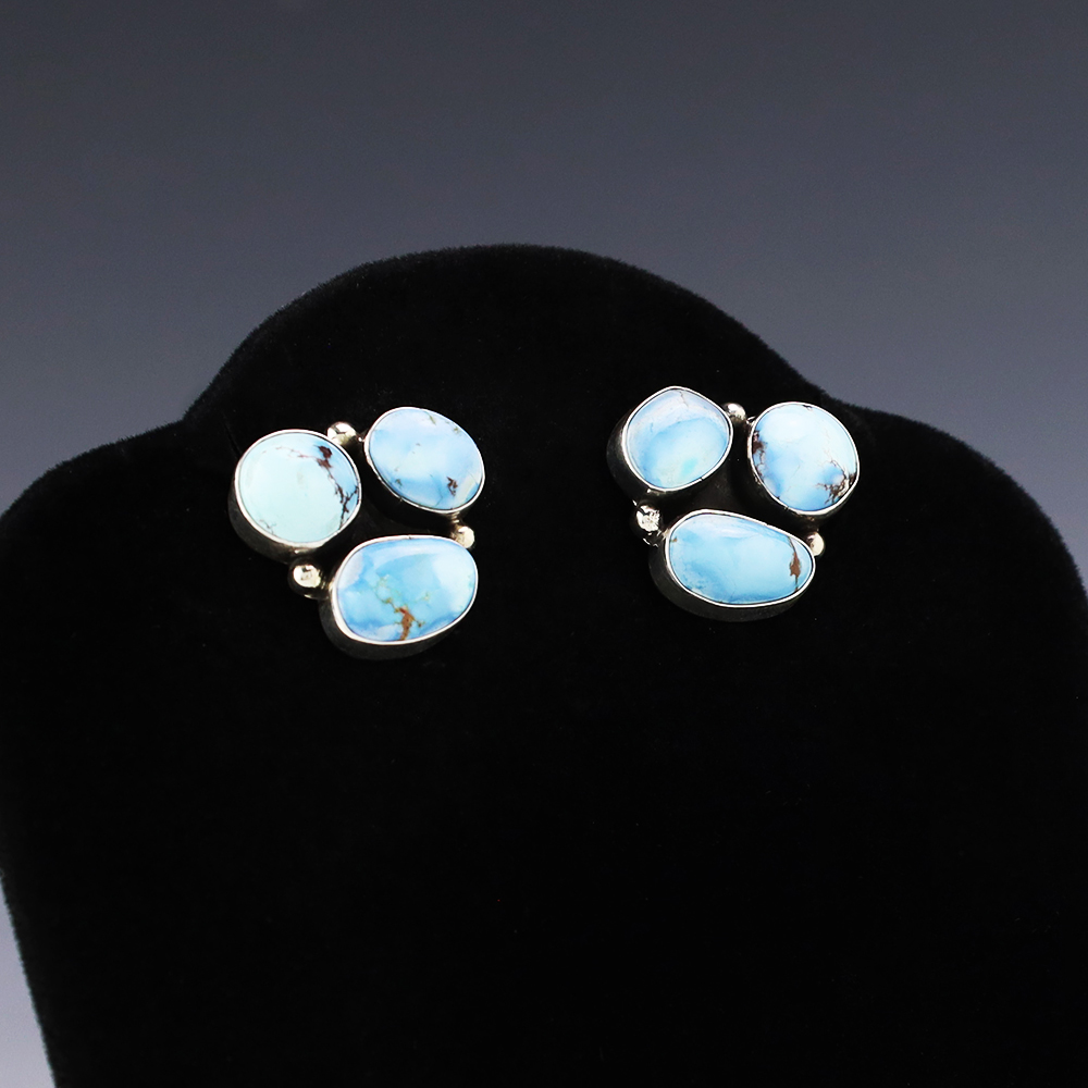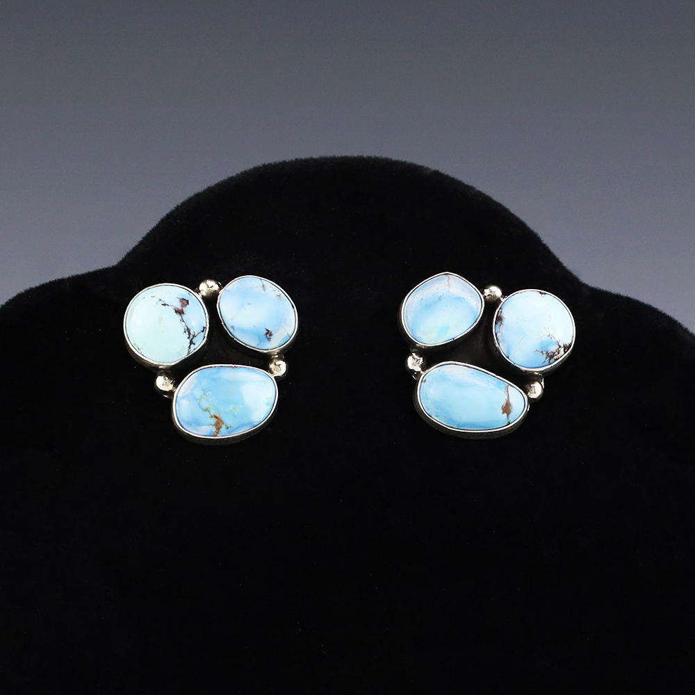 Gorgeous earrings hand made out of sterling silver and Golden Hills Turquoise. Hand made by Navajo silversmith Jones Delgarito. These fabulous earrings will become a versatile accessory in your jewelry collection. Weighs 8 grams. Signed.