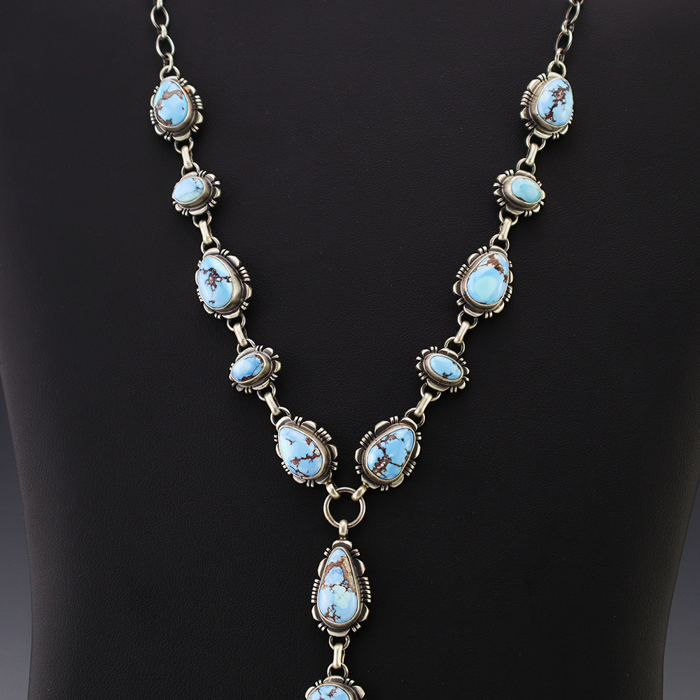 The Navajos began working with silver in the 19th century, and began making things like buckles, bridles, buttons, rings, canteens, hollow beads, earrings, crescent-shaped pendants (called “najas”), bracelets, crosses, powder chargers, tobacco canteens, and conchos (for belts). Their silversmithing skills has evolved and changed throughout the years, and in about 1880 Navajo silversmiths started to set turquoise in their silver work. Traditionally, Navajo artists worked with jewelry techniques like repousee and stamp work, but today they explored in other Native American jewelry making techniques like Zuni inlay work and Hopi overlay work.