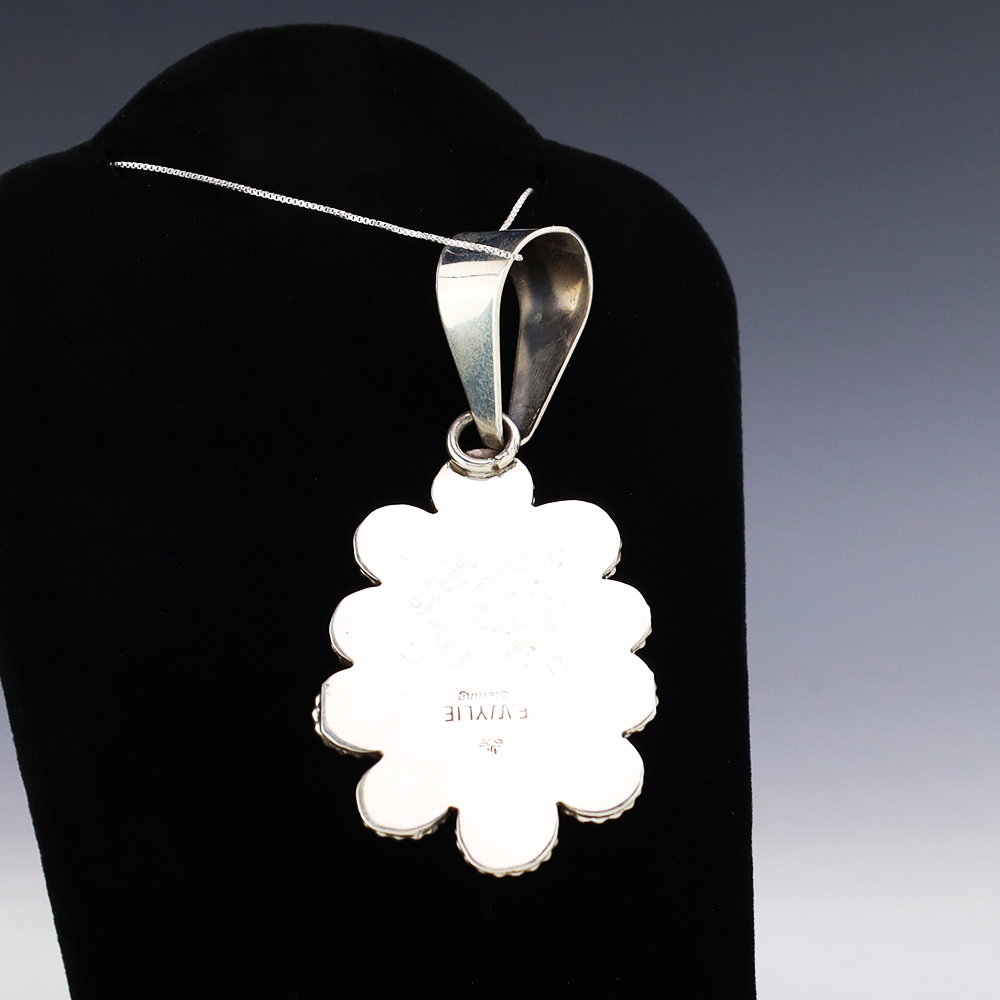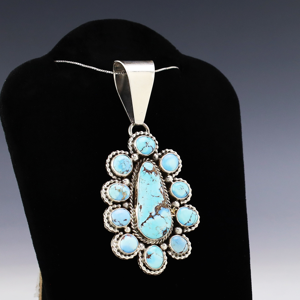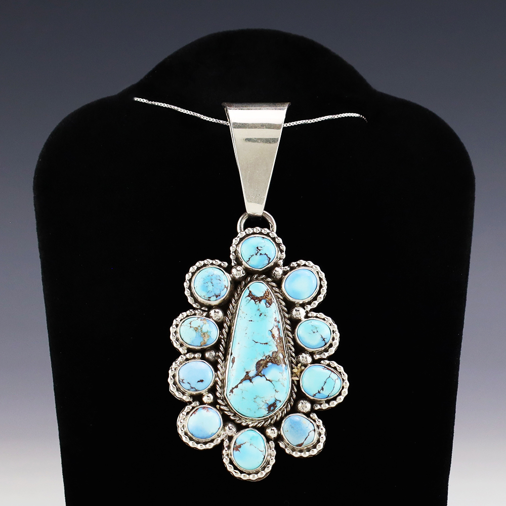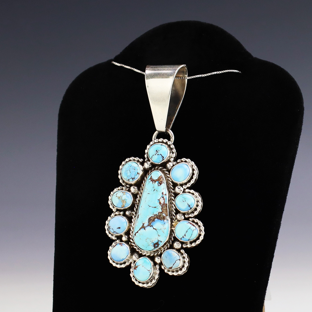Gorgeous pendant hand made out of sterling silver and Golden Hills Turquoise by Navajo artist Eula Wylie. A timeless beauty that you will enjoy for years to come. Weighs 26 grams. Signed (Chain not included)