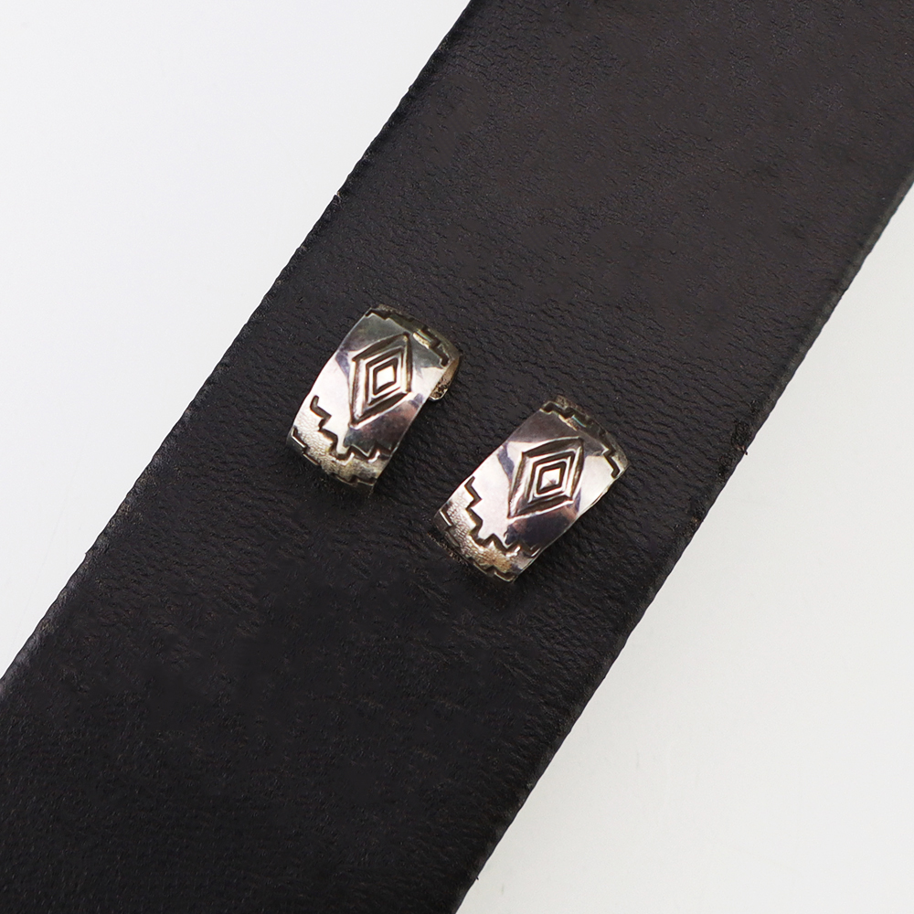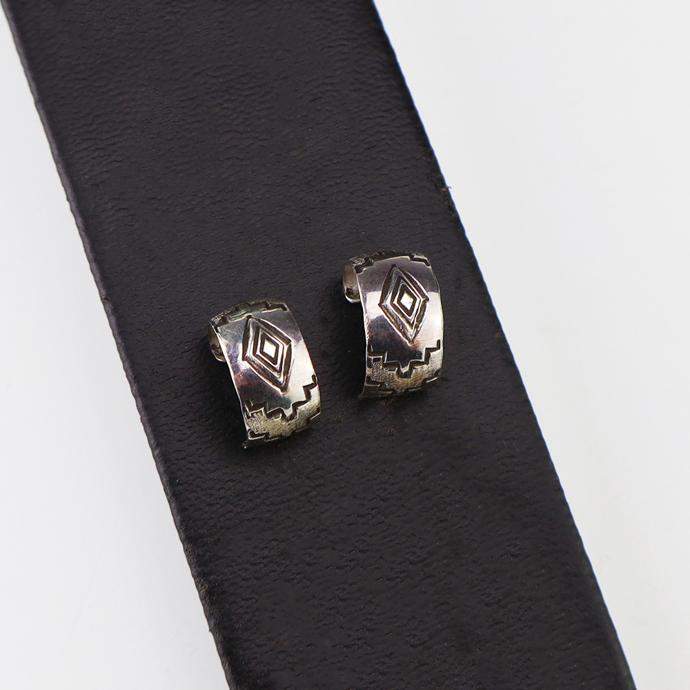 Striking cufflinks that will compliment any shirt. Handmade out of sterling silver with great stamp work. Weighs 8 grams. The cufflinks have nickle findings for durability. Signed 13/16” long x 9/16” wide The Navajos began working with silver in the 19th century, and began making things like buckles, bridles, buttons,...