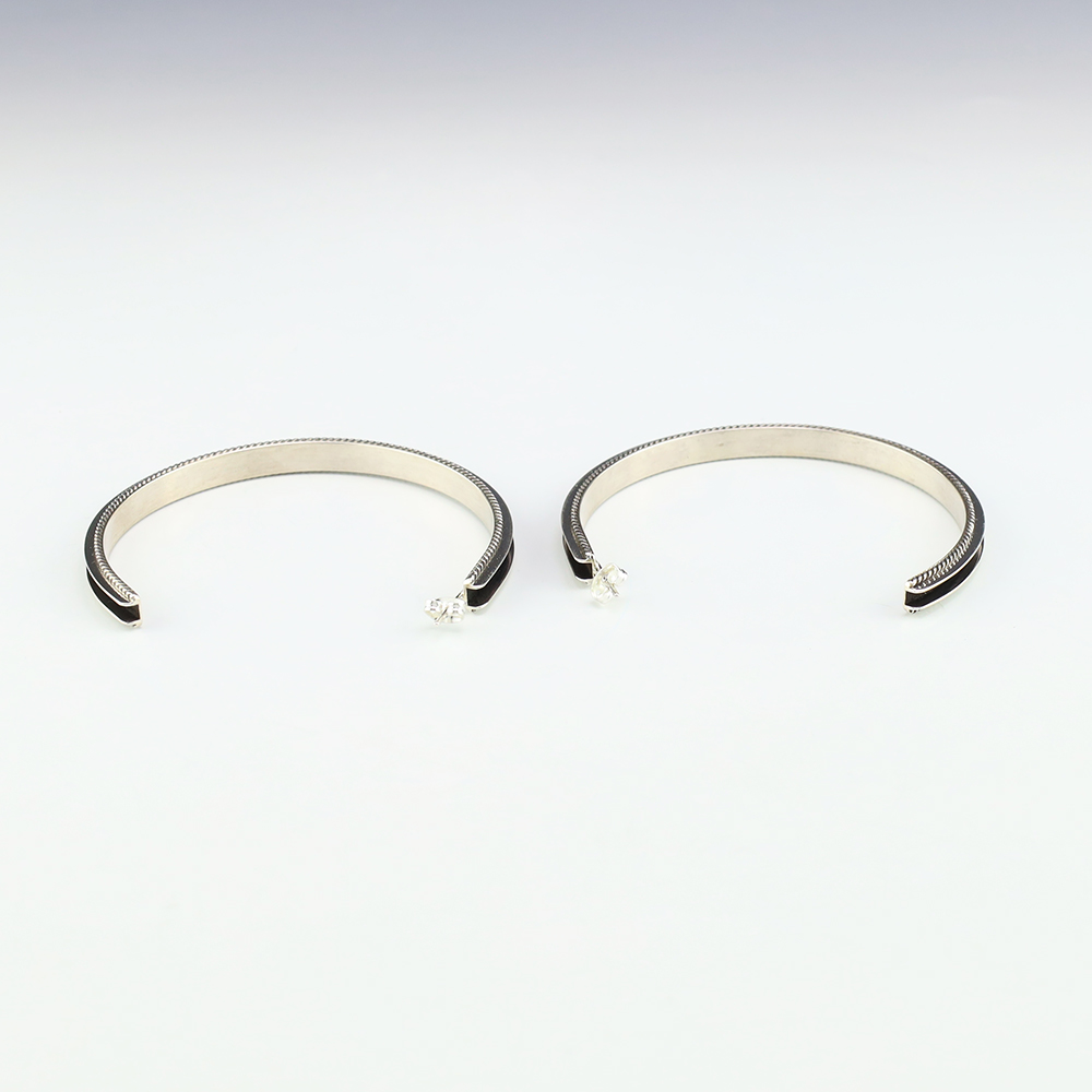 The Navajos began working with silver in the 19th century, and began making things like buckles, bridles, buttons, rings, canteens, hollow beads, earrings, crescent-shaped pendants (called “najas”), bracelets, crosses, powder chargers, tobacco canteens, and conchos (for belts). Their silversmithing skills has evolved and changed throughout the years, and in about 1880 Navajo silversmiths started to set turquoise in their silver work. Traditionally, Navajo artists worked with jewelry techniques like repousee and stamp work, but today they explored in other Native American jewelry making techniques like Zuni inlay work and Hopi overlay work.