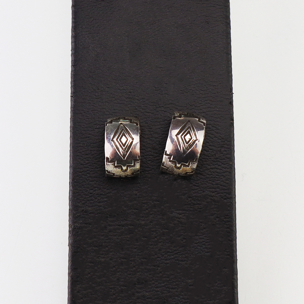 Striking cufflinks that will compliment any shirt. Handmade out of sterling silver with great stamp work. Weighs 8 grams. The cufflinks have nickle findings for durability. Signed 13/16” long x 9/16” wide The Navajos began working with silver in the 19th century, and began making things like buckles, bridles, buttons,...