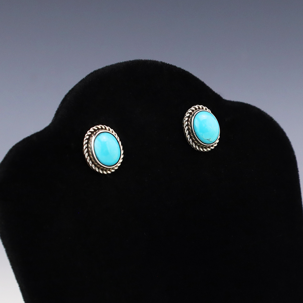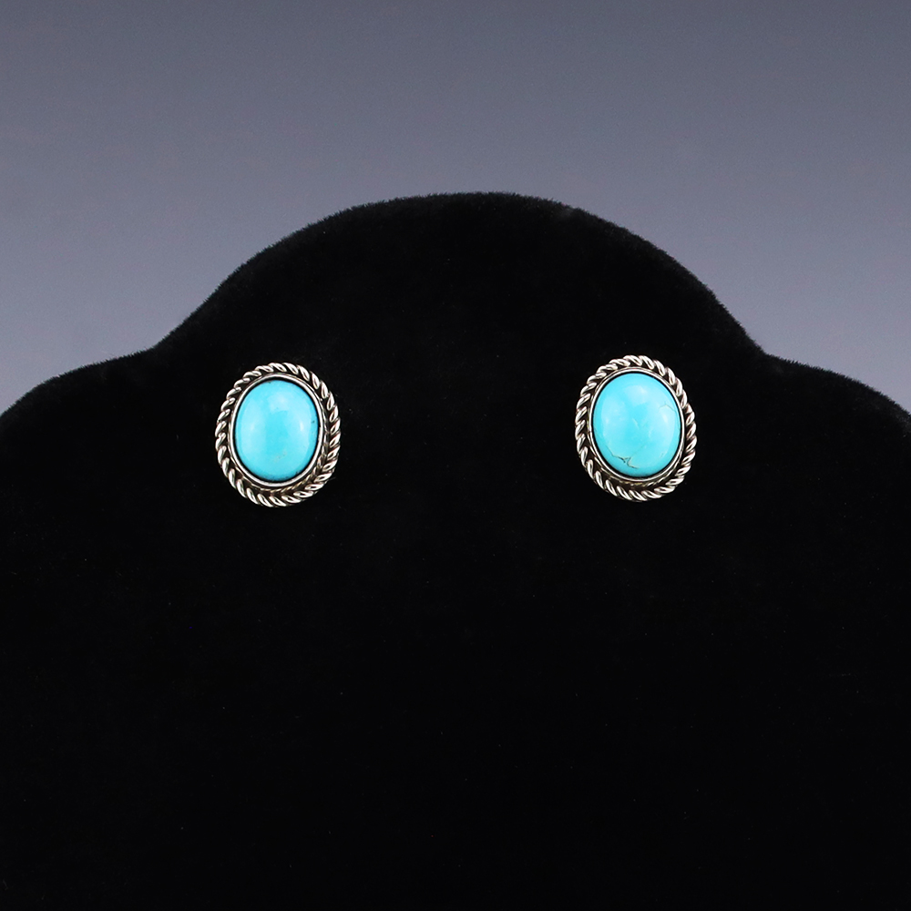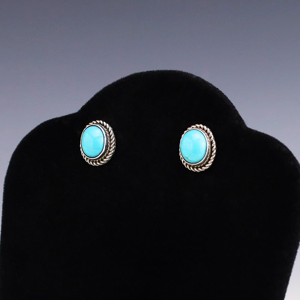 NAVAJO STERLING SILVER & TURQUOISE EARRINGS BY EVA & LINBERG BILLAH