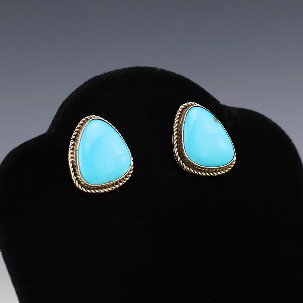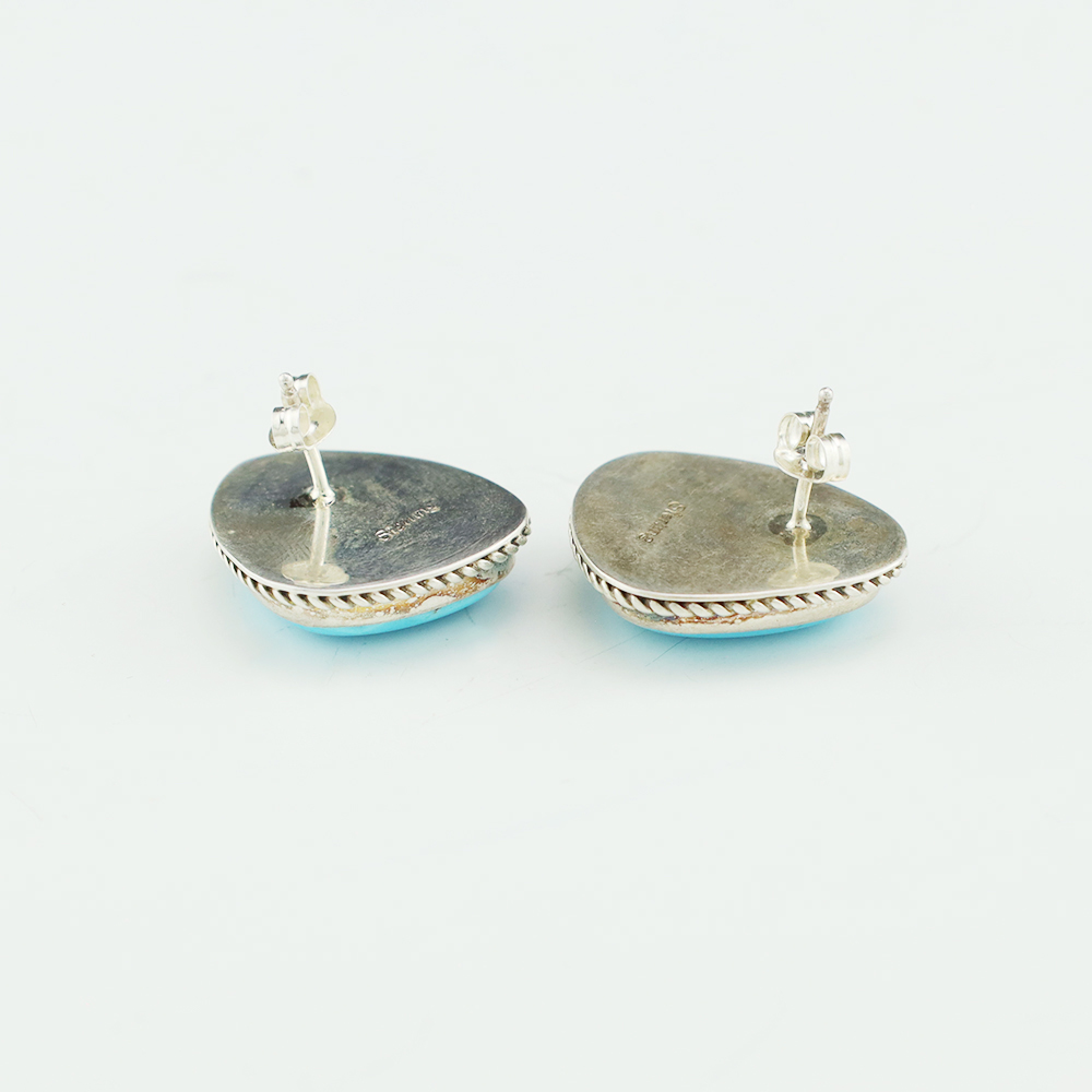 NAVAJO STERLING SILVER & TURQUOISE EARRINGS BY EVA & LINBERG BILLAH