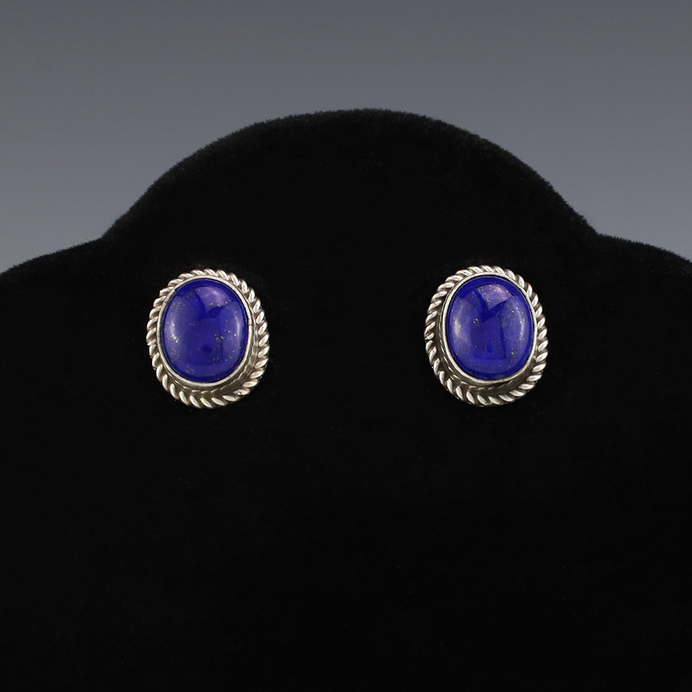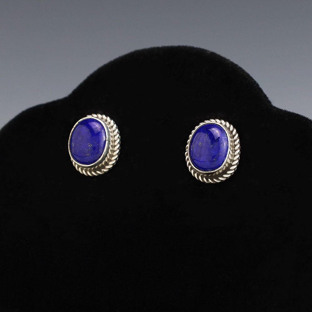 Beautiful earrings hand made out of sterling silver and Lapis by Navajo silversmith Priscilla Smith. These wonderful earrings will become a versatile accessory in your jewelry collection. Weighs 8 grams. Signed