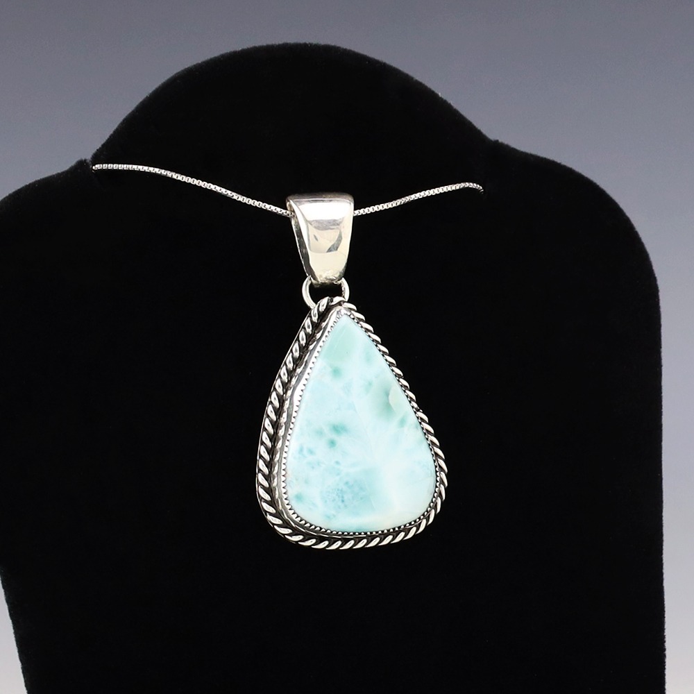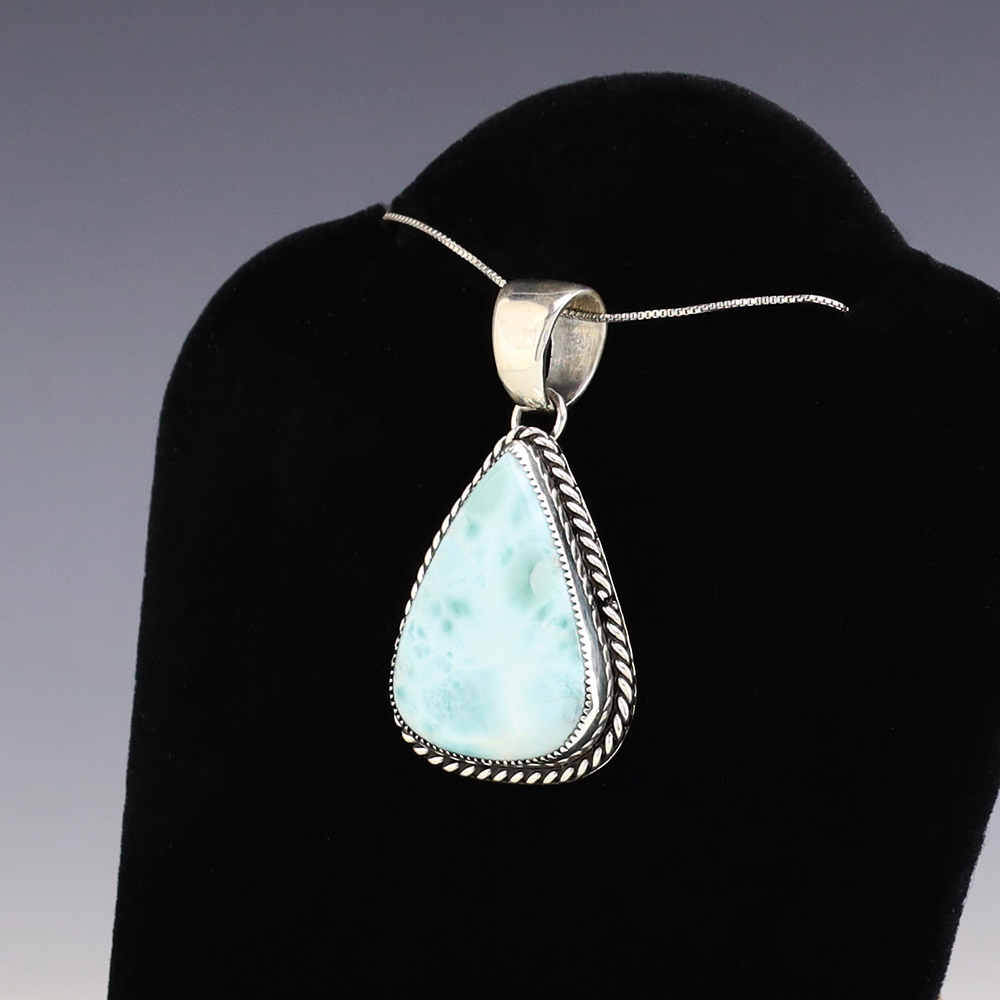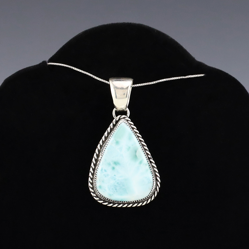 Lovely pendant made out of sterling silver and Larimar. A timeless beauty that you will enjoy for years to come. Weighs 12 grams. (Chain not included)