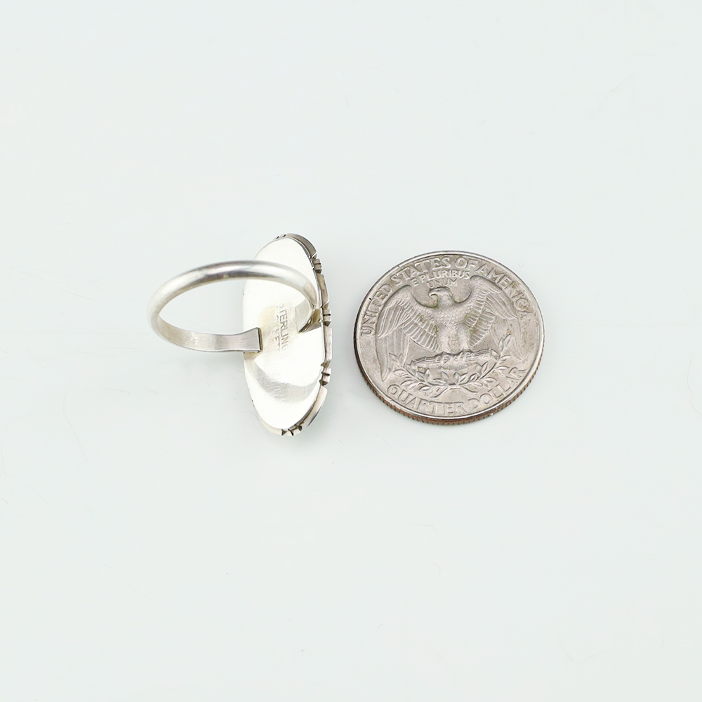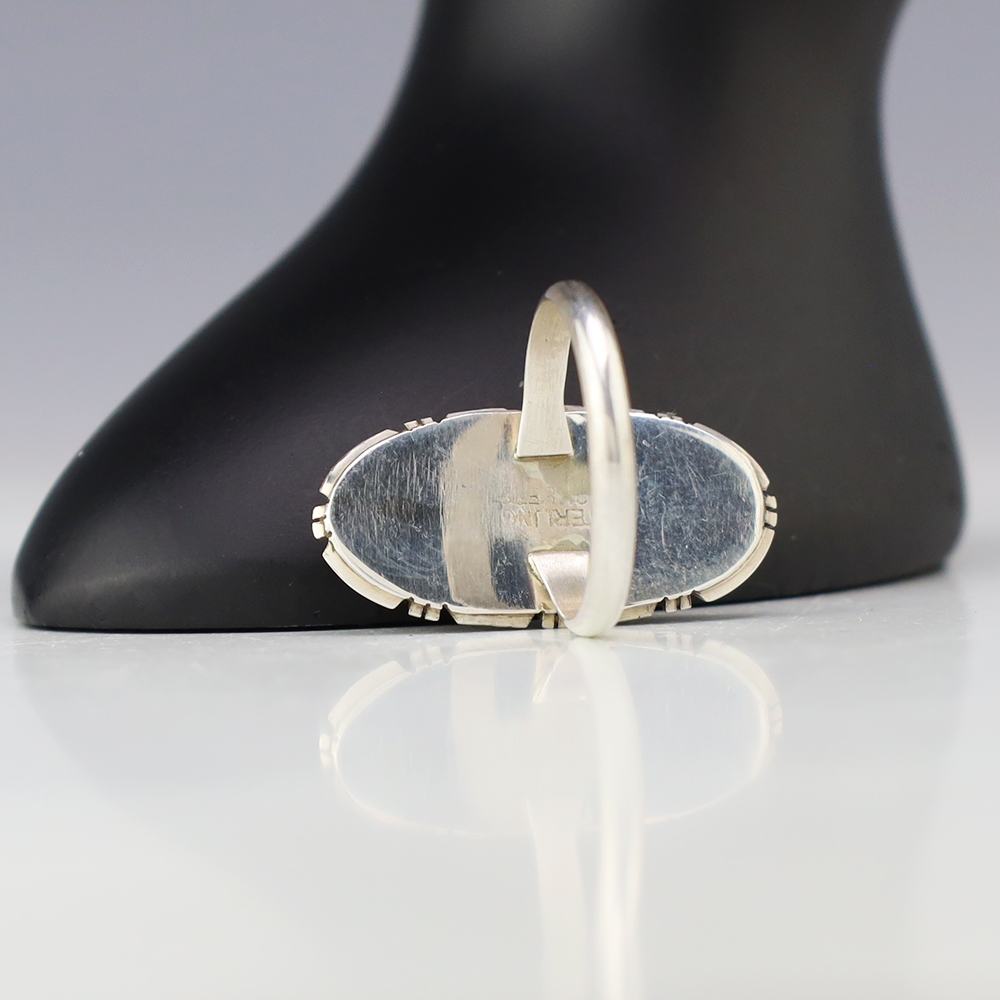 NATIVE AMERICAN TURQUOISE & JET RING BY NANCY & SHELDON WESTIKA 11 1/4