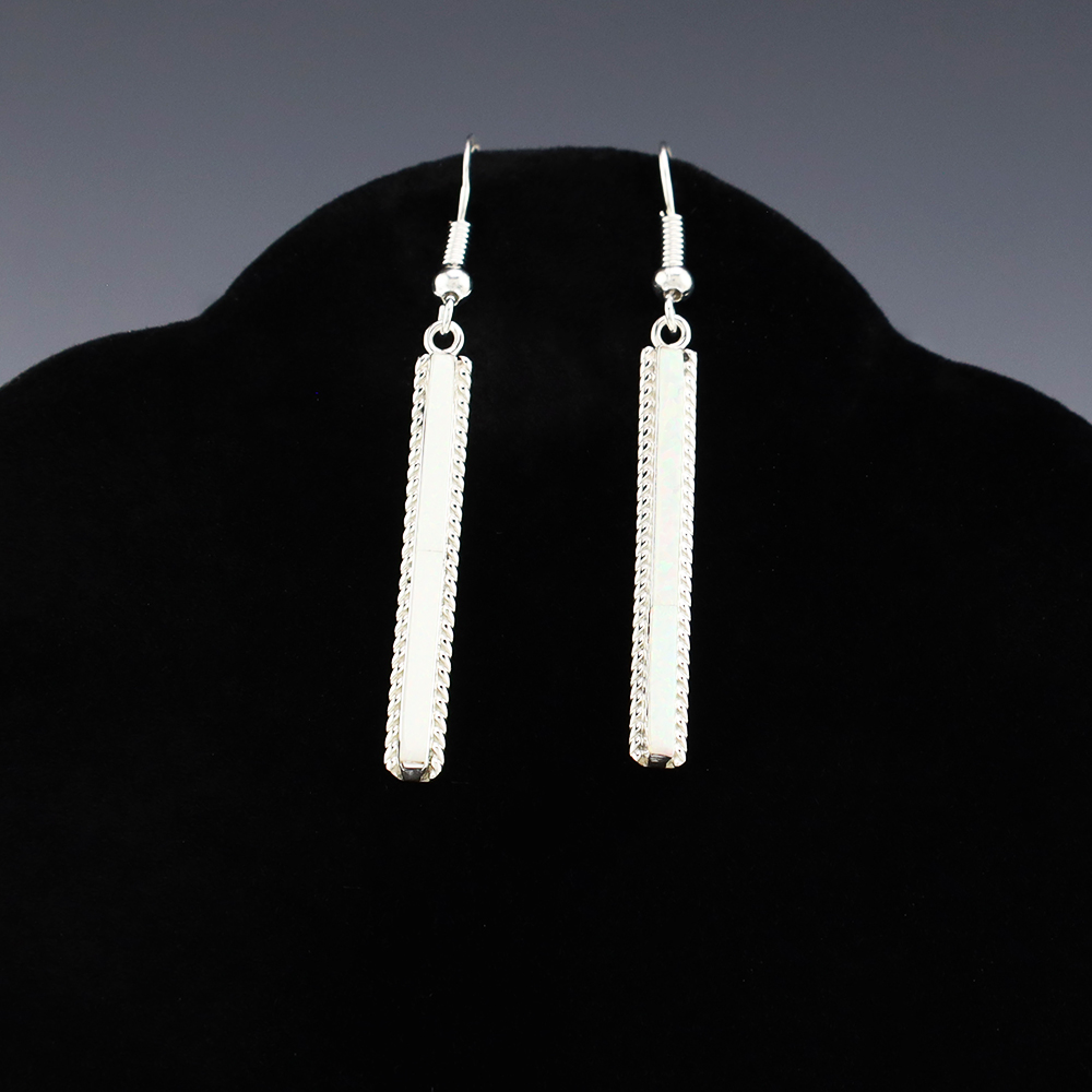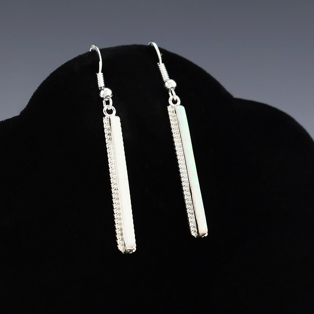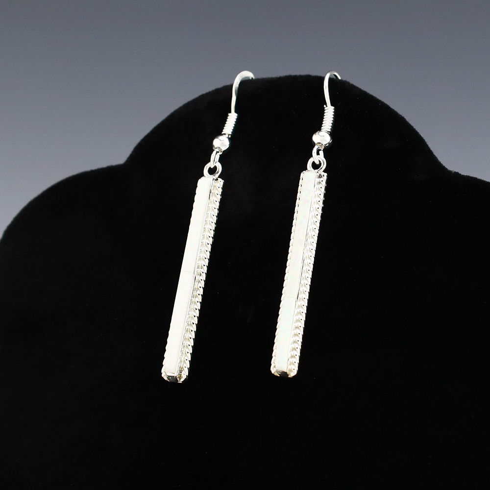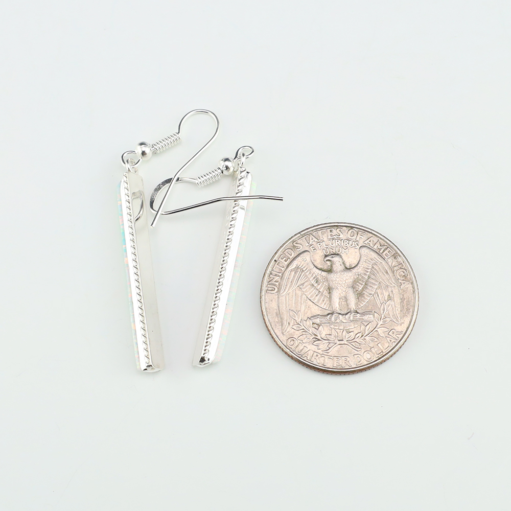 Beautiful earrings hand made out of sterling silver and Laboratory Opal. Hand made by Navajo artist Allen Barney. These fabulous earrings will become a versatile accessory in your jewelry collection. Weighs 2 grams. Signed