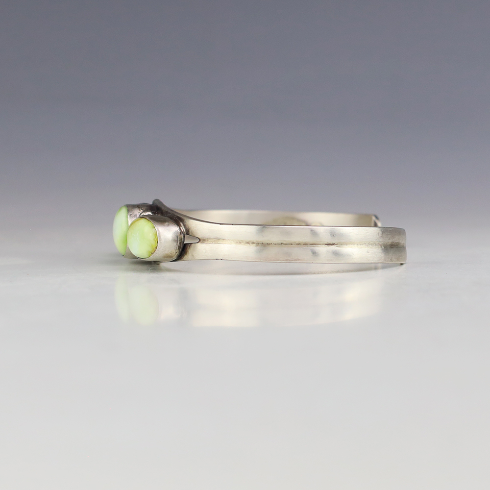 The Navajos began working with silver in the 19th century, and began making things like buckles, bridles, buttons, rings, canteens, hollow beads, earrings, crescent-shaped pendants (called “najas”), bracelets, crosses, powder chargers, tobacco canteens, and conchos (for belts). Their silversmithing skills has evolved and changed throughout the years, and in about 1880 Navajo silversmiths started to set turquoise in their silver work. Traditionally, Navajo artists worked with jewelry techniques like repousee and stamp work, but today they explored in other Native American jewelry making techniques like Zuni inlay work and Hopi overlay work