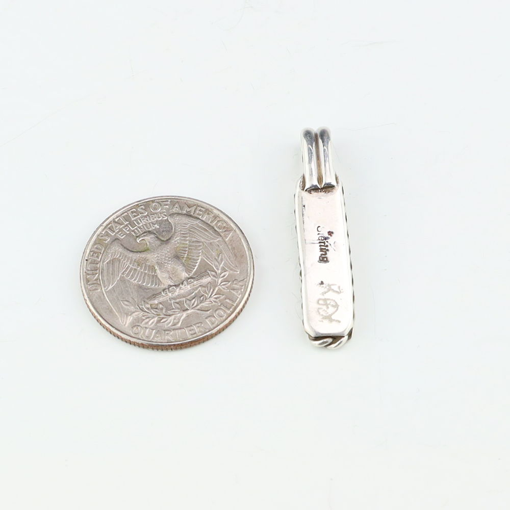 Zuni fetish carver Brian Yatsattie created this stunning seahorse pendant. Hand carved out of Mother of Pearl Shell with Turquoise inlaid eyes. Amazing detail is carved throughout the pedant. A wonderful addition to your Native American jewelry or fetish collection. Weighs 20 grams. 2 1/4” tall x 3/4” long x...
